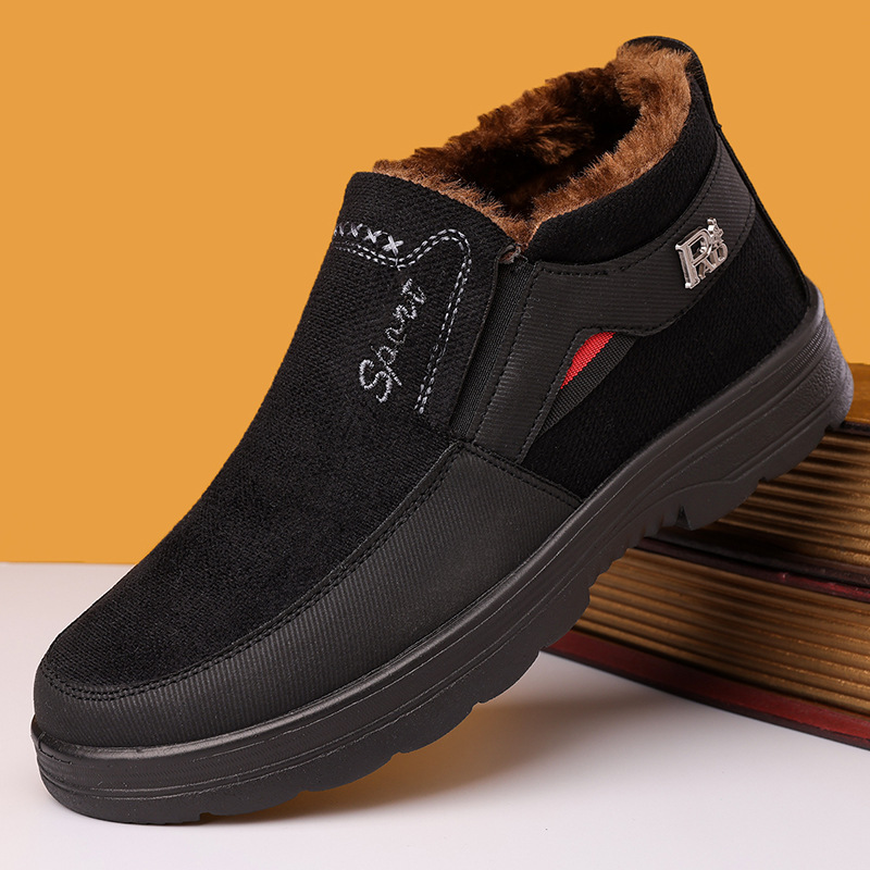 늙은 베이징 헝겊 신발 겨울 남자 면화 신발 플러스 사이즈 아빠 신발 기모 두꺼운 중년 및 노인 면화 신발 노인의 면화 부츠스토어 가기