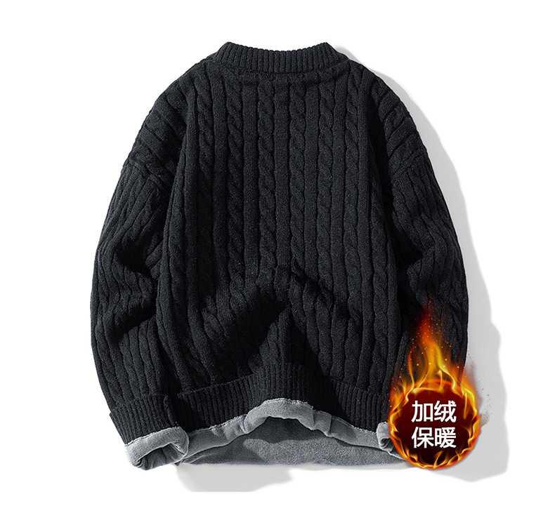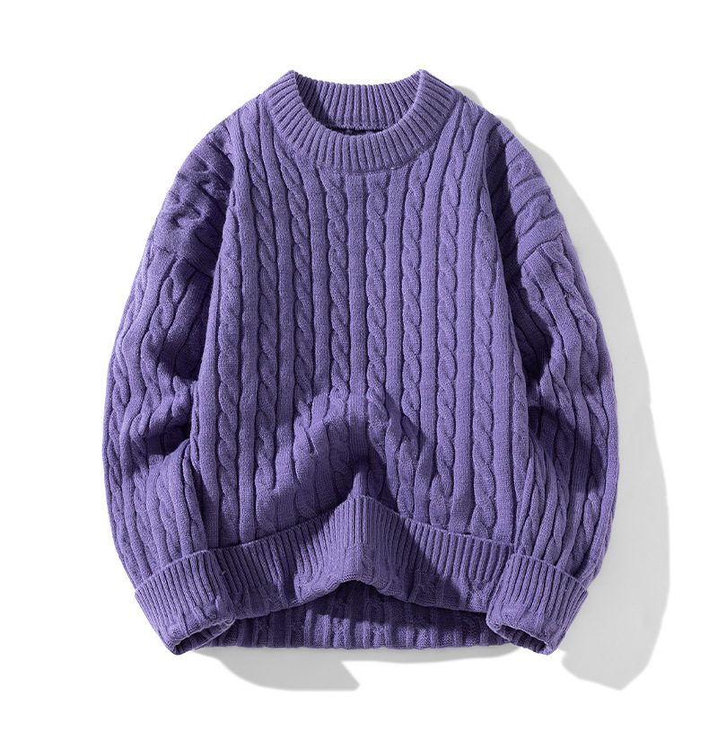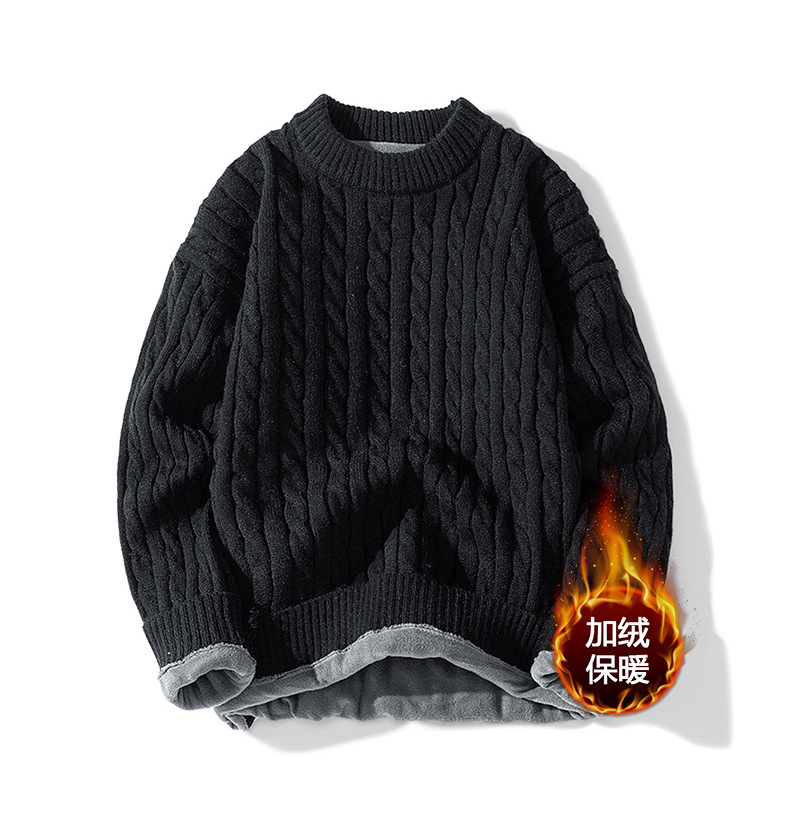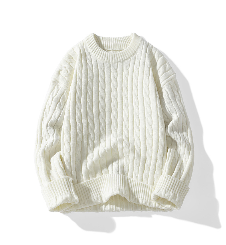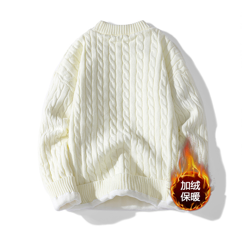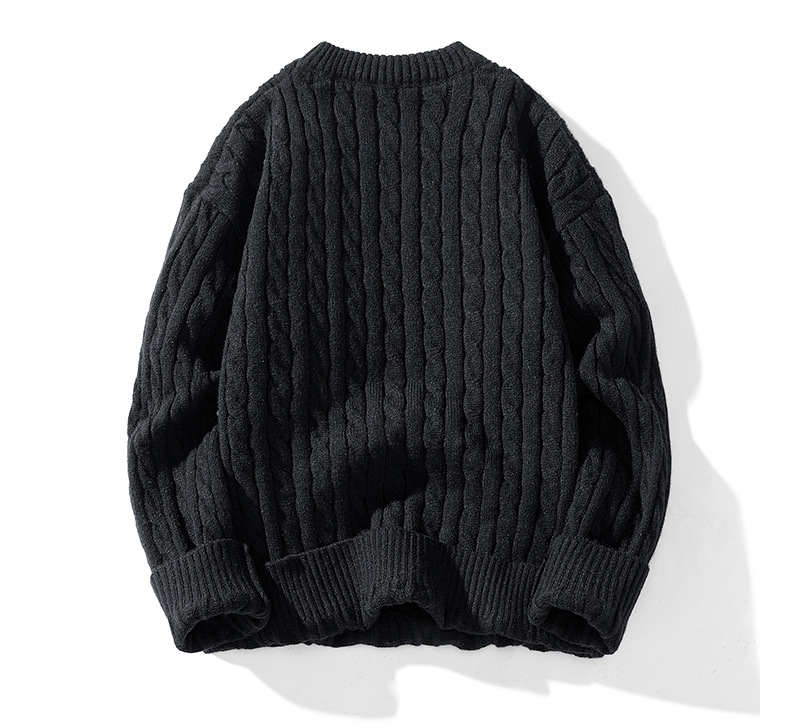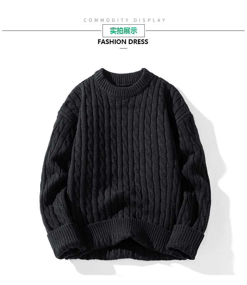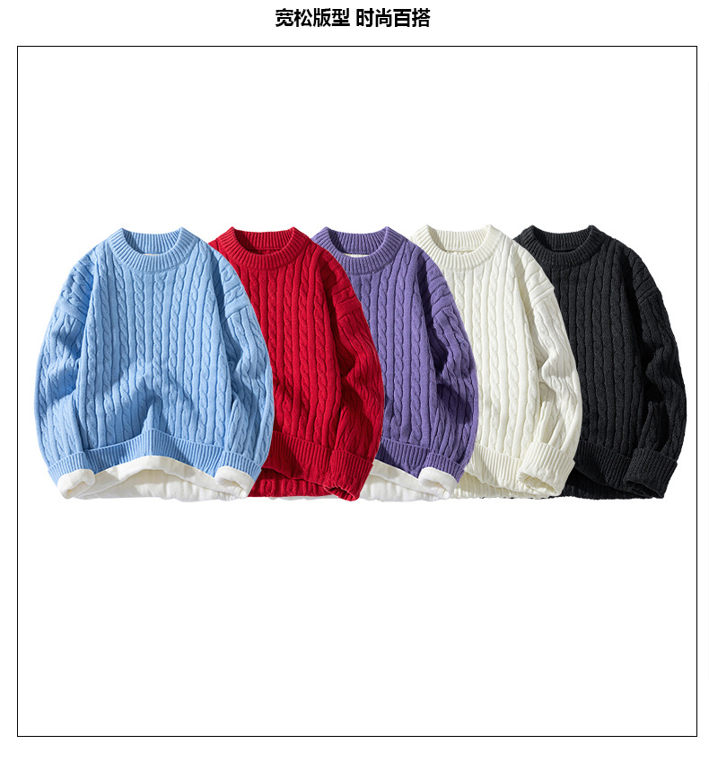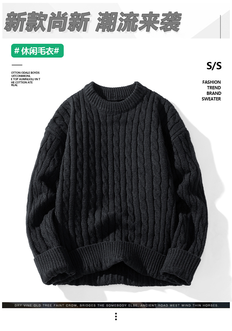 2024 가을과 겨울 새로운 둥근 목 트위스트 꽃 스웨터 남성 기모 두꺼운 단색 느슨한 바늘과 실 의류 기본 셔츠 도매스토어 가기