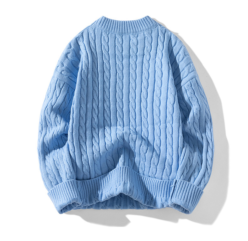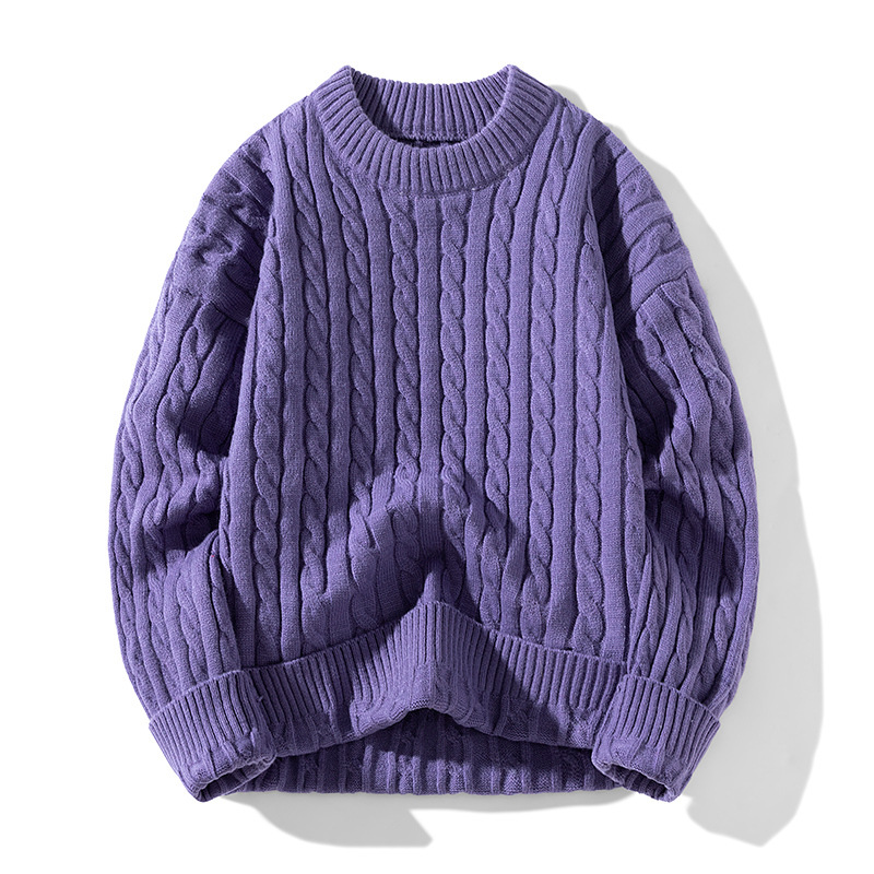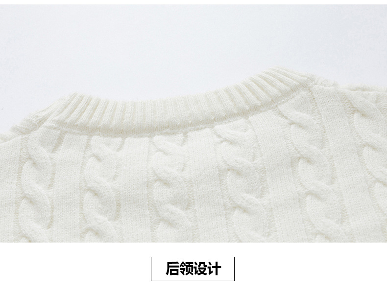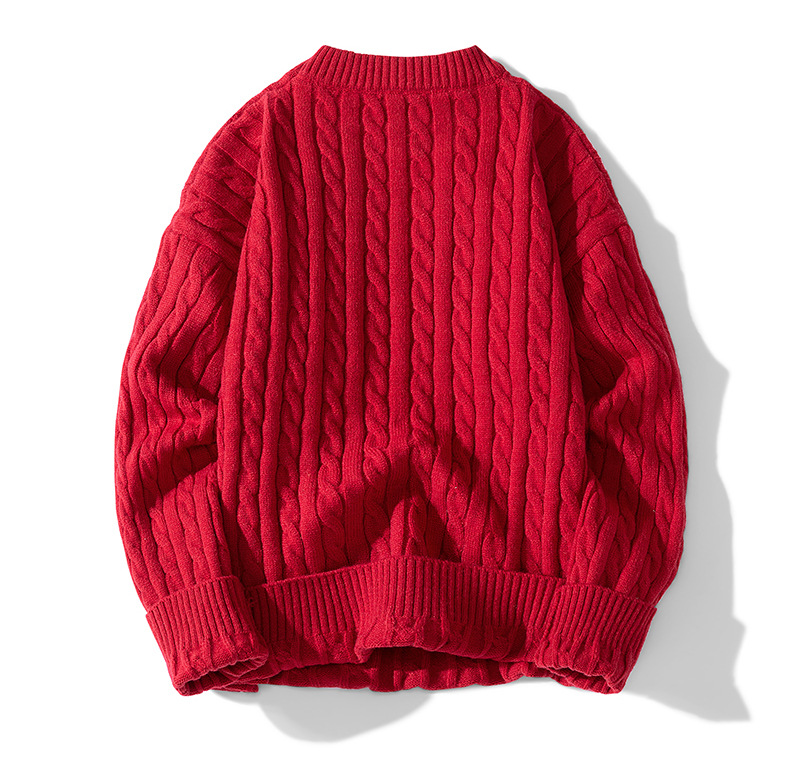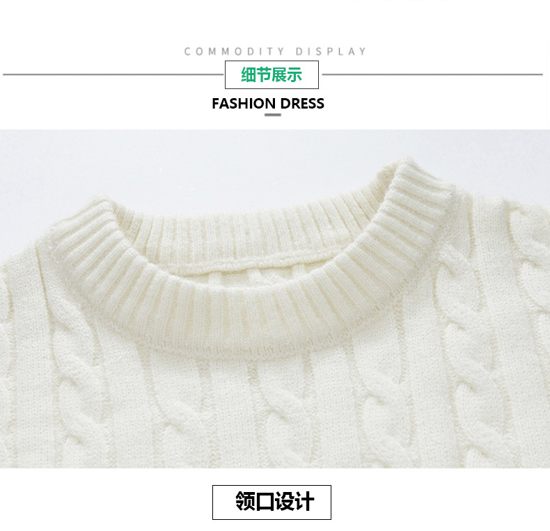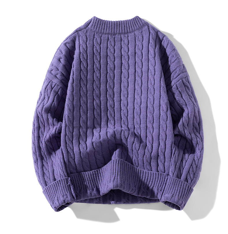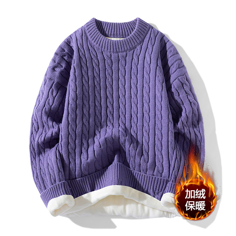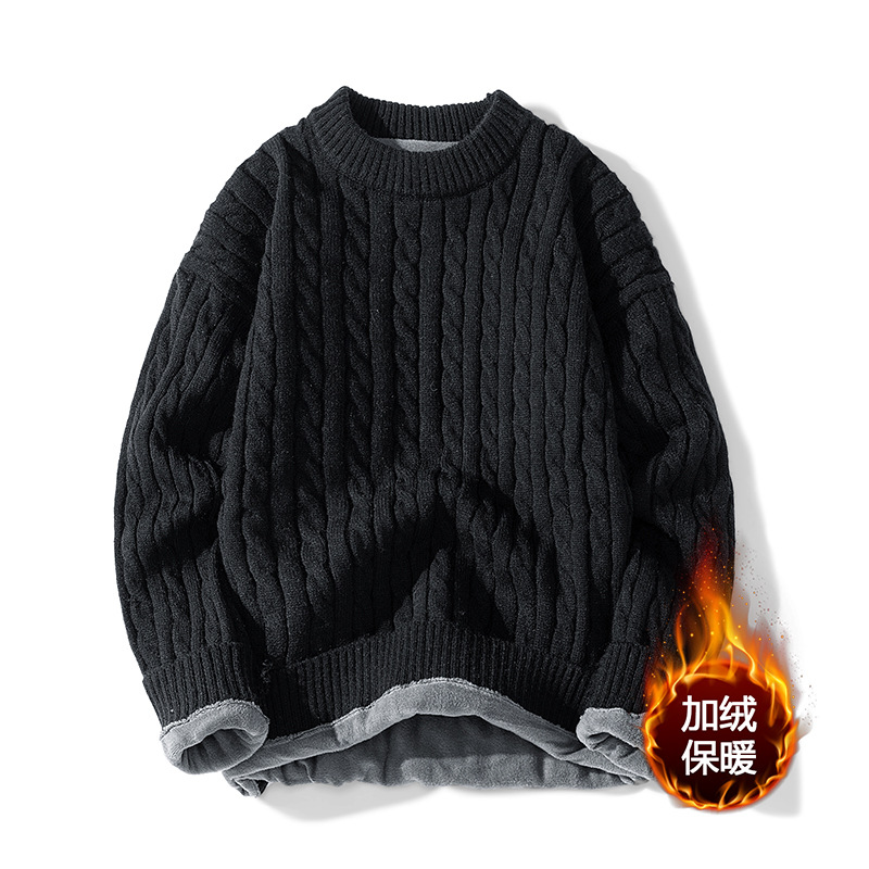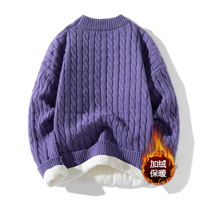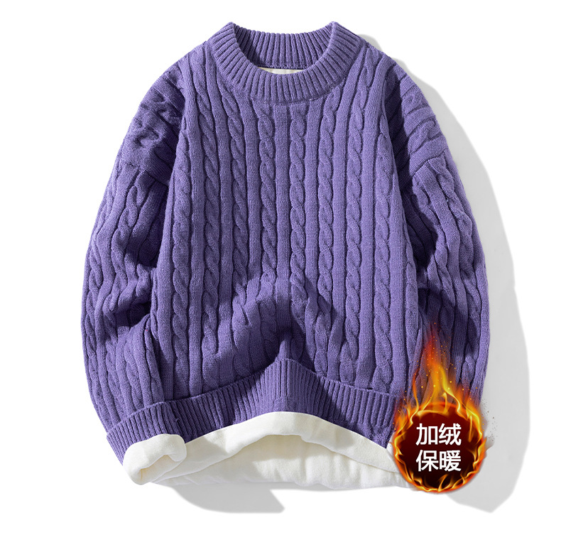 2024 가을과 겨울 새로운 둥근 목 트위스트 꽃 스웨터 남성 기모 두꺼운 단색 느슨한 바늘과 실 의류 기본 셔츠 도매스토어 가기