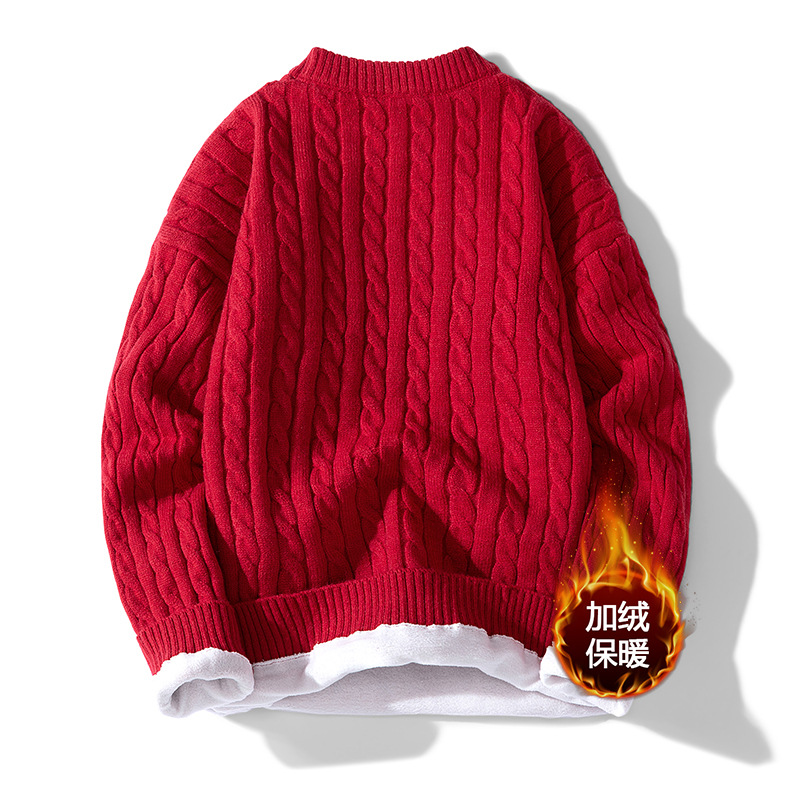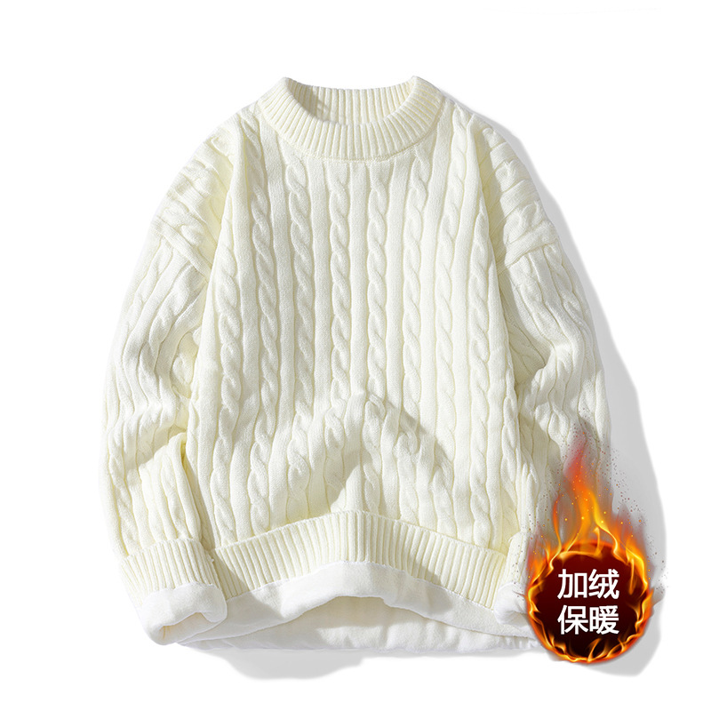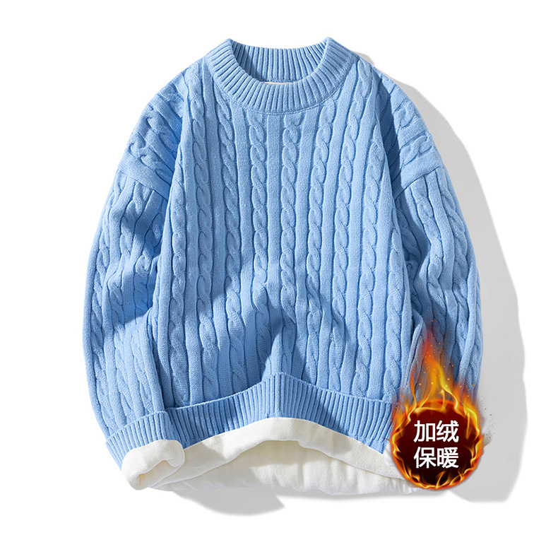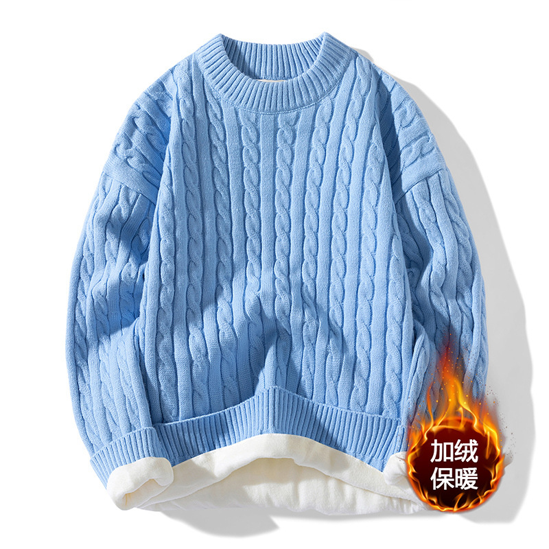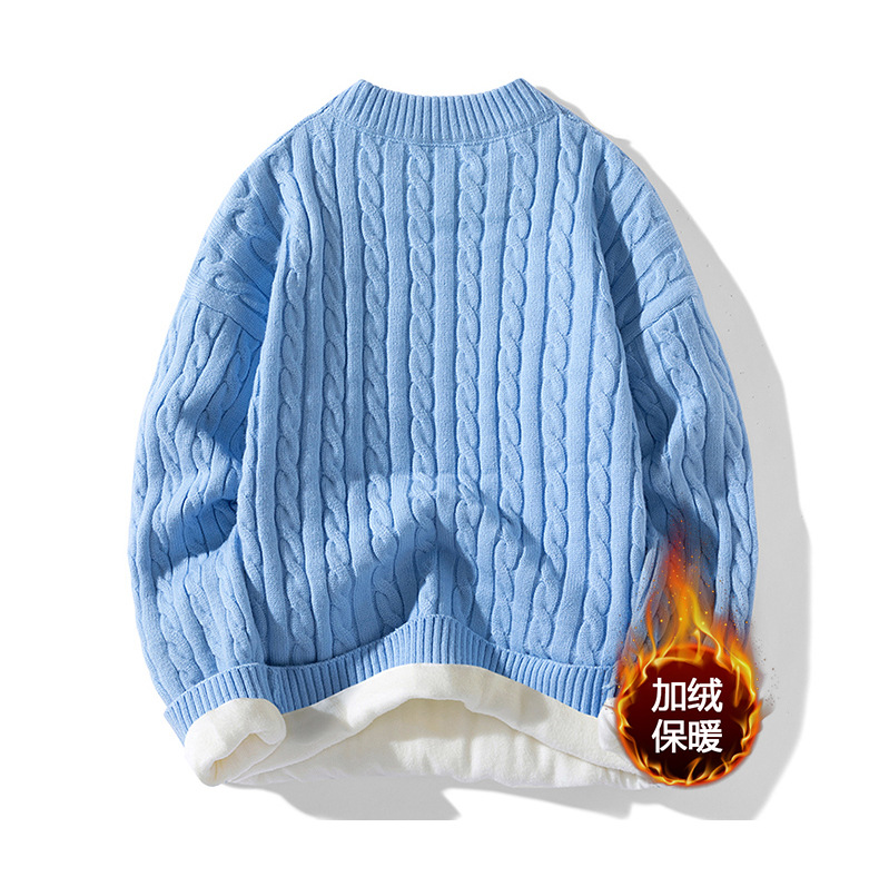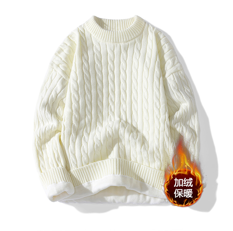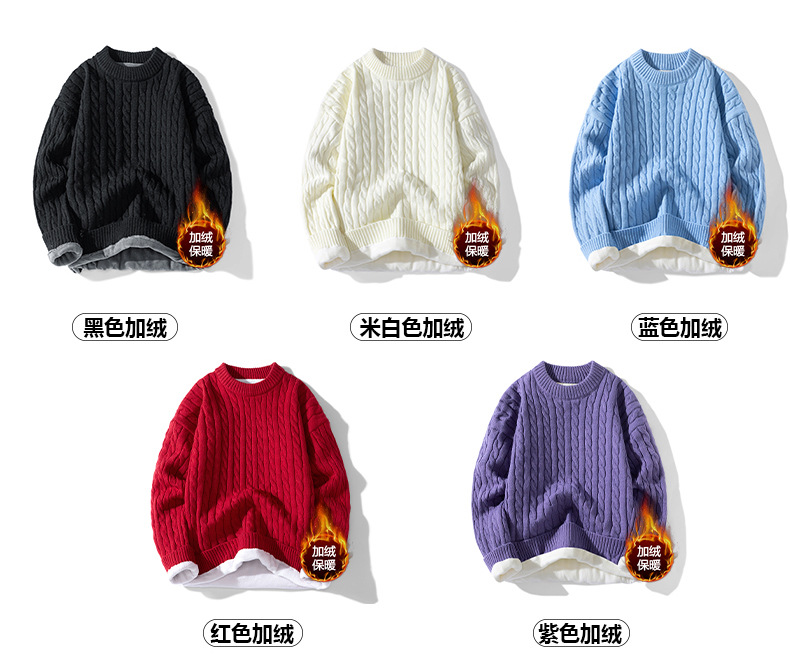 2024 가을과 겨울 새로운 둥근 목 트위스트 꽃 스웨터 남성 기모 두꺼운 단색 느슨한 바늘과 실 의류 기본 셔츠 도매