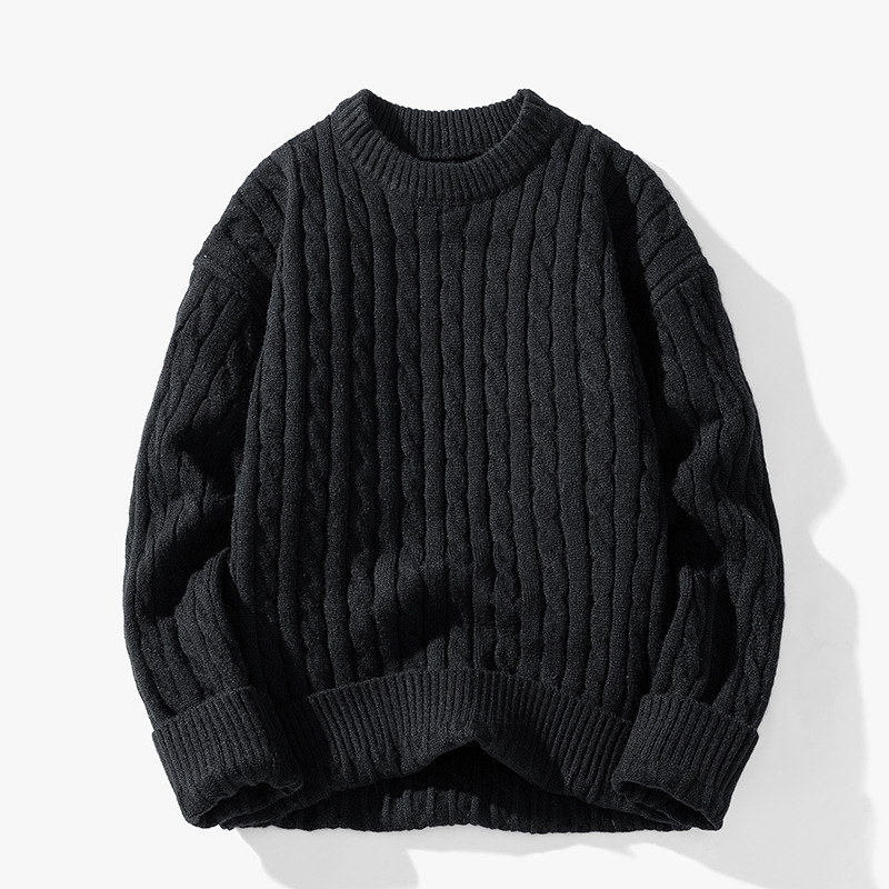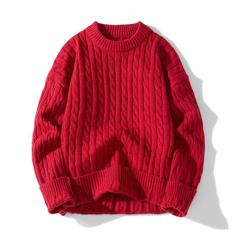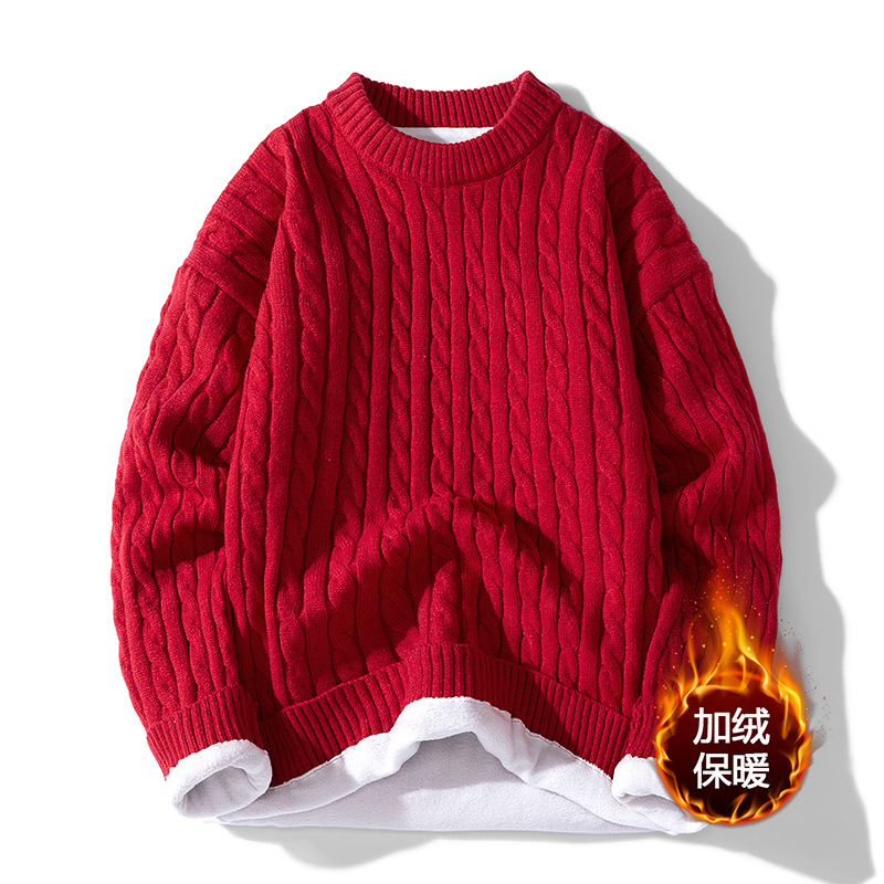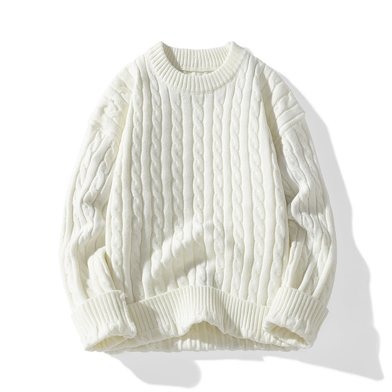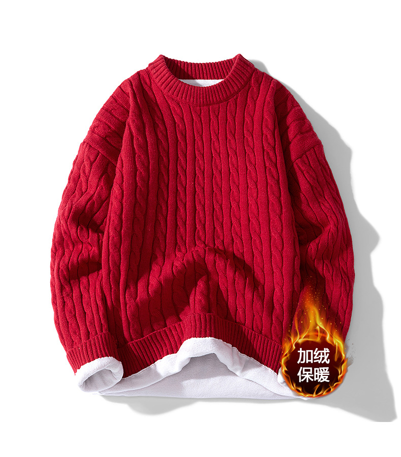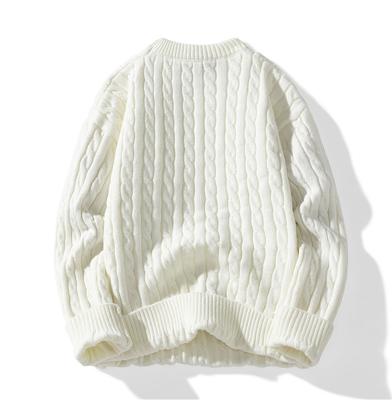 2024 가을과 겨울 새로운 둥근 목 트위스트 꽃 스웨터 남성 기모 두꺼운 단색 느슨한 바늘과 실 의류 기본 셔츠 도매
