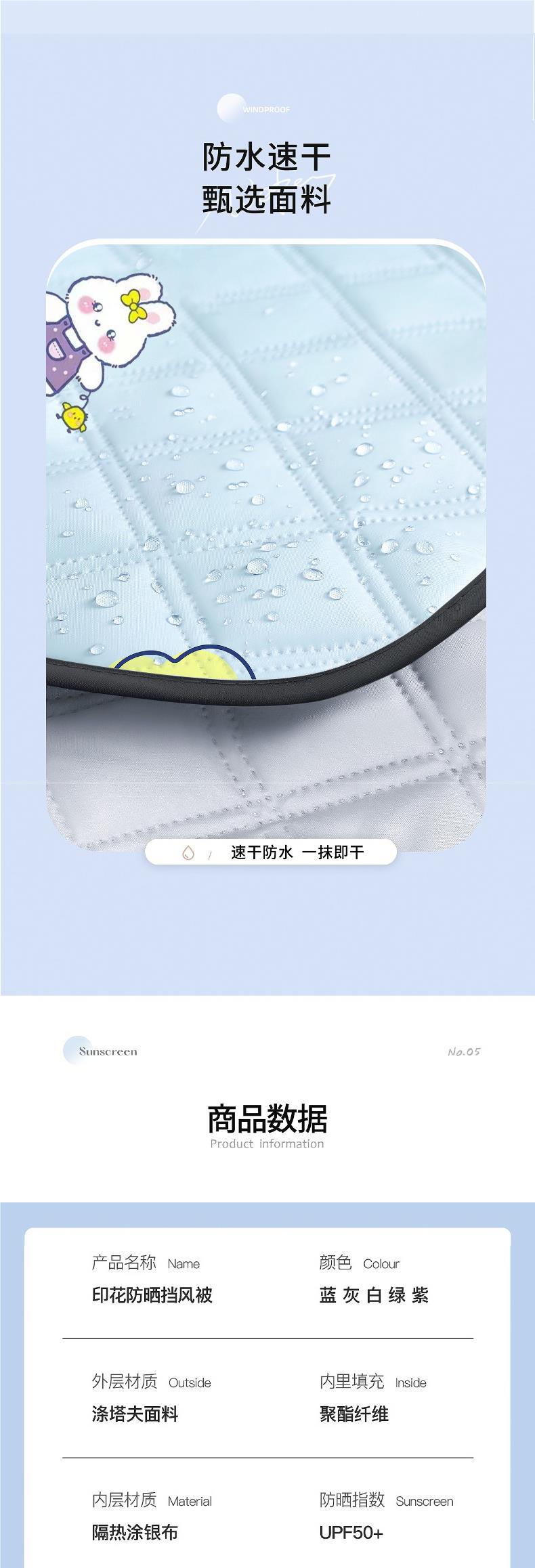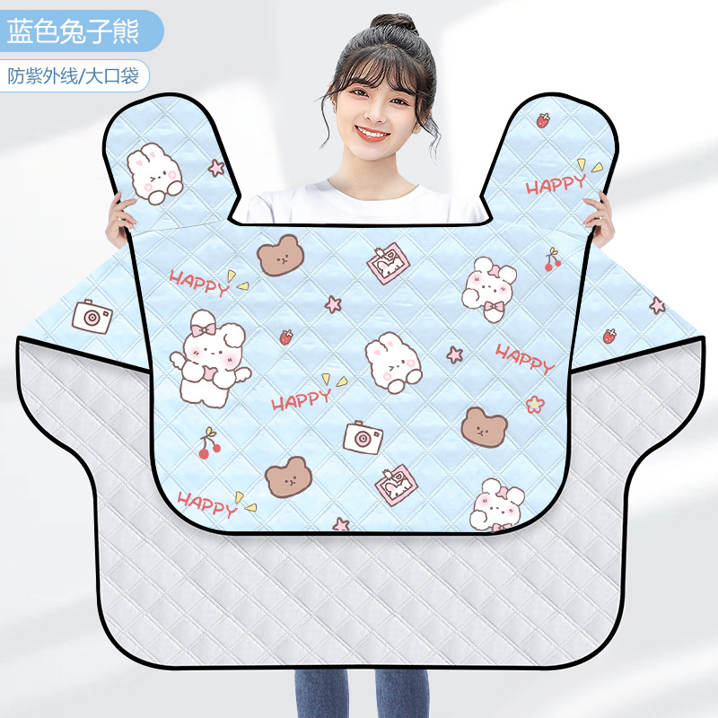 • [큰 옆날개 + 방수, 자외선 차단 + 포켓] 파란색 배경 토끼곰