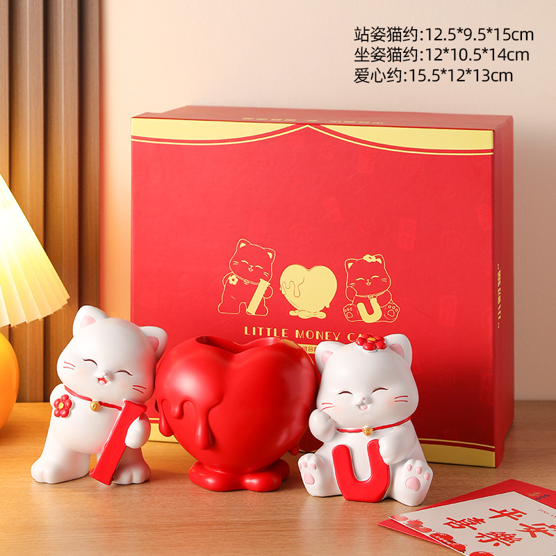 • 작은 행운의 고양이 커플 조합 장식품