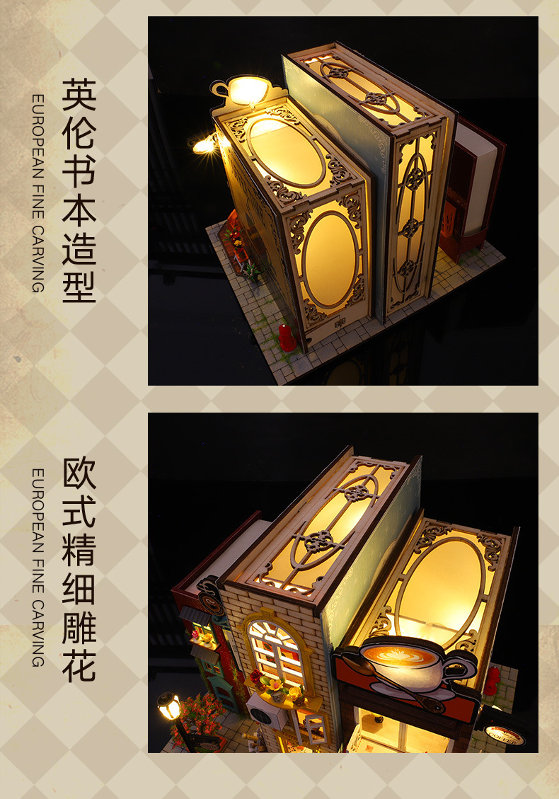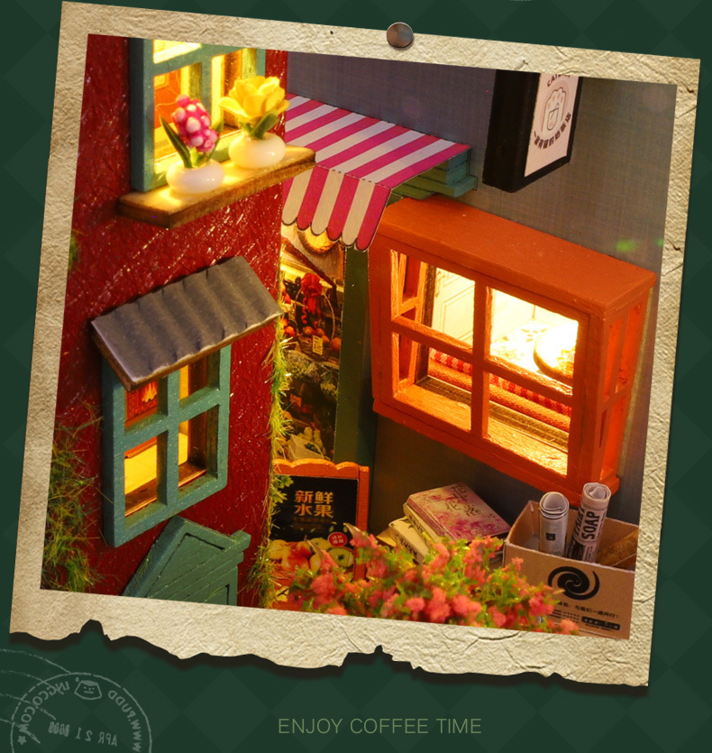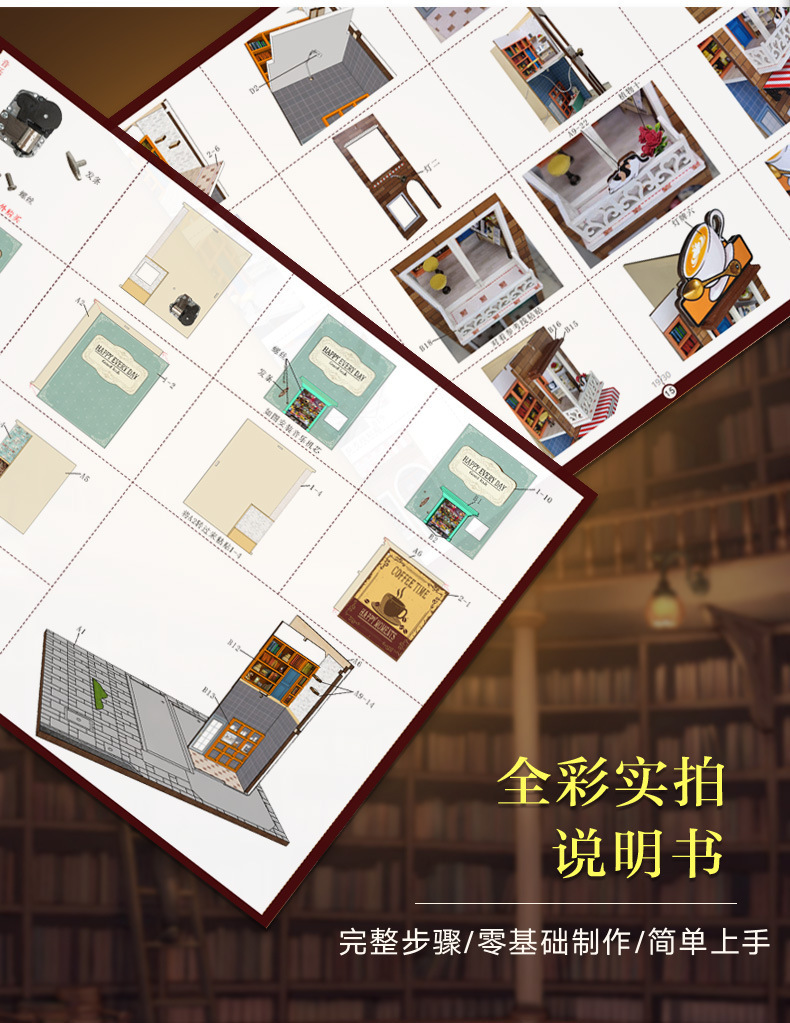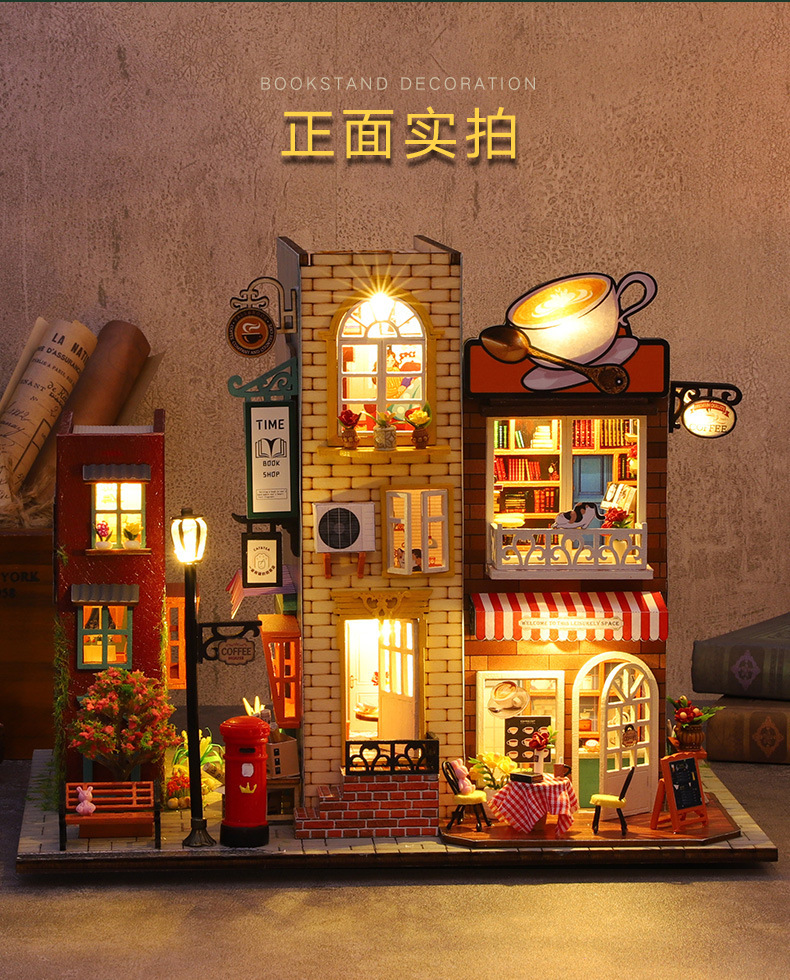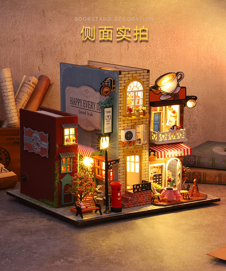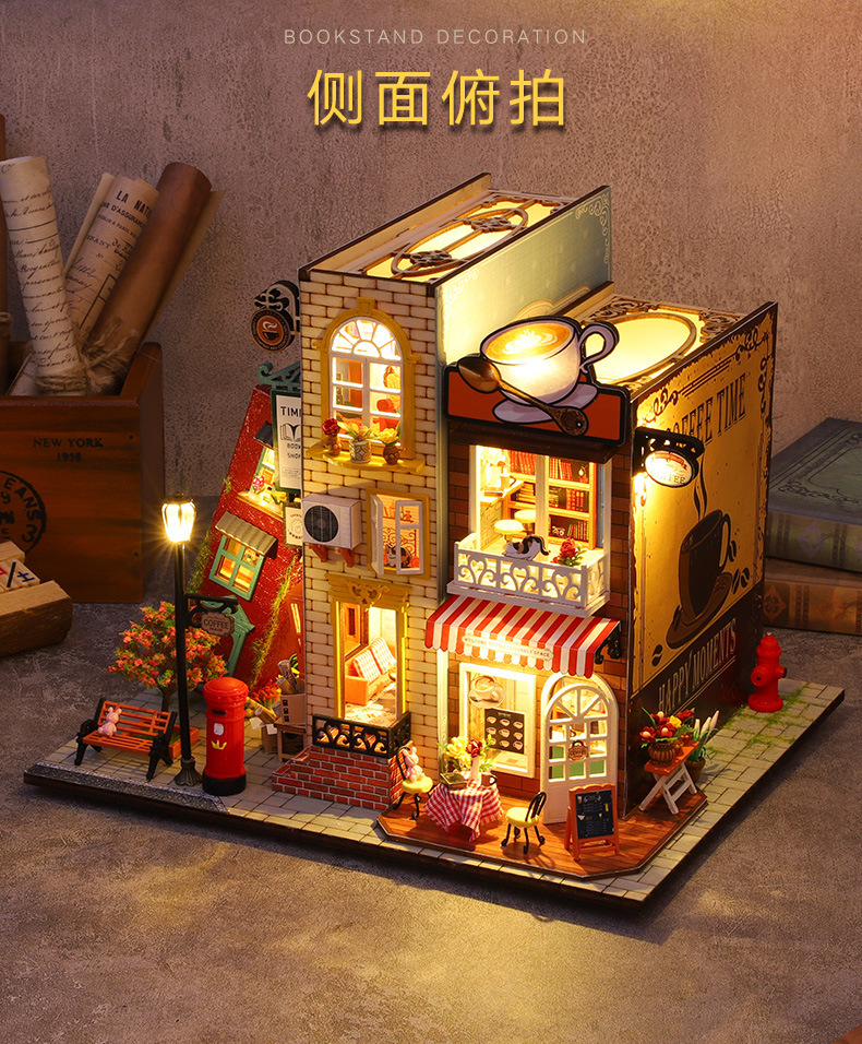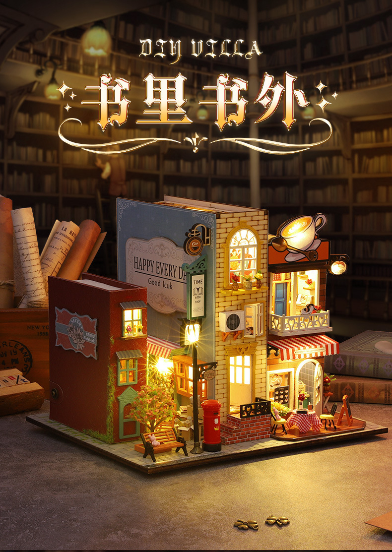 가트 DIY 오두막 책 나무 수제 조립 마이크로 조경 모델 장식 휴일 생일 선물스토어 가기