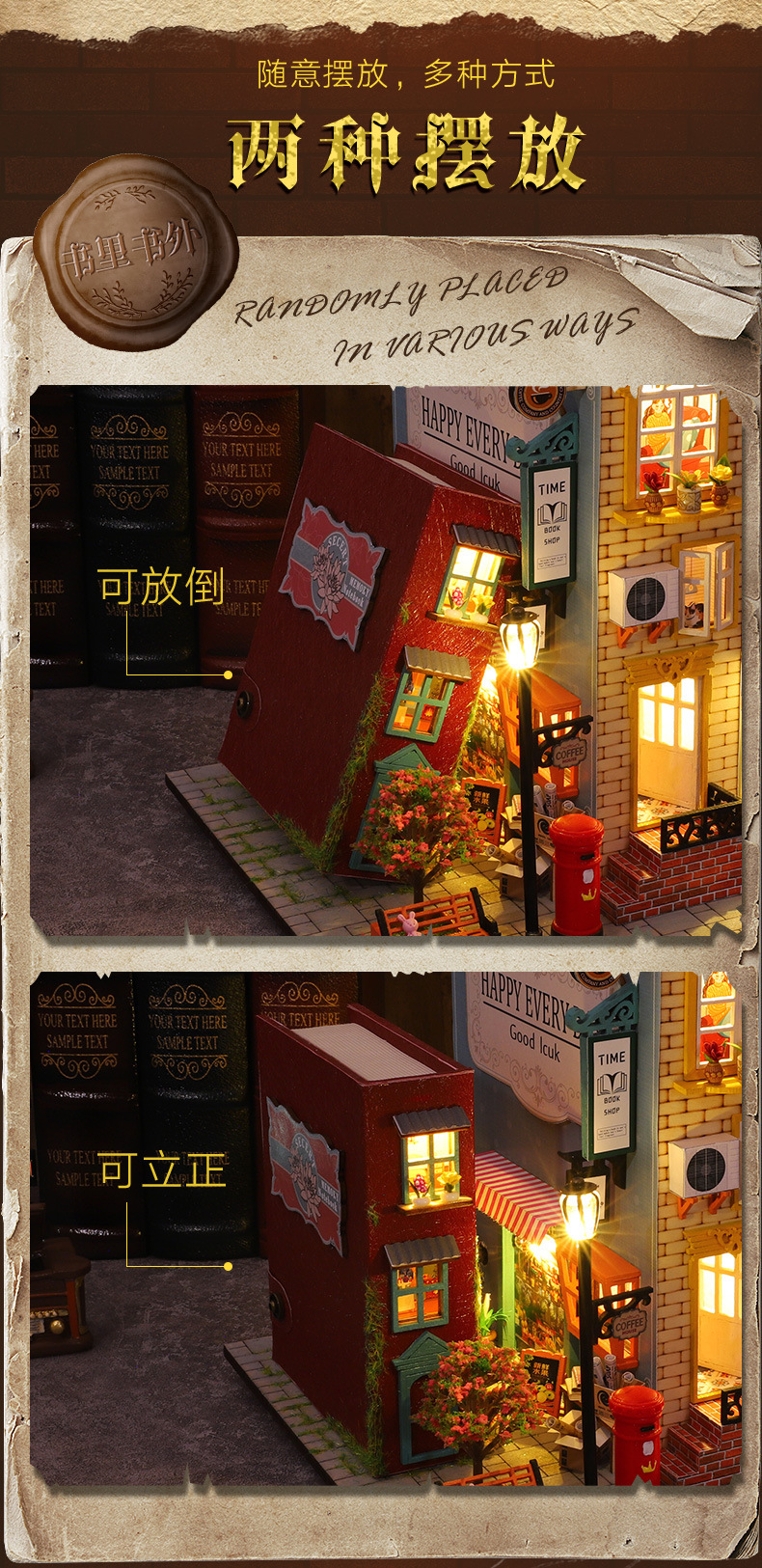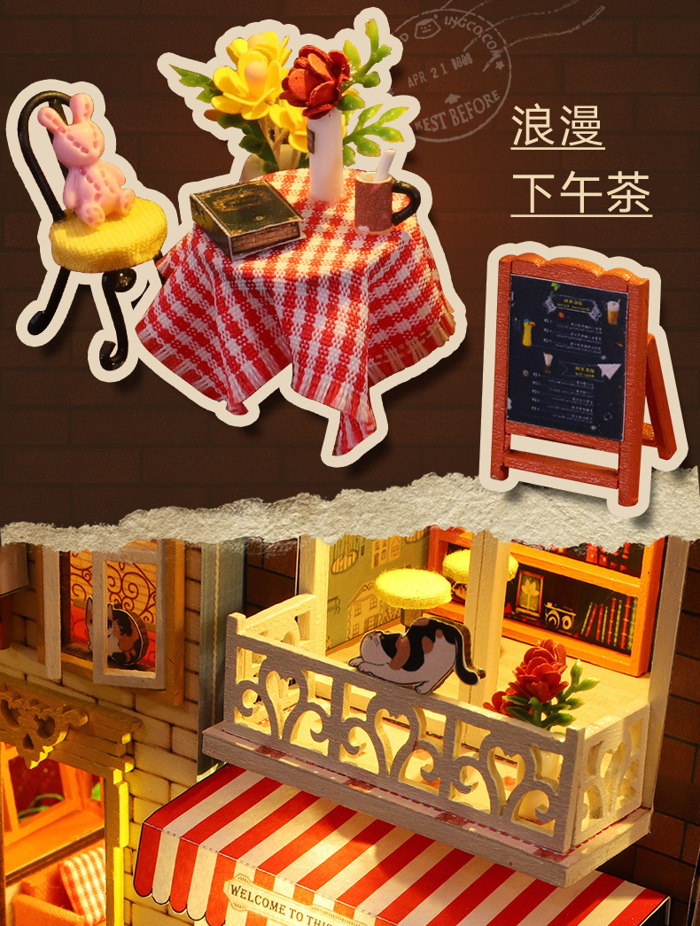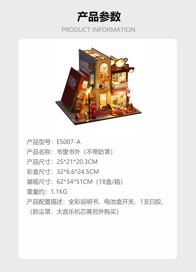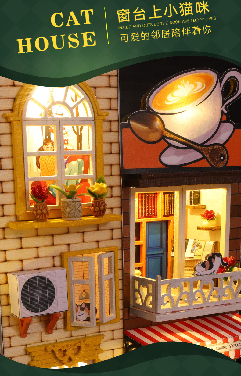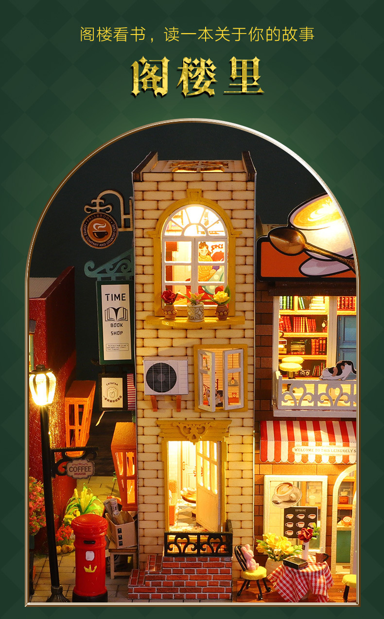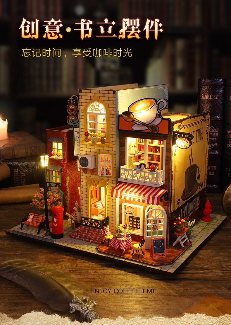 가트 DIY 오두막 책 나무 수제 조립 마이크로 조경 모델 장식 휴일 생일 선물스토어 가기