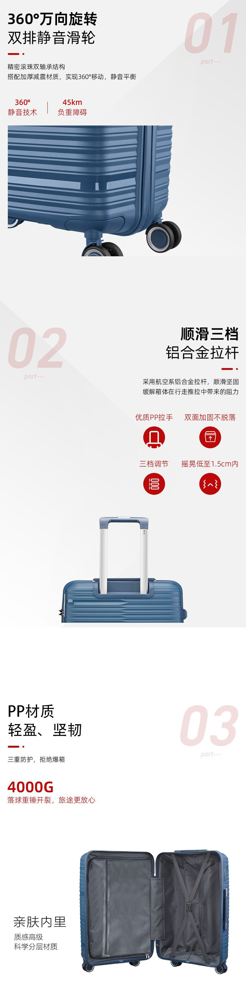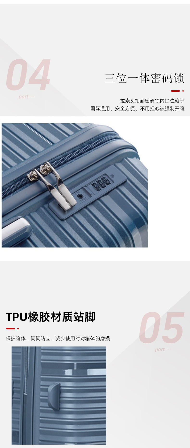 소스 공장 도매 하이 퀄리티 PP 트롤리 케이스 수하물 유니버설 휠 대외 무역 탑승 케이스 TSA 잠금 가방