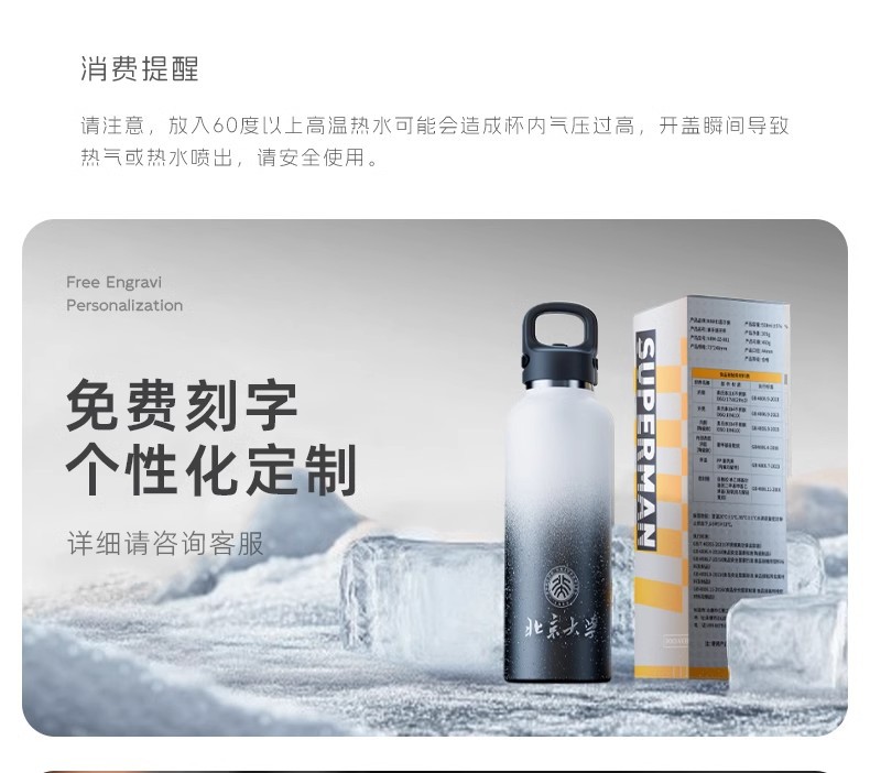 새로운 피트니스 대용량 등산 휴대용 타이거 스테인레스 스틸 한 손 오픈 뚜껑 스포츠 주전자 휴대용 자동차 보온병 컵