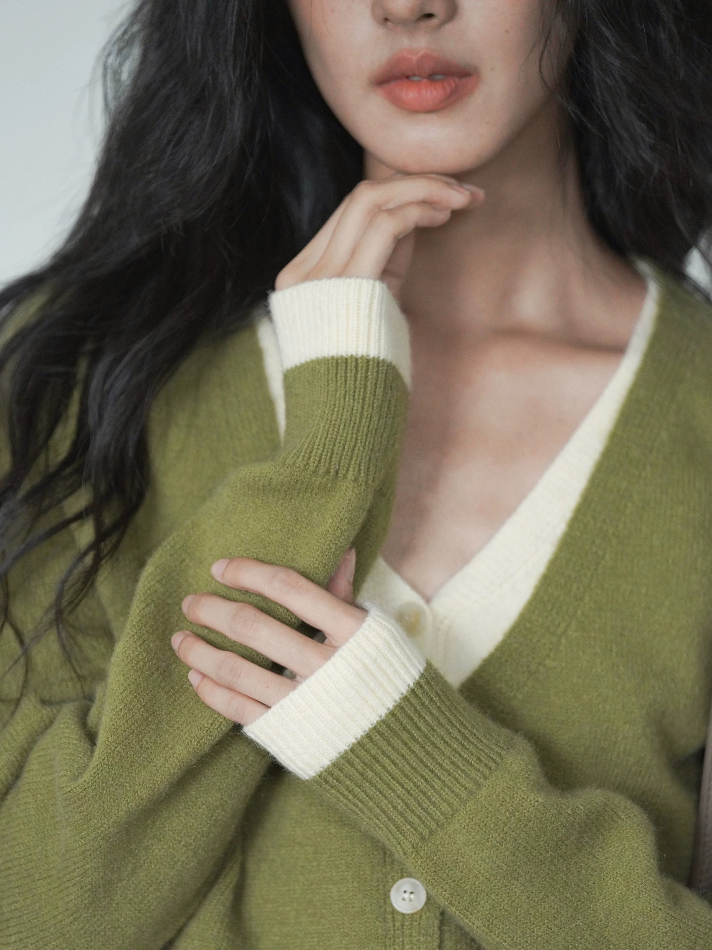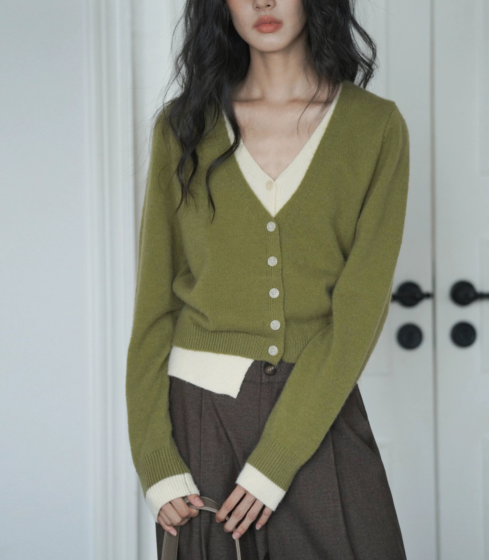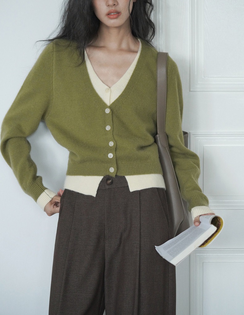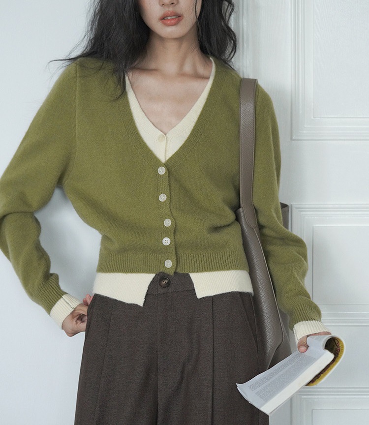 EIGHTMONTH 그린 페이크 투피스 스웨터 여성의 가을 새로운 니트 카디건 탑 게으른 하이 엔드 센스스토어 가기