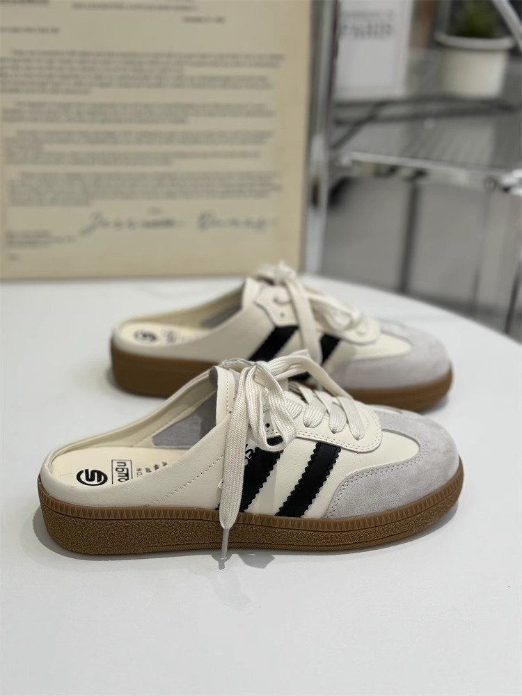 包头半拖鞋女2024新款拼色韩版软底德训鞋无后跟一脚蹬平底单鞋女
