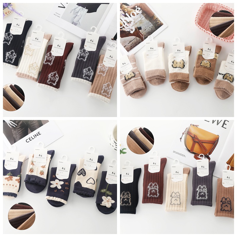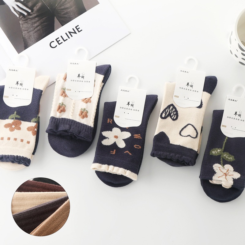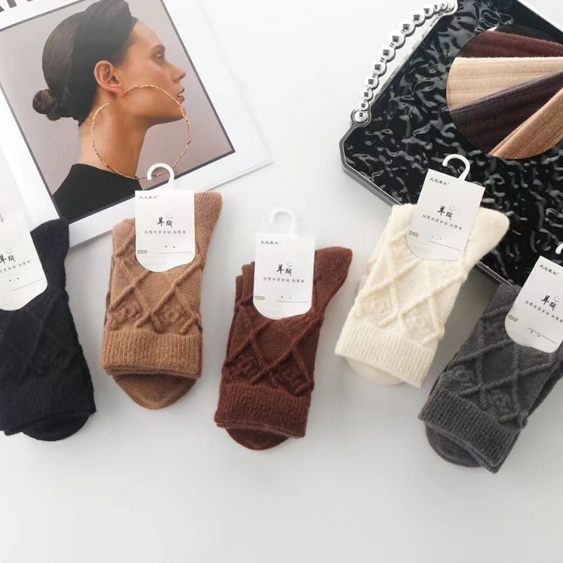 Tianbaolaier 캐시미어 따뜻한 양말 가을과 겨울 새로운 여성 양말 두꺼운 튜브 두꺼운 양말 패션 트렌드 양말 귀여운스토어 가기