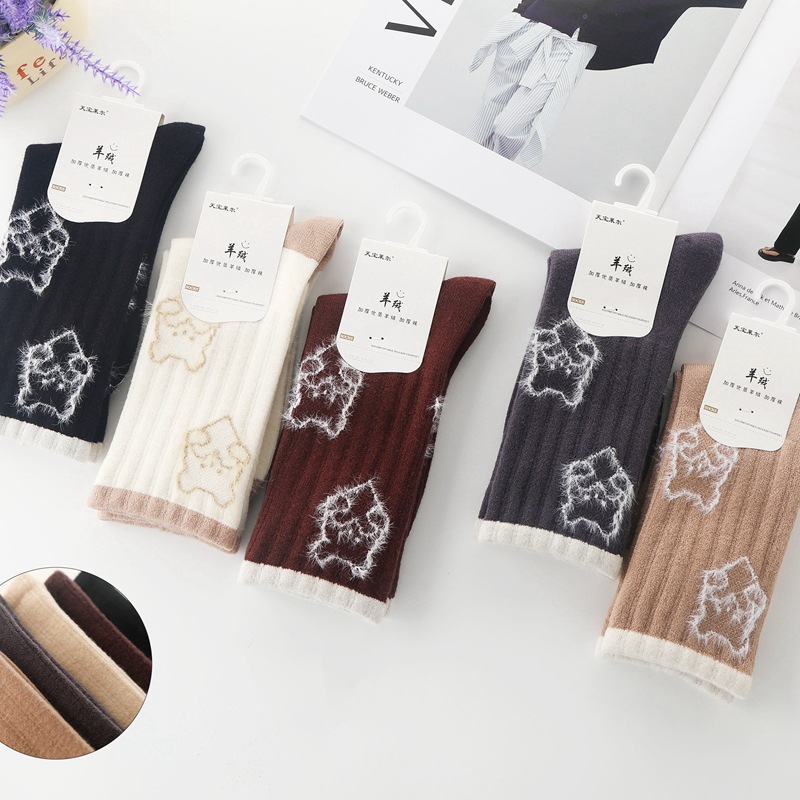 Tianbaolaier 캐시미어 따뜻한 양말 가을과 겨울 새로운 여성 양말 두꺼운 튜브 두꺼운 양말 패션 트렌드 양말 귀여운