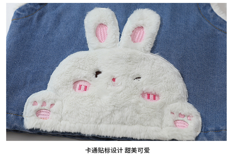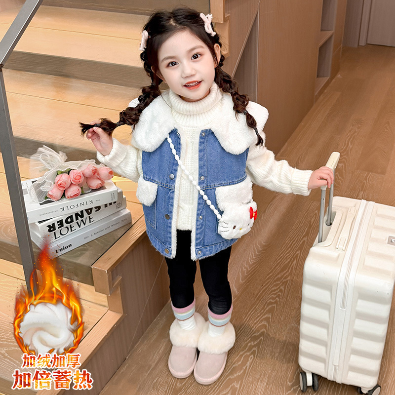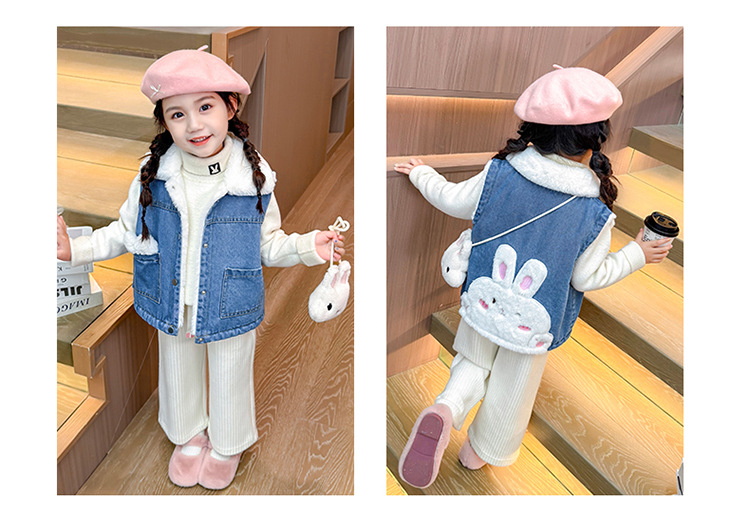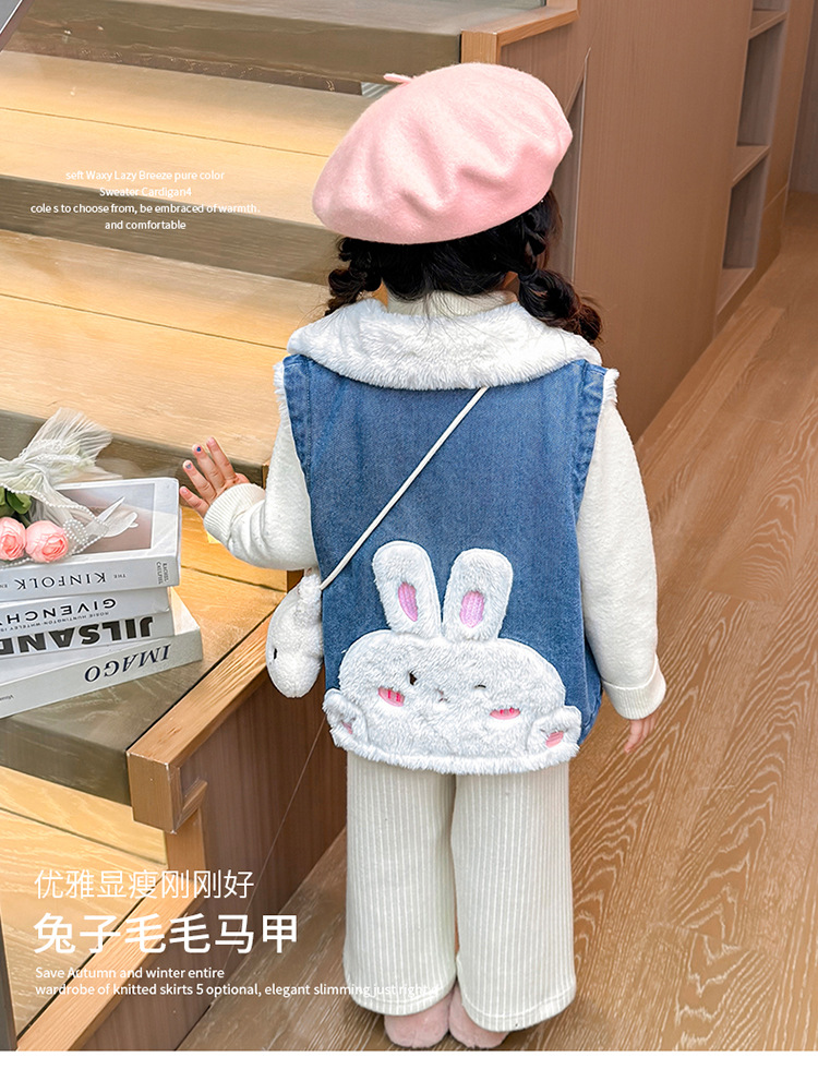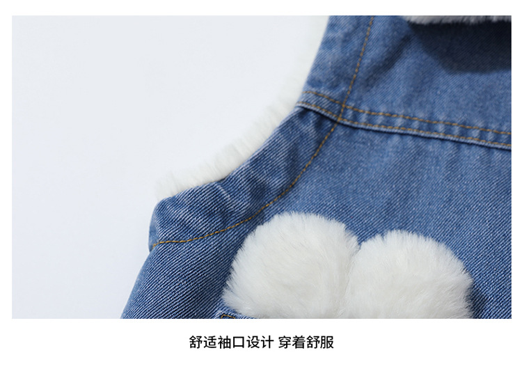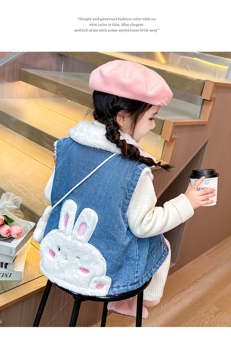 여성의 가을과 겨울 기모 두껍게 데님 조끼 2024 새로운 만화 고양이 토끼 어린이 따뜻한 코트 조수스토어 가기
