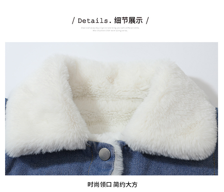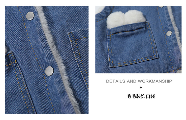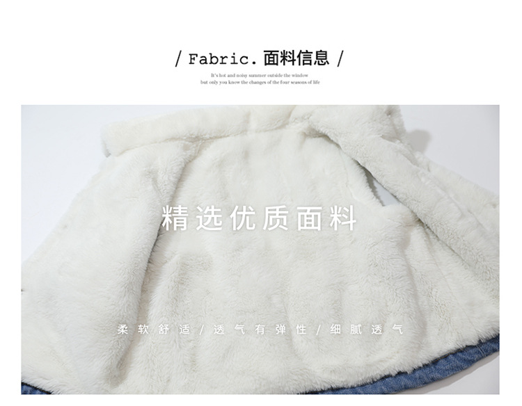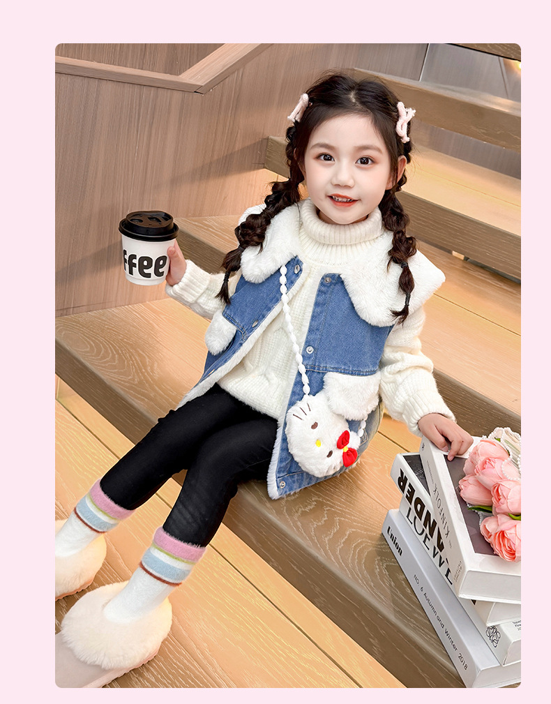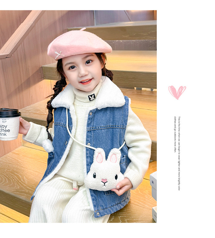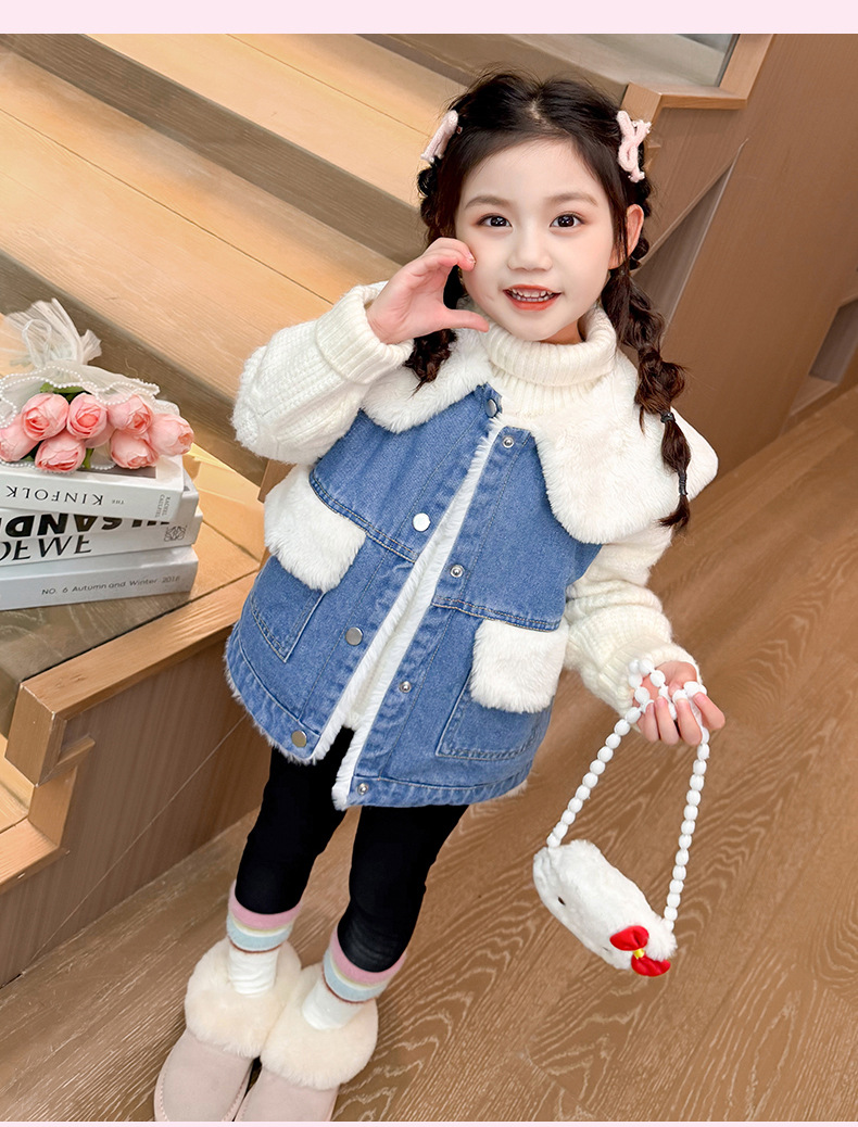 여성의 가을과 겨울 기모 두껍게 데님 조끼 2024 새로운 만화 고양이 토끼 어린이 따뜻한 코트 조수스토어 가기