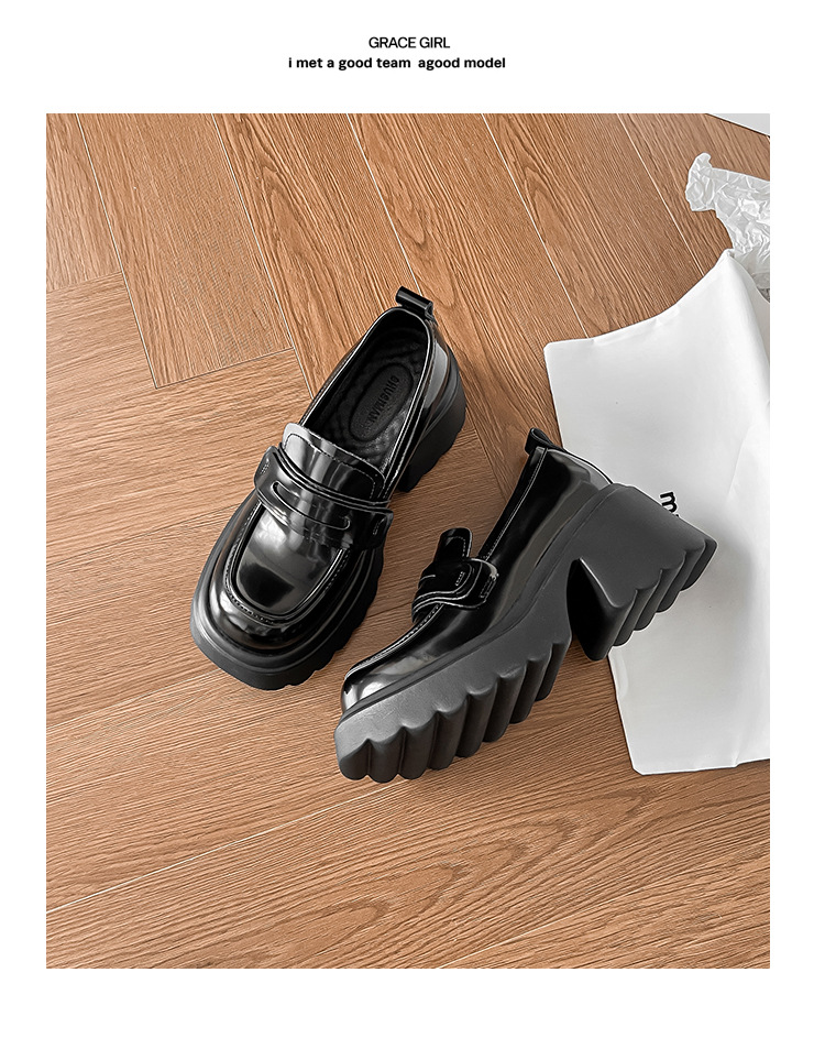 여성용 로퍼 영국 스타일 2025 가을 신상 플랫폼 두꺼운 밑창 신발 특허 가죽 슬립 온 여성용 다용도 소형 가죽 신발스토어 가기