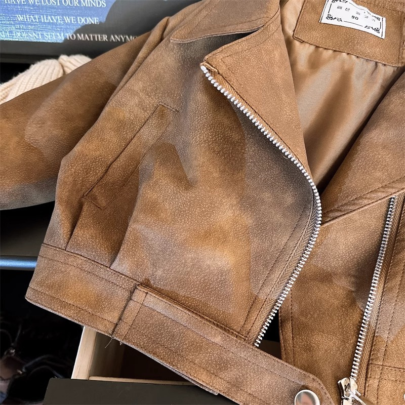한국 스타일 소녀의 가을 가죽 자켓 새로운 스타일 아기 소녀의 최고 사이버 축하 옷깃 오토바이 어린이 가죽 자켓 트렌디스토어 가기