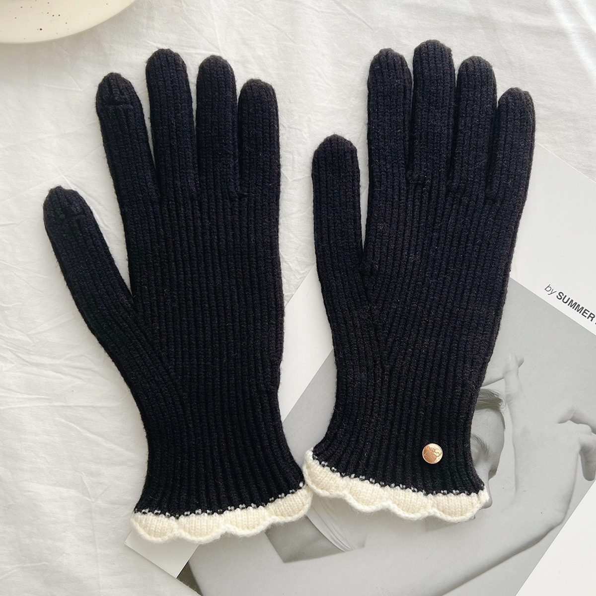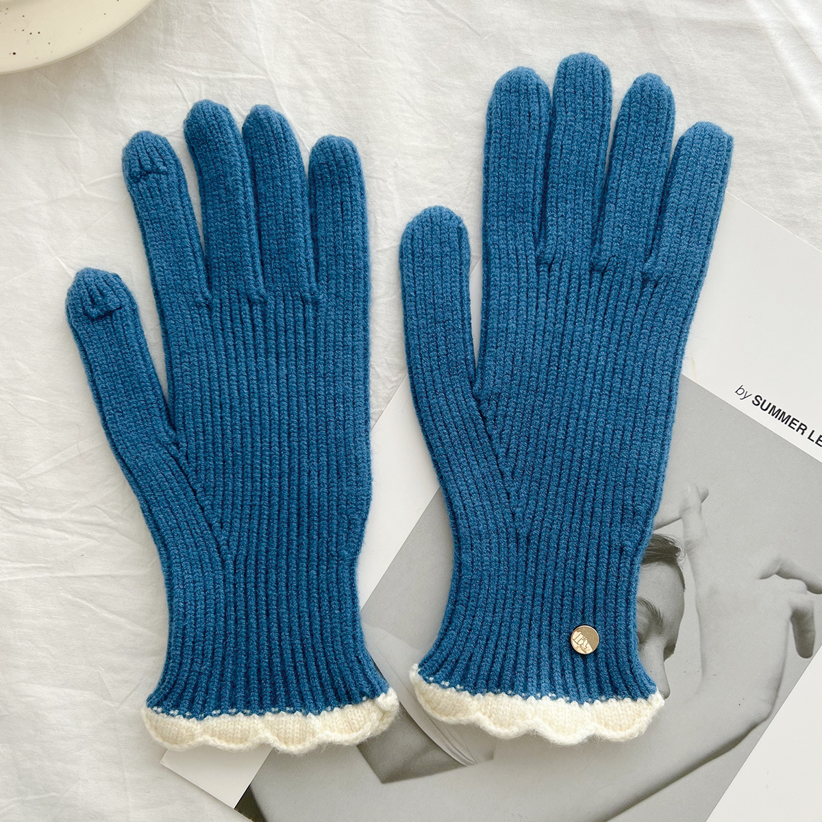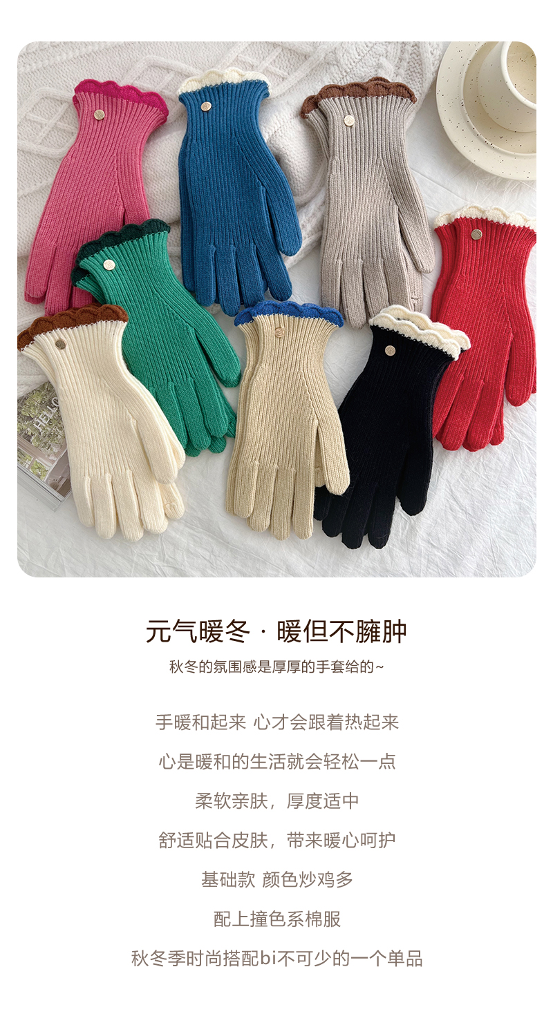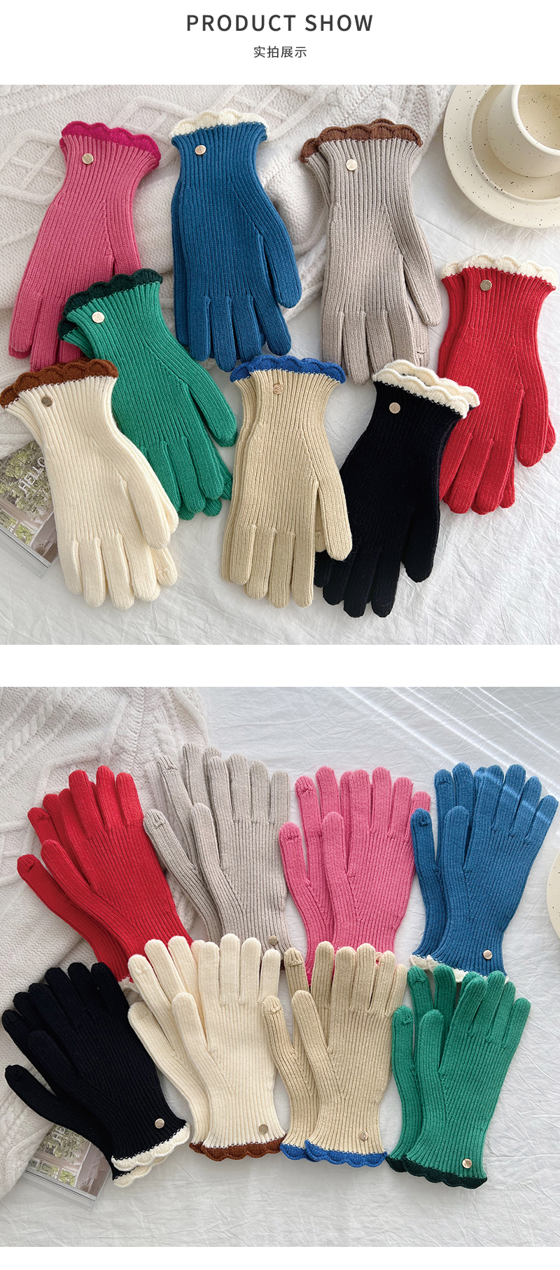 한국 스타일의 새로운 간단한 단색 레이스 장갑 여성의 겨울 두꺼운 따뜻한 방한 장갑 누설 손가락 승마 터치 스크린