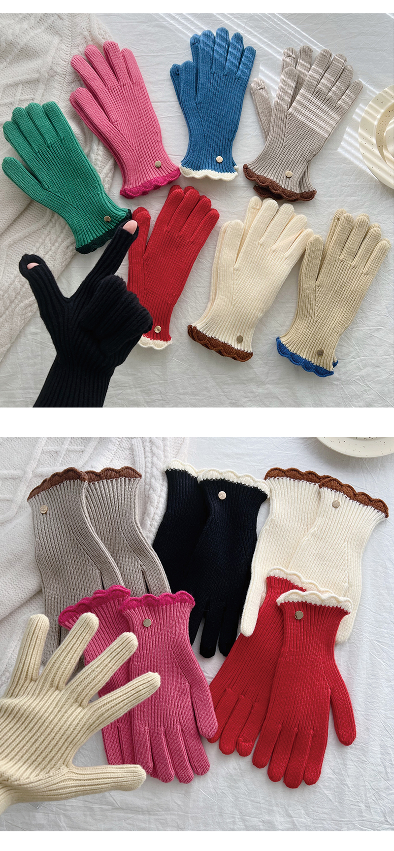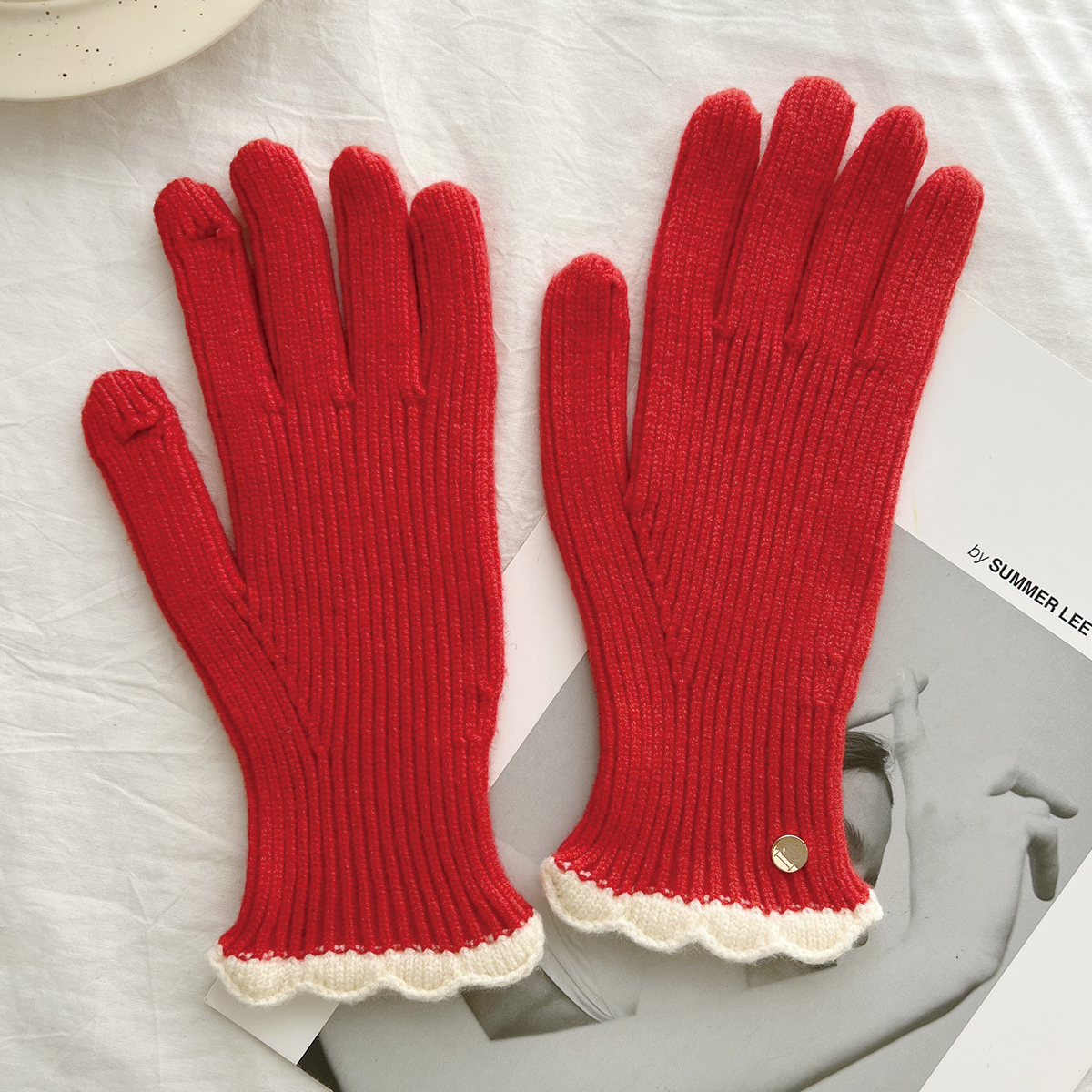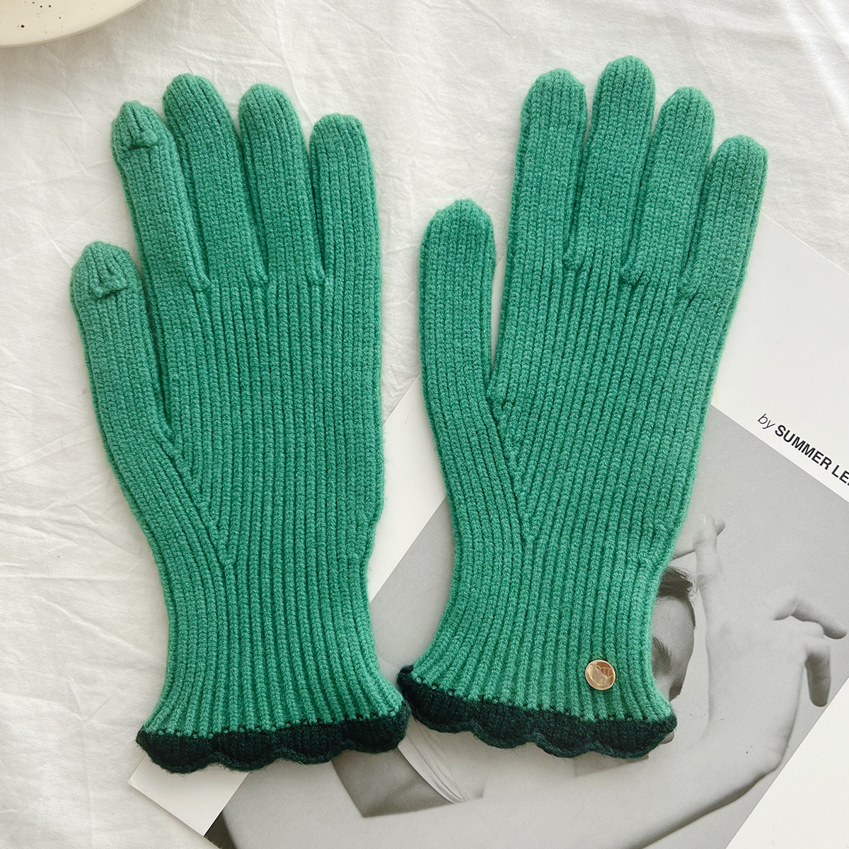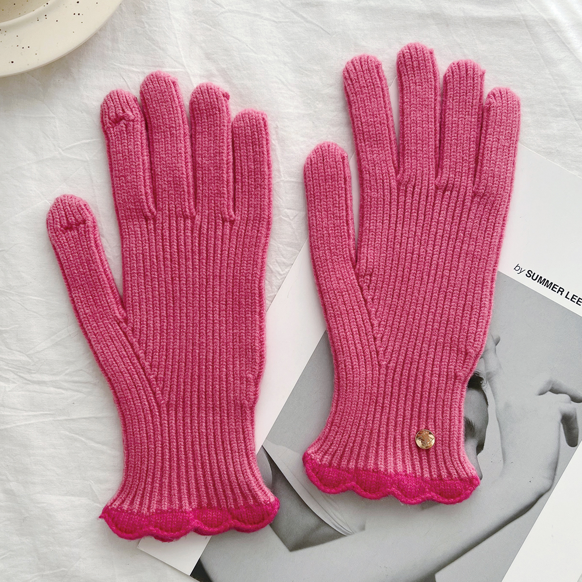 한국 스타일의 새로운 간단한 단색 레이스 장갑 여성의 겨울 두꺼운 따뜻한 방한 장갑 누설 손가락 승마 터치 스크린