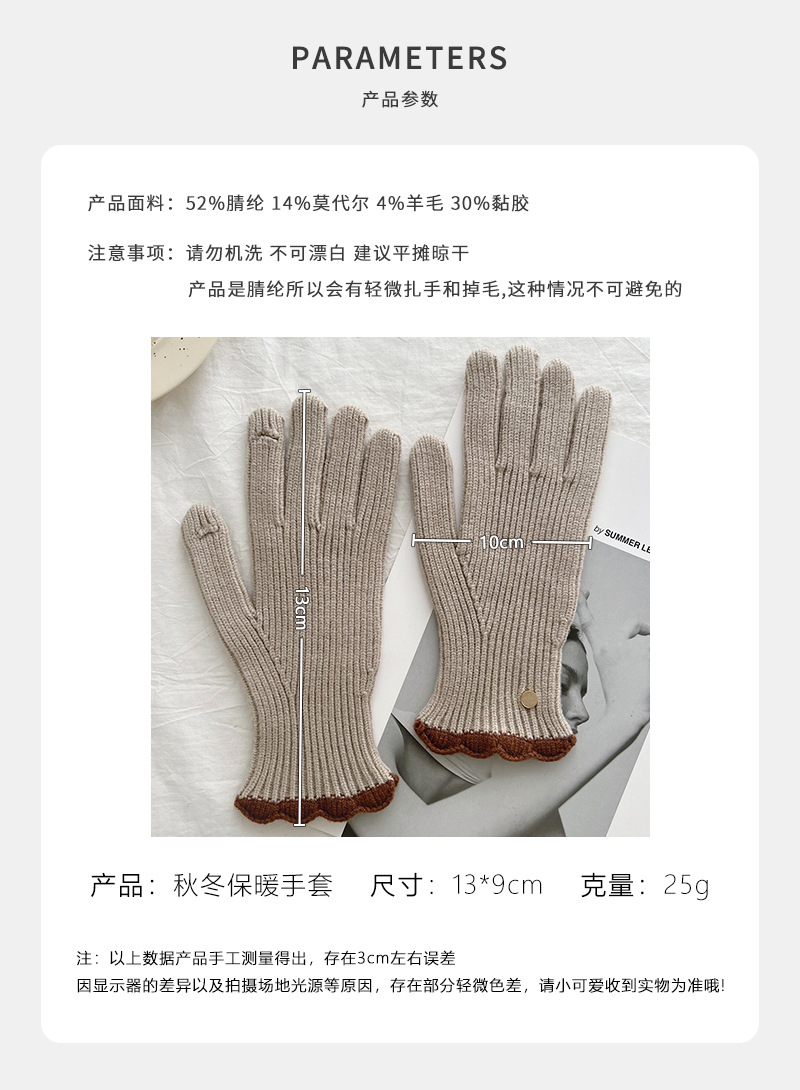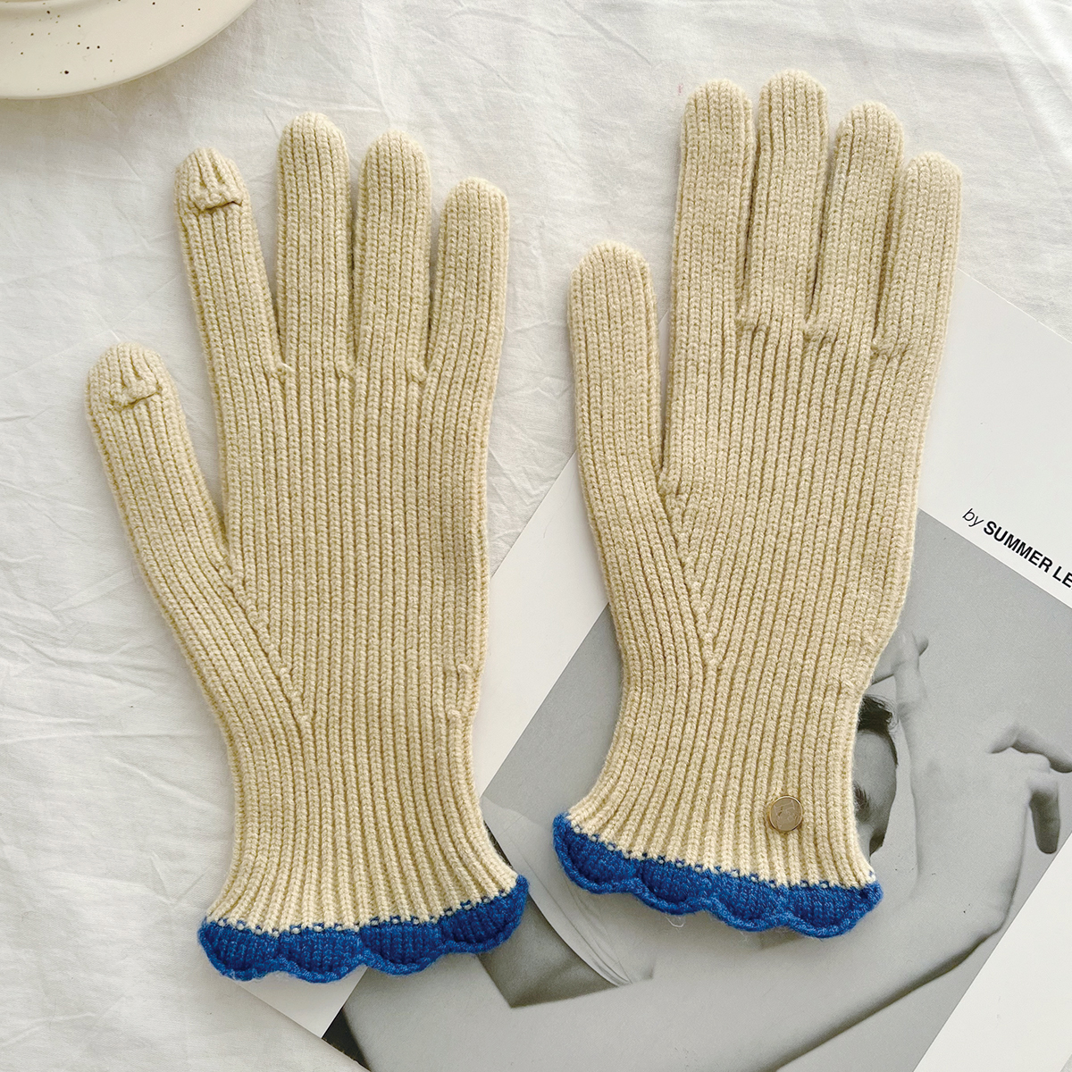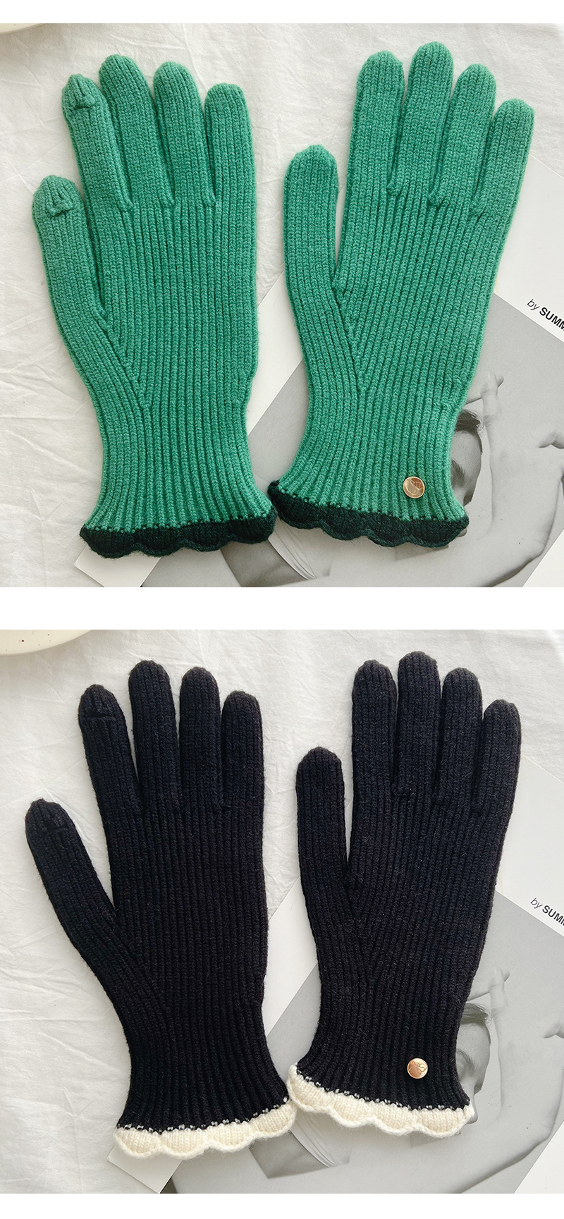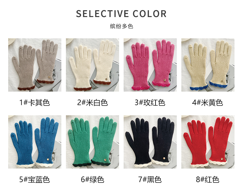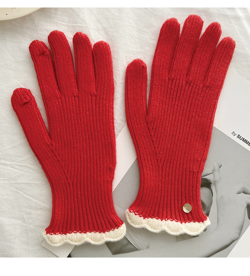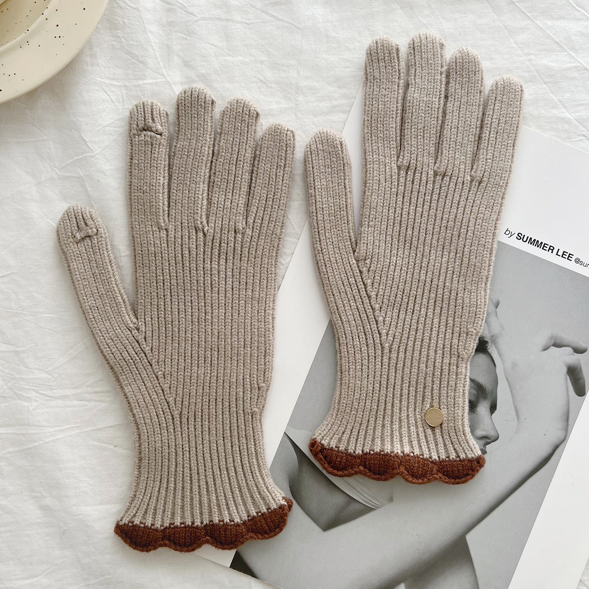 한국 스타일의 새로운 간단한 단색 레이스 장갑 여성의 겨울 두꺼운 따뜻한 방한 장갑 누설 손가락 승마 터치 스크린