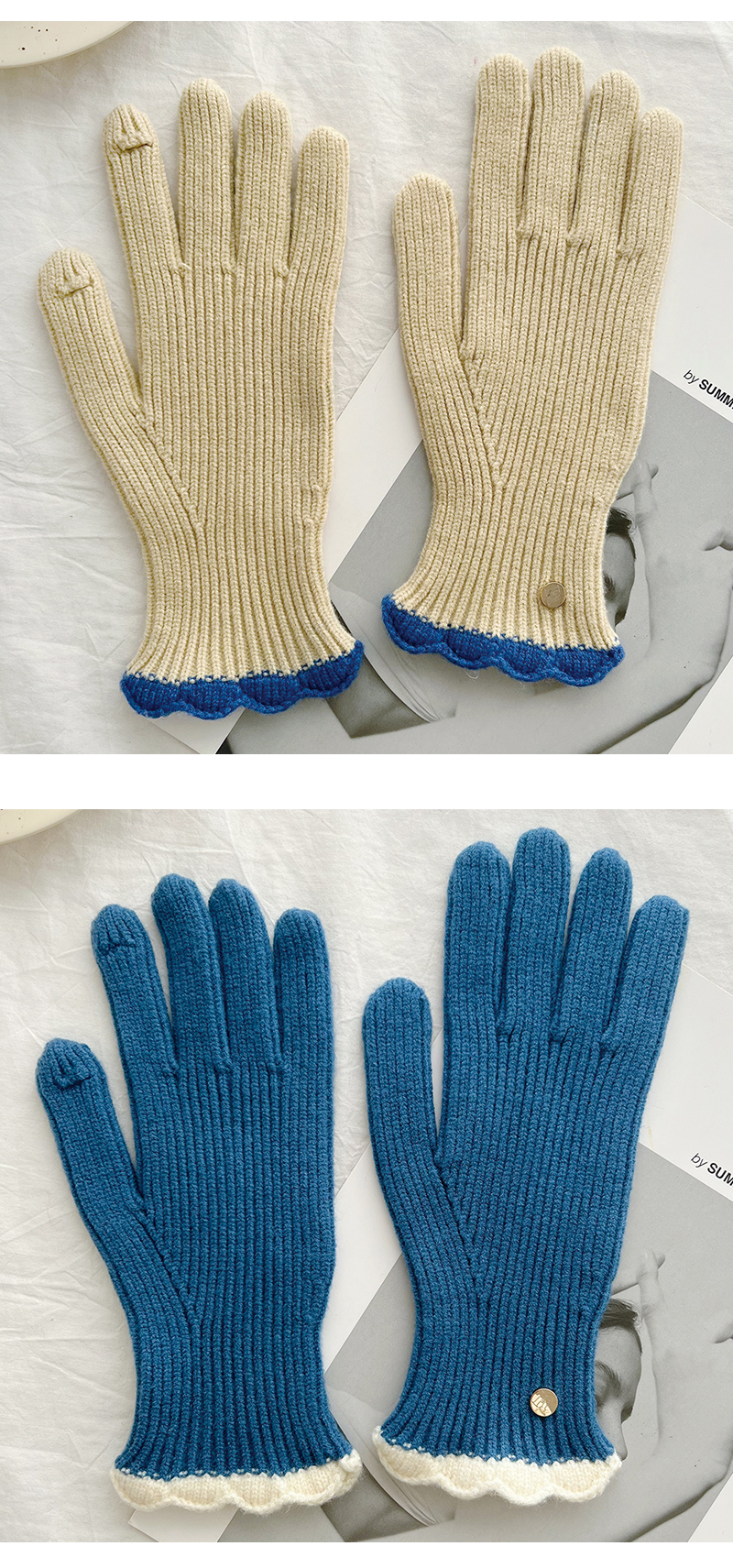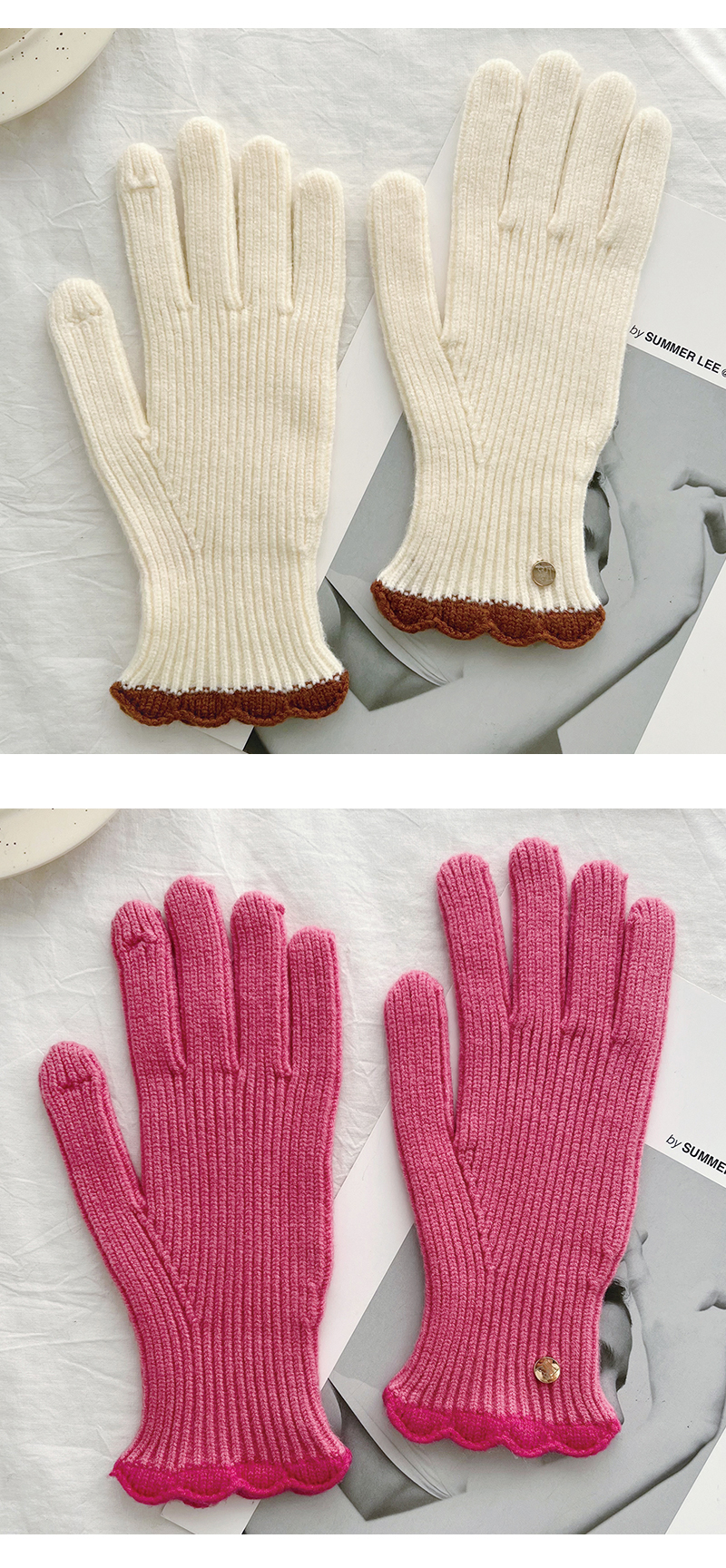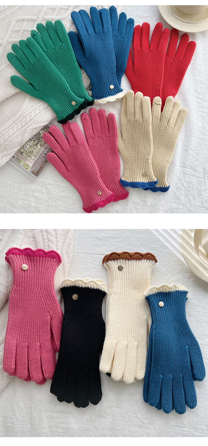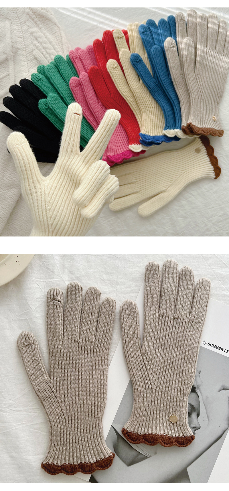 한국 스타일의 새로운 간단한 단색 레이스 장갑 여성의 겨울 두꺼운 따뜻한 방한 장갑 누설 손가락 승마 터치 스크린