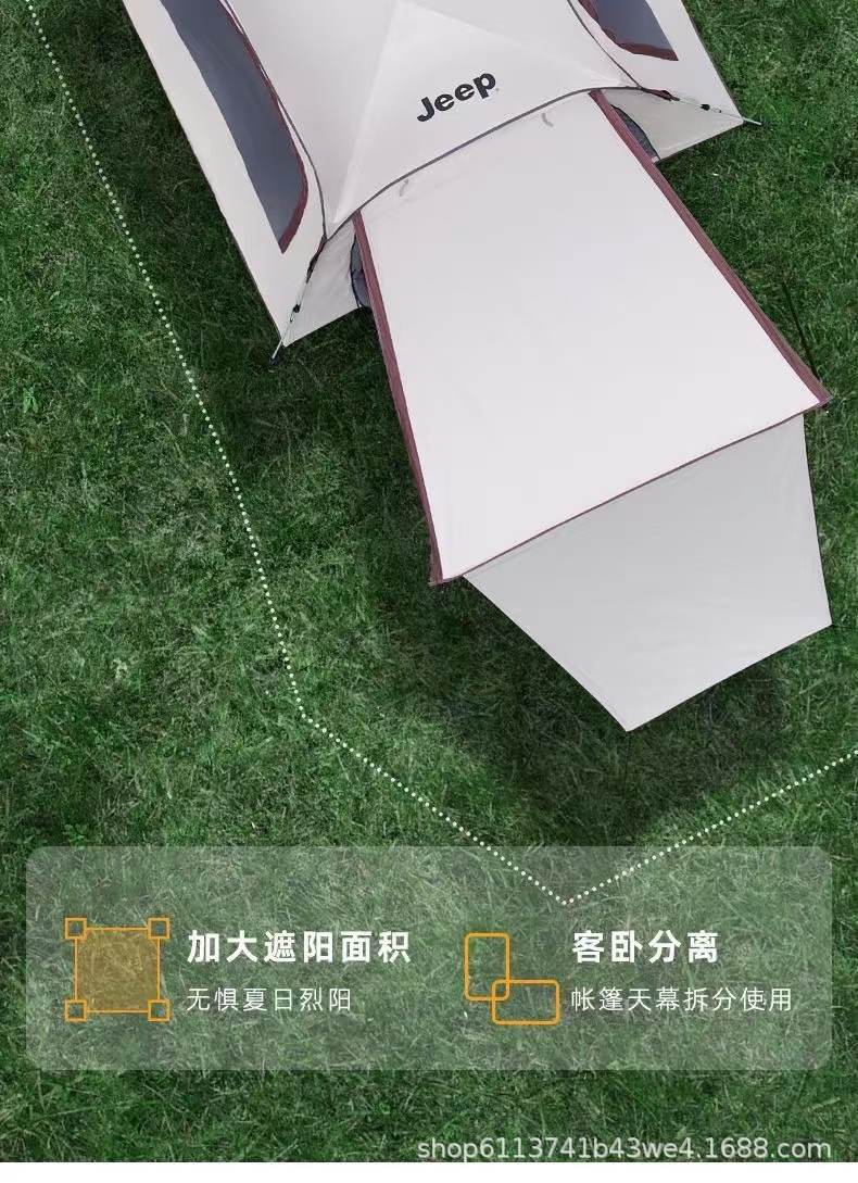 텐트 캐노피 2 대 1 야외 휴대용 접이식 캠핑 장비 텐트 외부 두꺼운 실버 코팅 자외선 차단제 캠핑의 전체 세트스토어 가기