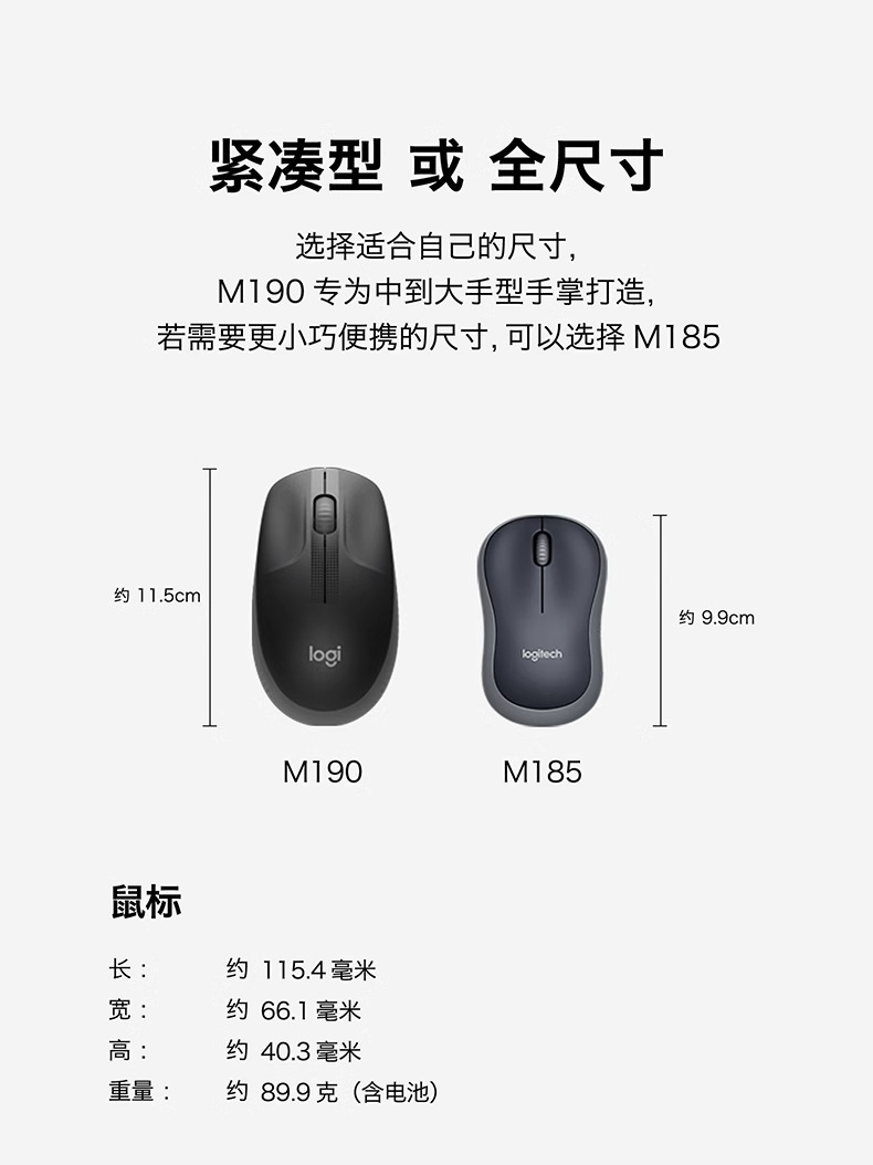 로지텍 M190 무선 풀 사이즈 마우스 USB 노트북 왼쪽과 오른손 대칭 연결 안정