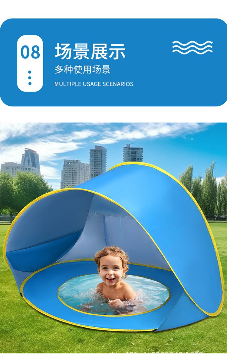 어린이를 위한 맞춤형 해변 텐트, 야외용 차양, 방풍 및 통기성 텐트, 인쇄 가능한 로고, 단색 어린이용 빠른 설치 텐트