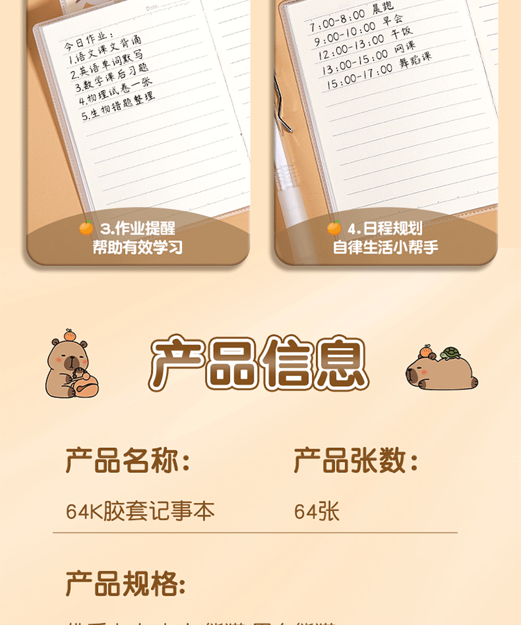 카피 발라 접착제 세트 64K 노트북 두꺼운 Ins 높은 색상 가치 학생 만화 귀여운 메모장 저널