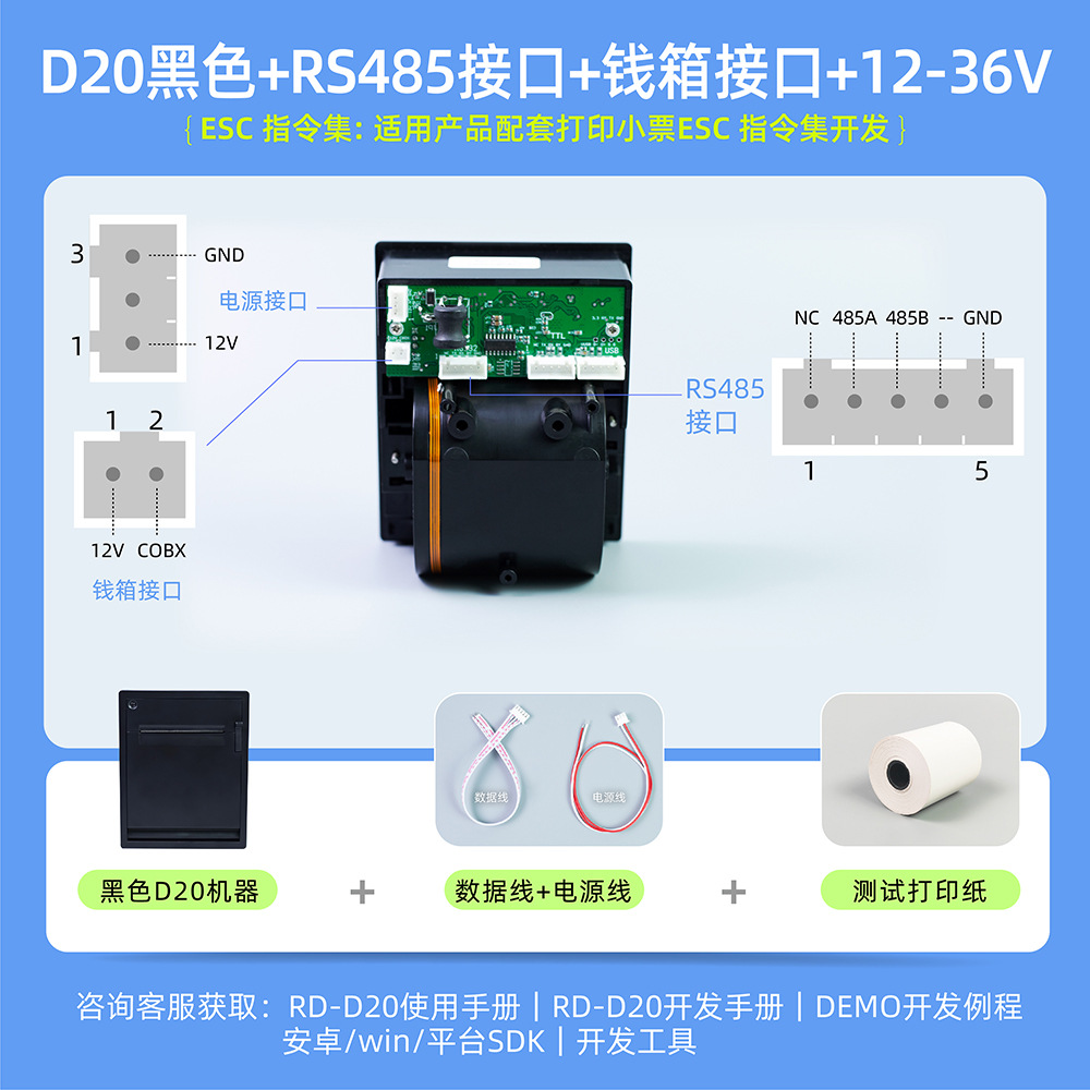• D20 영수증 기계 +485 현금 상자 포트 12-36V