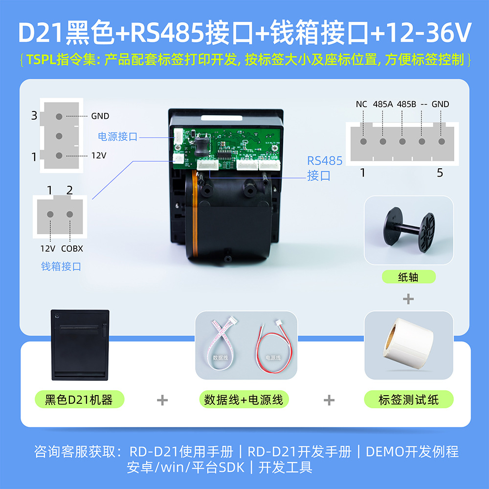 • D21 라벨 기계 + 485 현금 상자 포트 12-36V 특수 라벨 프린트 헤드