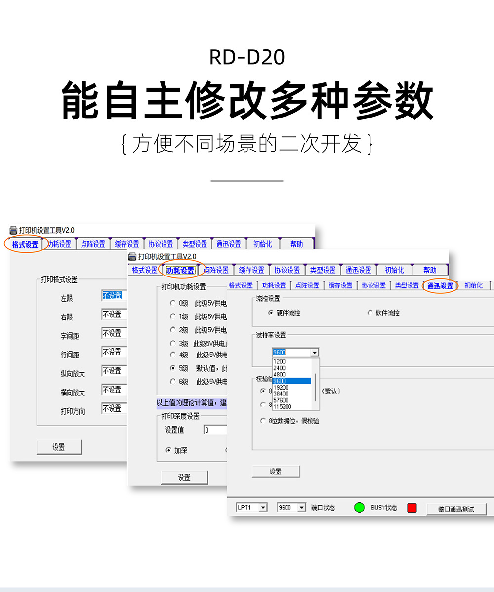 • D21 라벨 기계 + 232 직렬 포트 현금 상자 포트 12-36V 특수 라벨 프린트 헤드