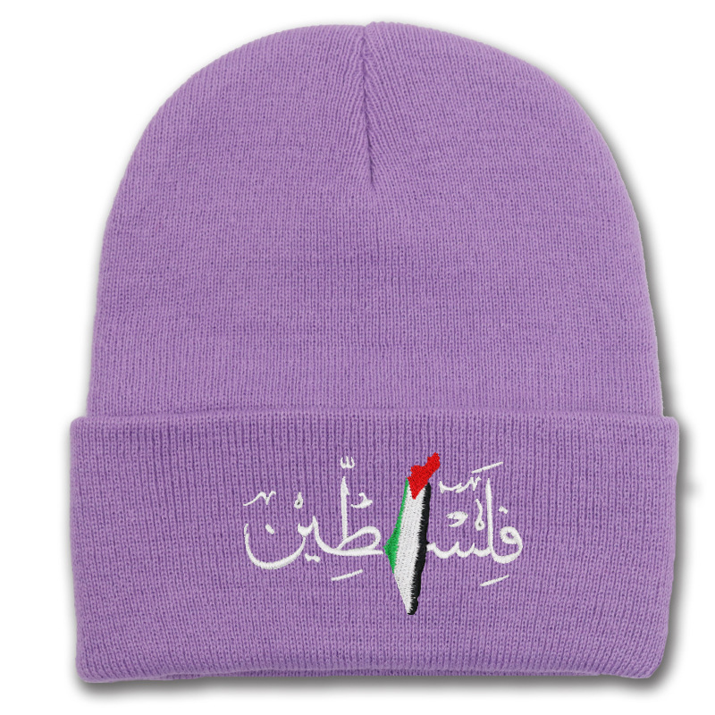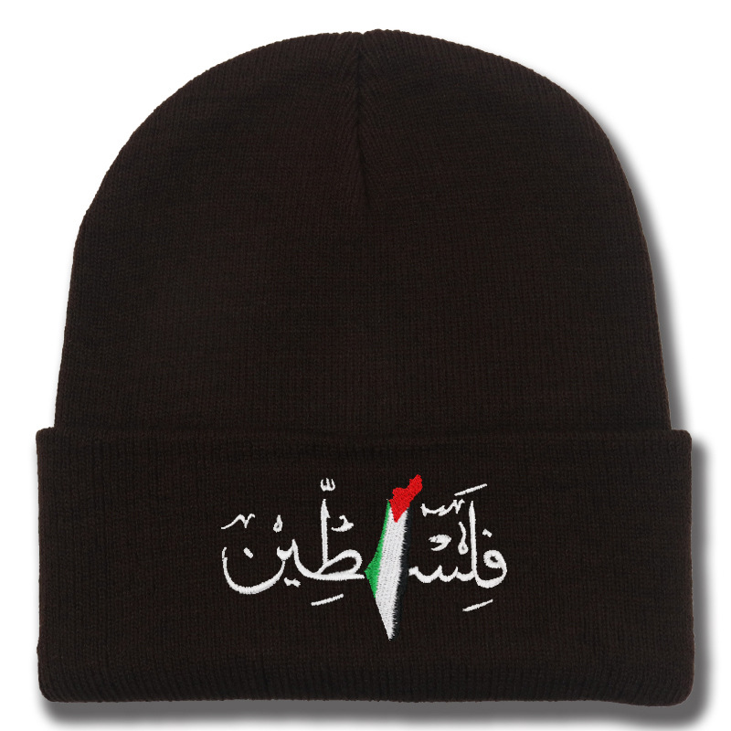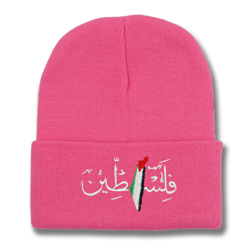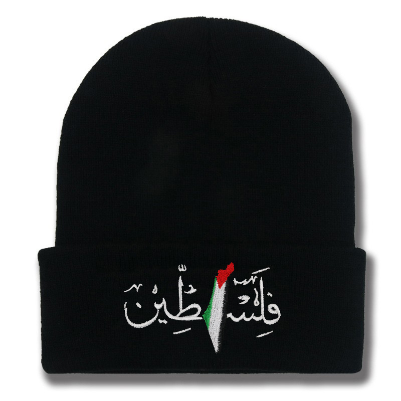 국경 간 아마존 팔레스타인 국기 자수 니트 모자 아랍어 문자 남성과 여성 가을, 겨울 따뜻한 방한 모자 트렌드스토어 가기