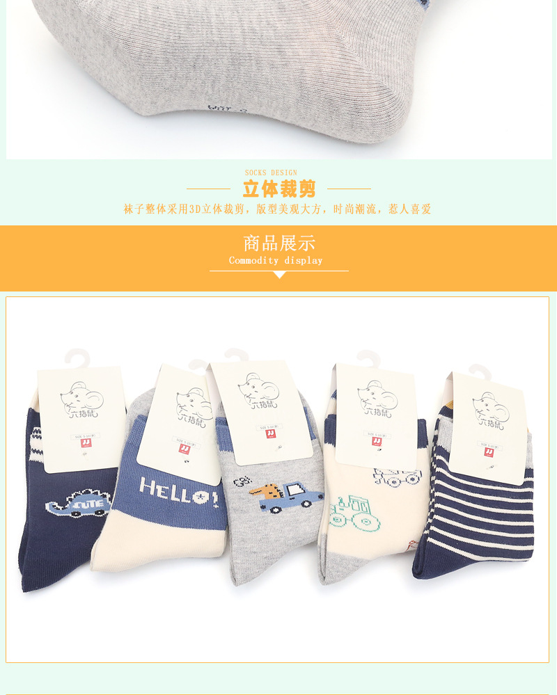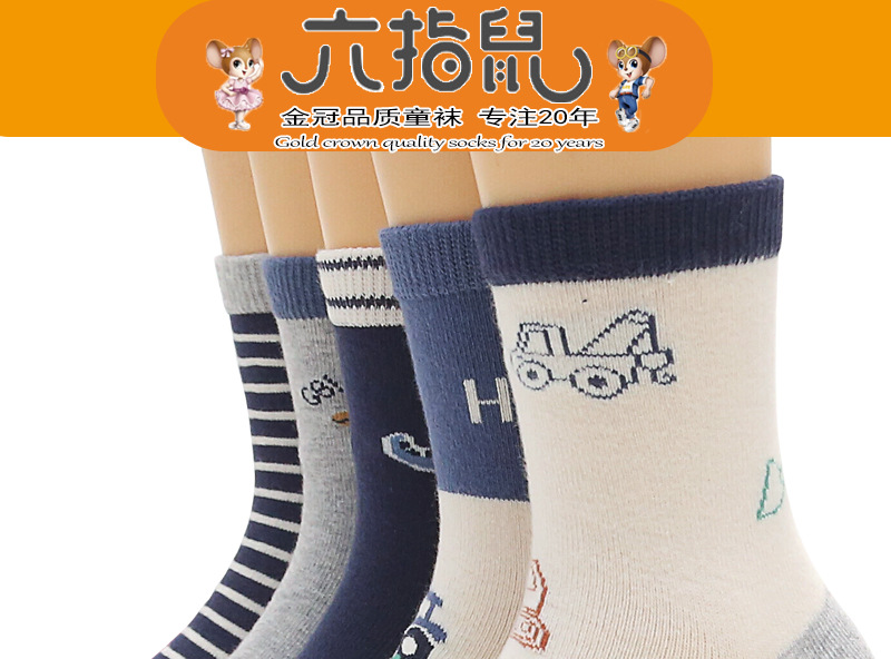 6 손가락 마우스 어린이 양말 소년 공룡 따뜻한 줄무늬 Combed Boys 빅 키즈 자동차 두꺼운 면 가을과 겨울 중간 튜브 양말스토어 가기
