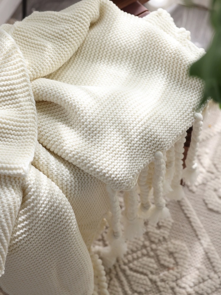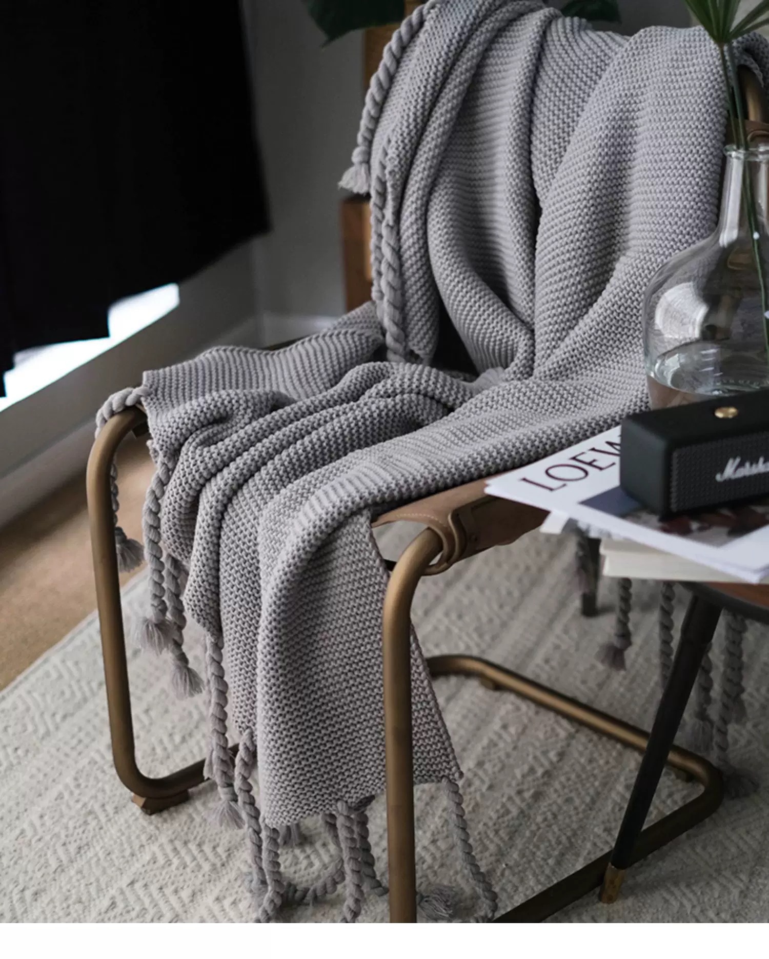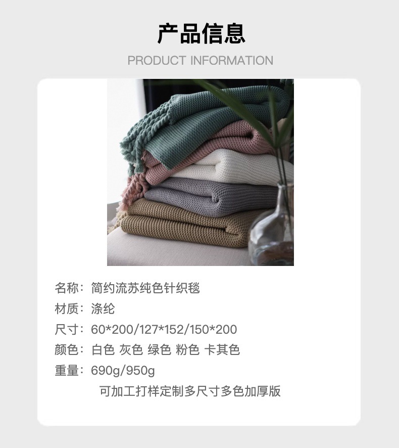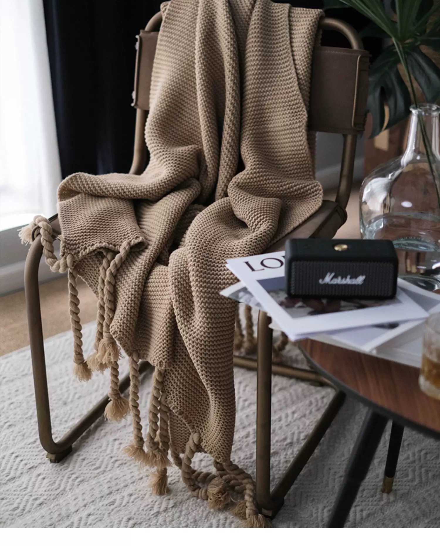 북유럽 스타일 담요 소파 담요 간단한 담요 솔리드 컬러 술 니트 담요 담요 낮잠 담요 에어컨 담요 흐름스토어 가기