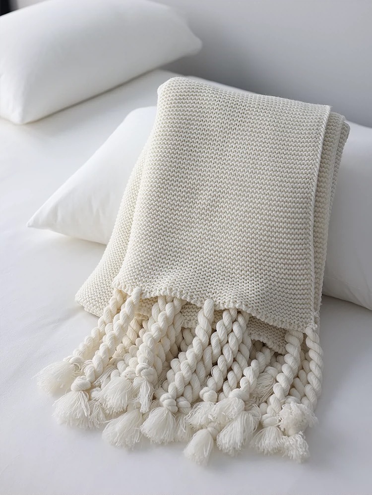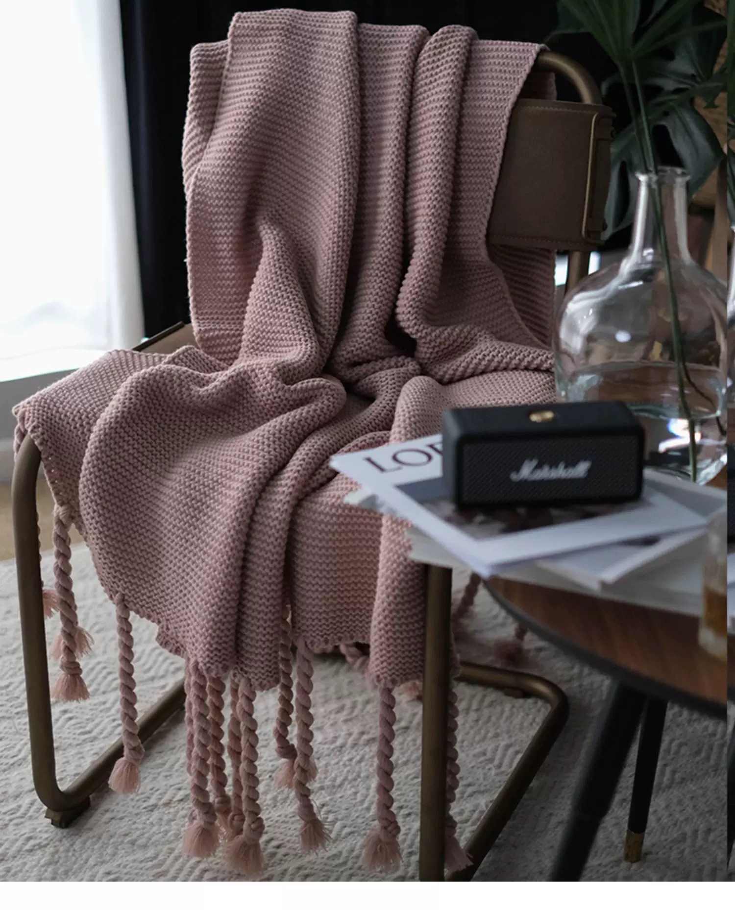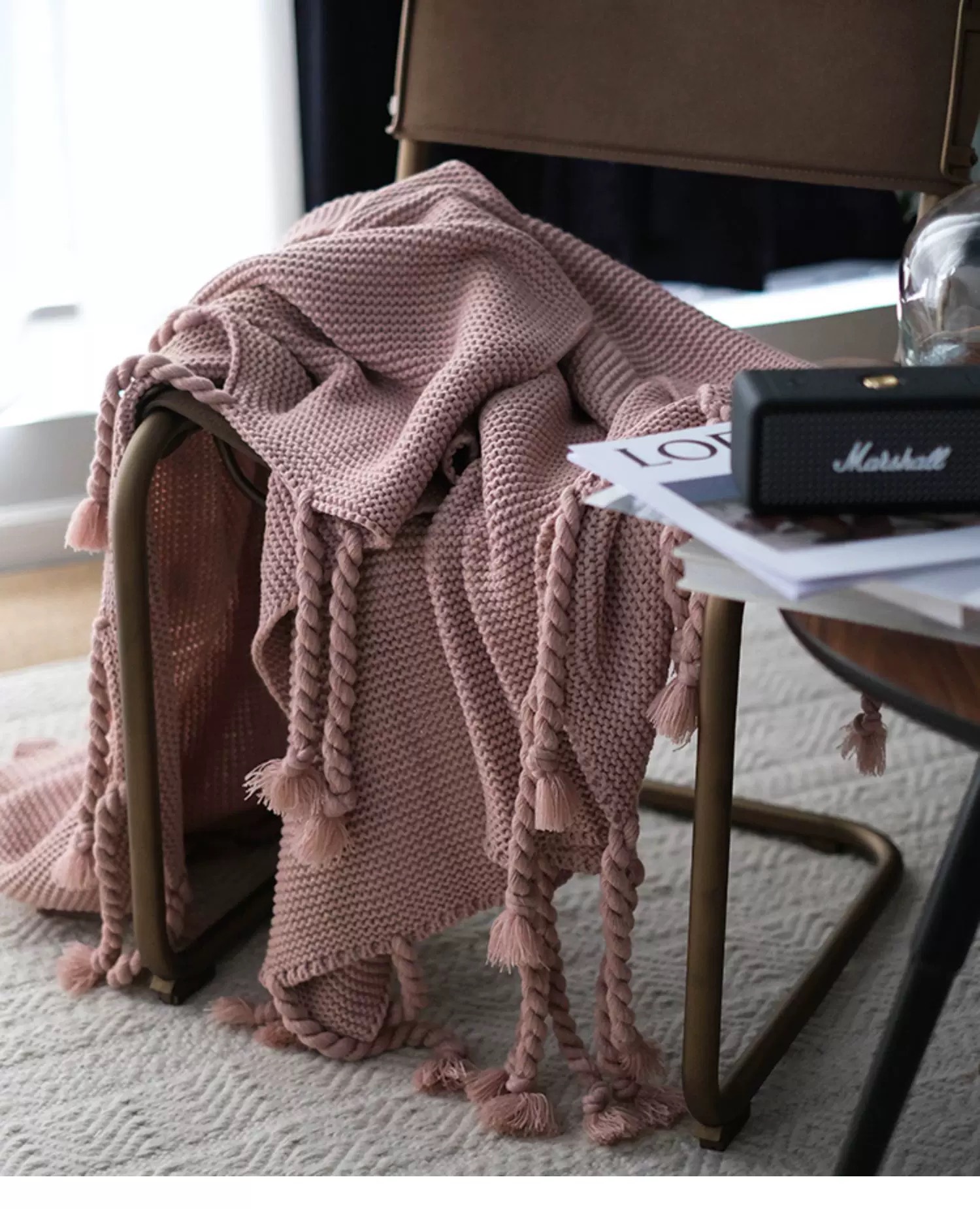 북유럽 스타일 담요 소파 담요 간단한 담요 솔리드 컬러 술 니트 담요 담요 낮잠 담요 에어컨 담요 흐름스토어 가기