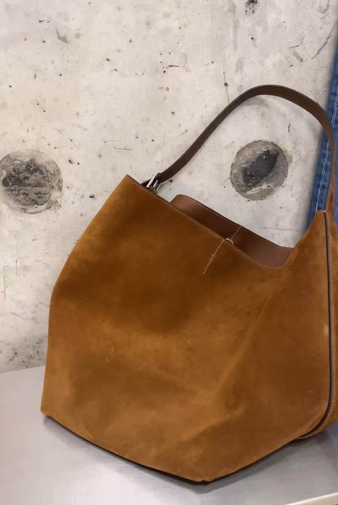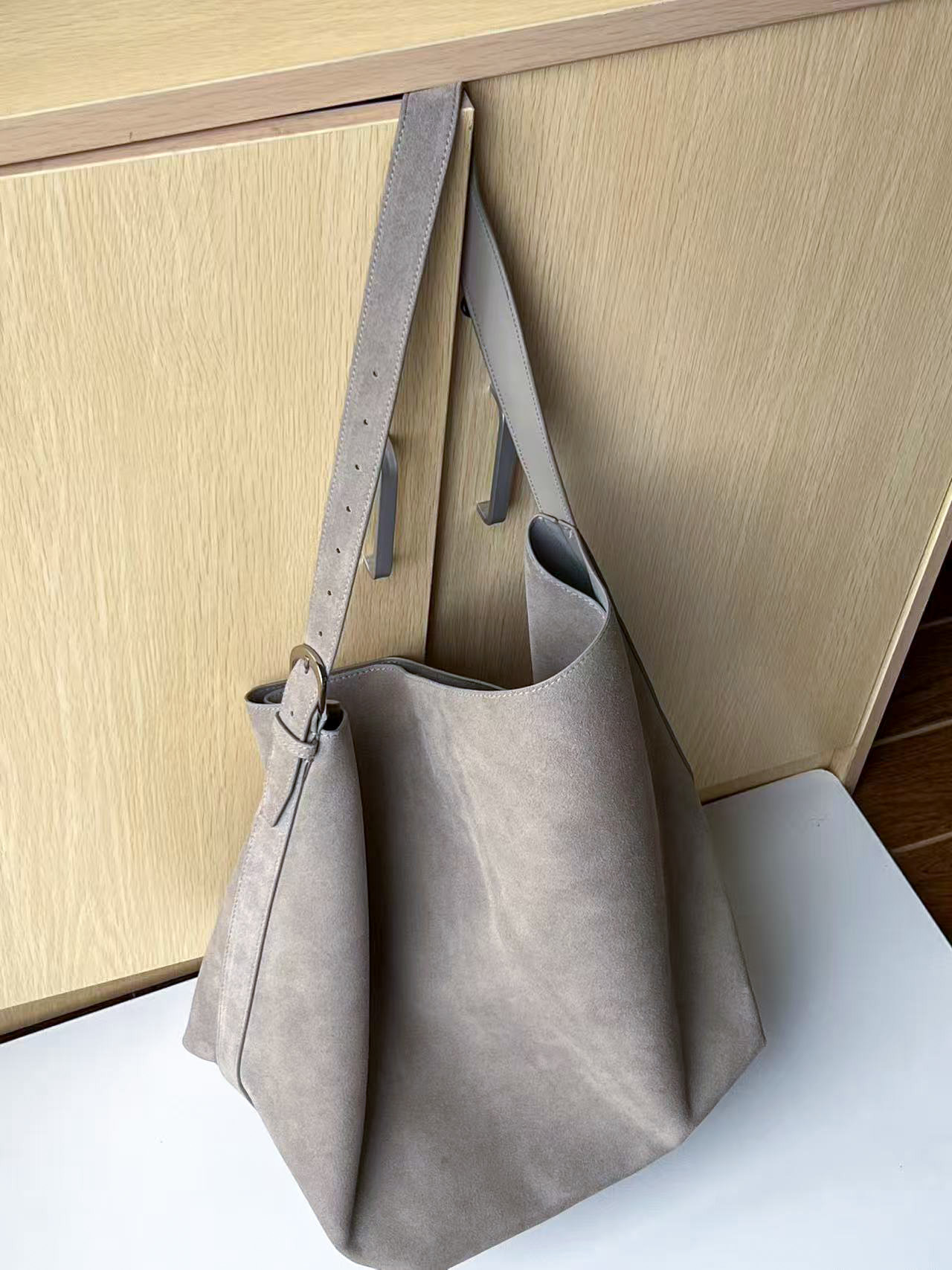 틈새 디자인 빈티지 스웨이드 Frosted Cowhide 버킷 백 새로운 정품 가죽 통근 여성 가방 대용량 토트 백