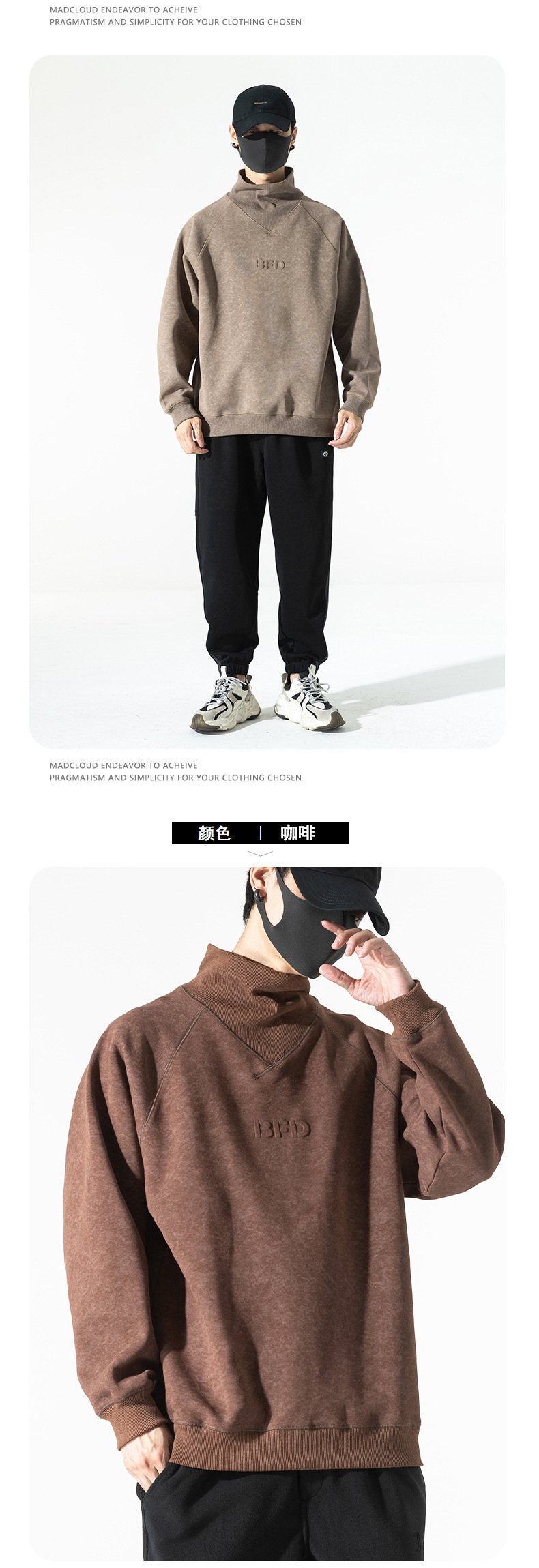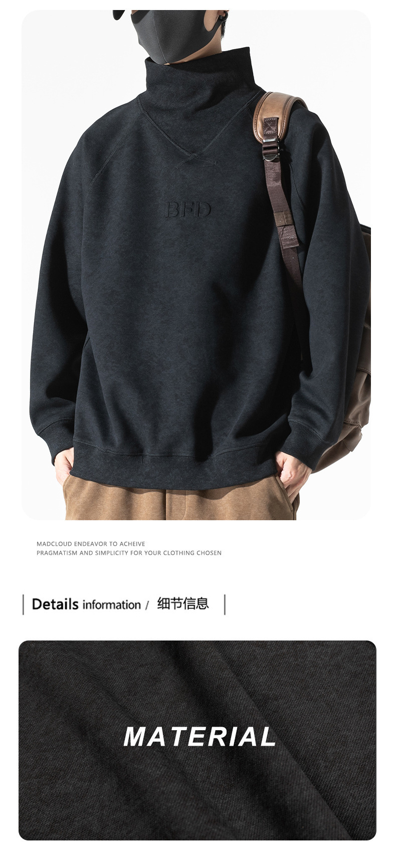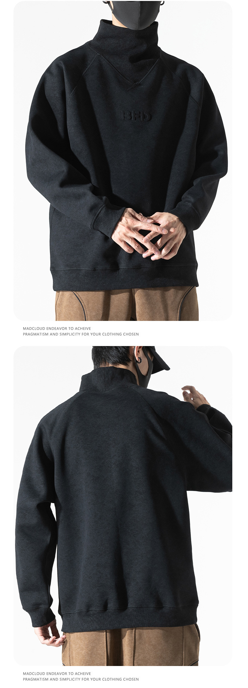 尚谷男装 秋冬季字母钢印高领卫衣男士宽松插肩潮流百搭男打底衫