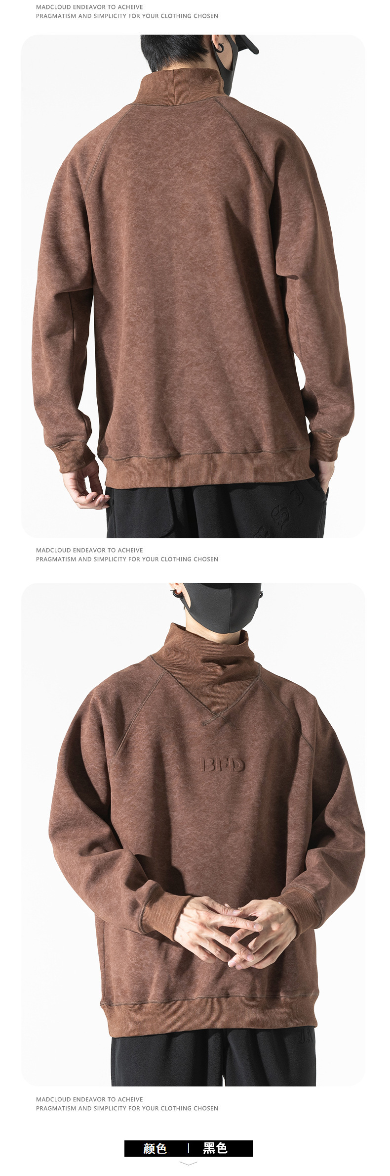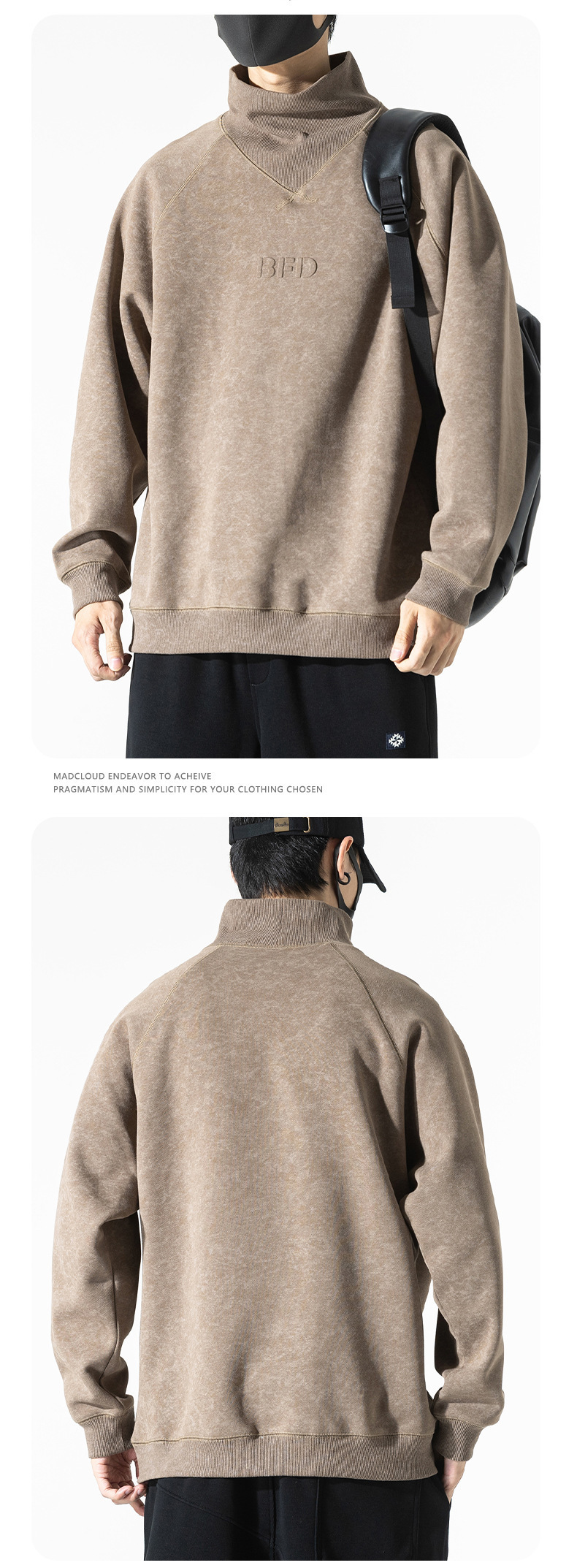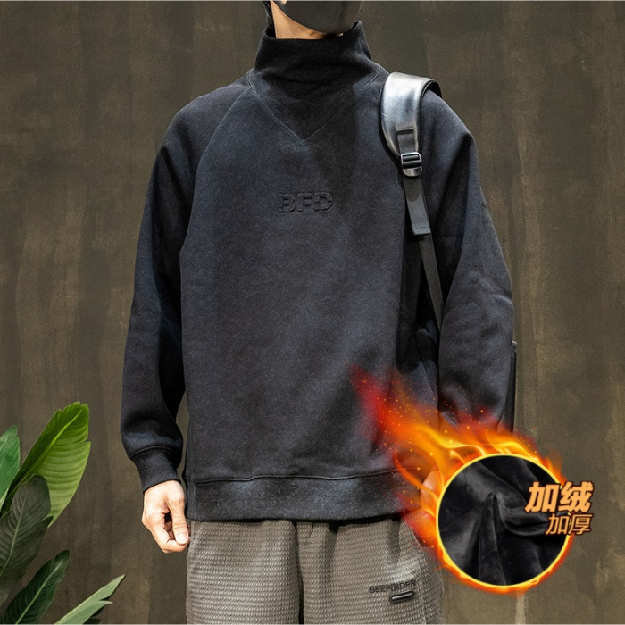 尚谷男装 秋冬季字母钢印高领卫衣男士宽松插肩潮流百搭男打底衫