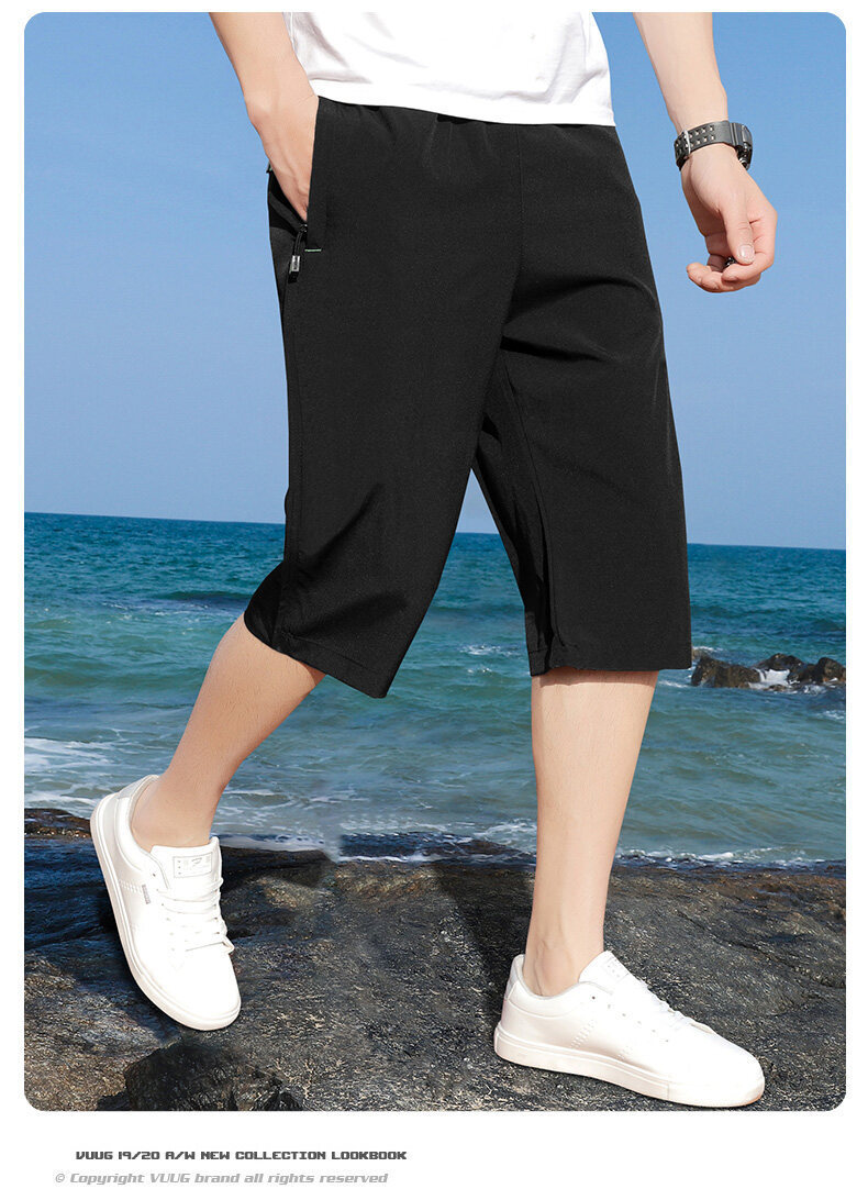 빠른 건조 스포츠 반바지 남자 여름 경량 아이스 실크 느슨한 달리기 짠 바지 비치 캐주얼 바지 빠른 건조스토어 가기