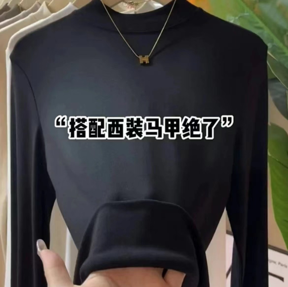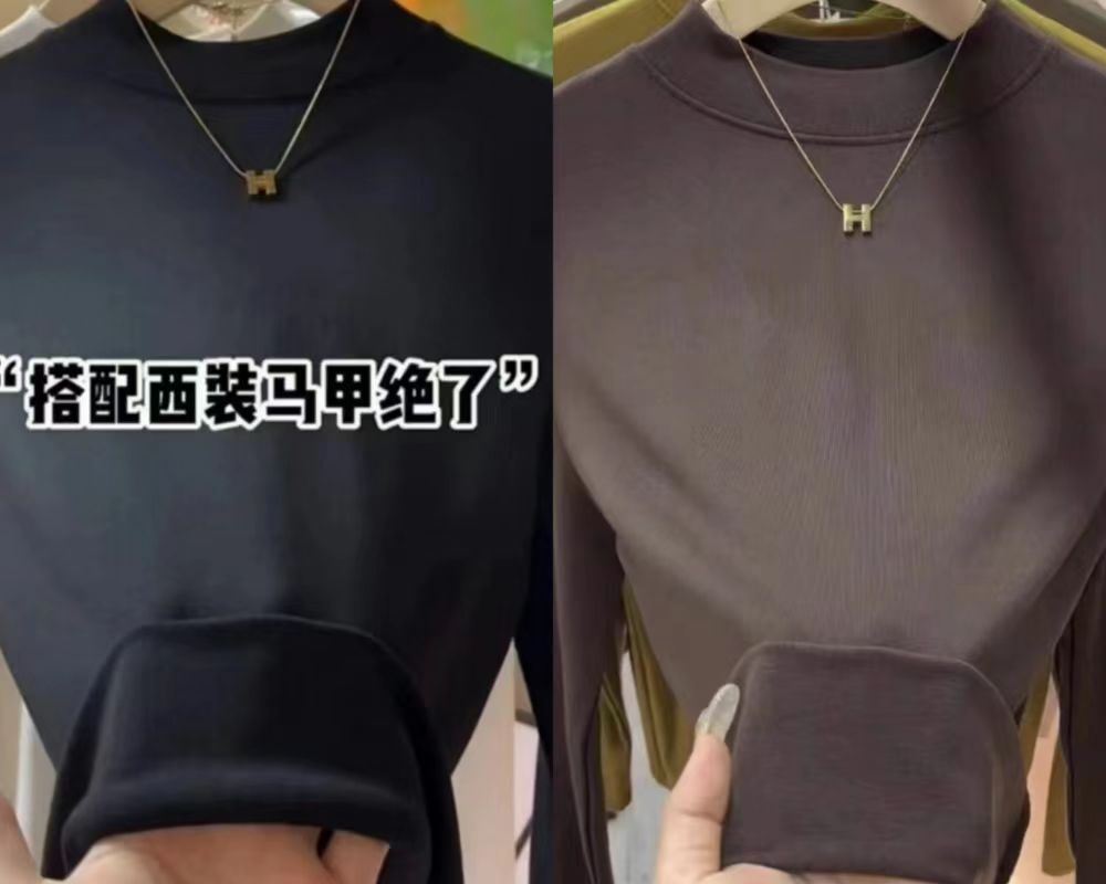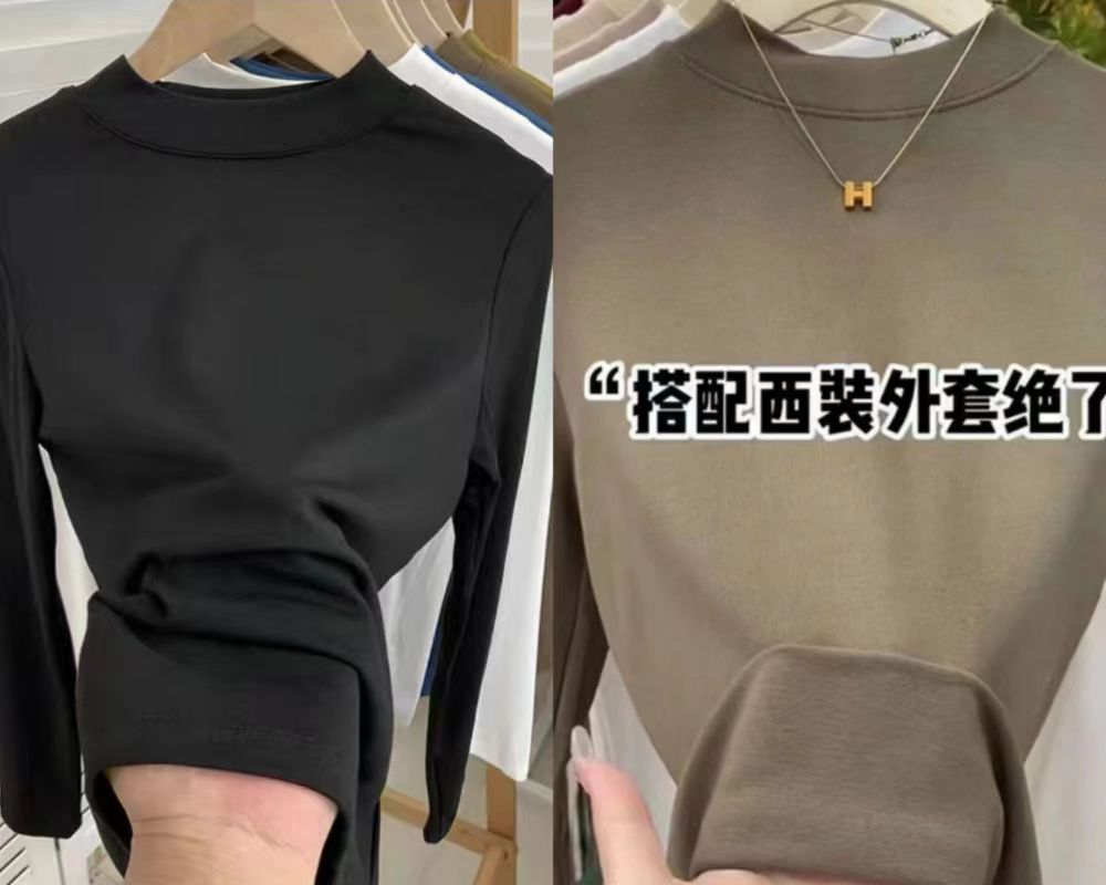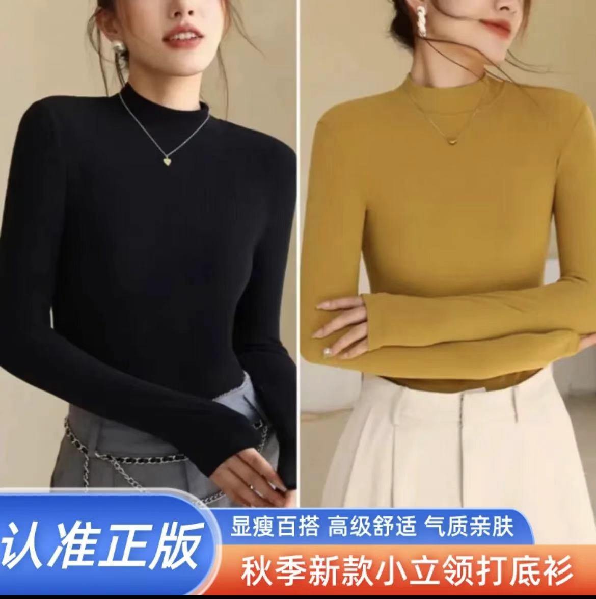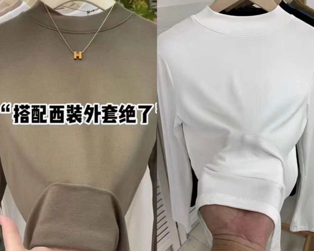 여자 미드 하이 칼라베이스 셔츠 가을 2024 새로운 화이트 하이 엔드 슬림 핏 긴팔 탑스토어 가기