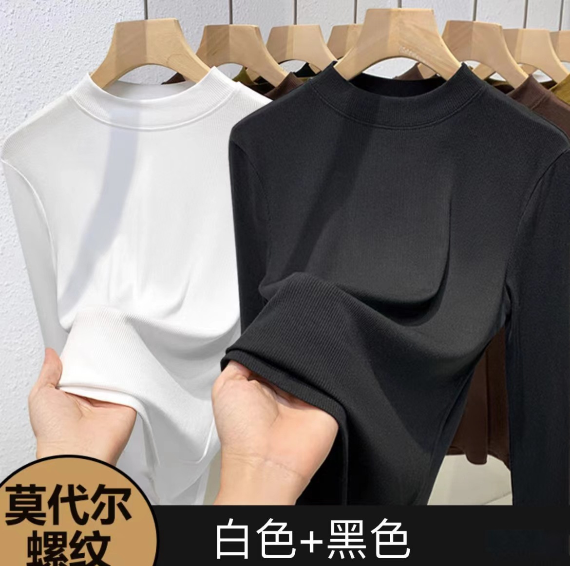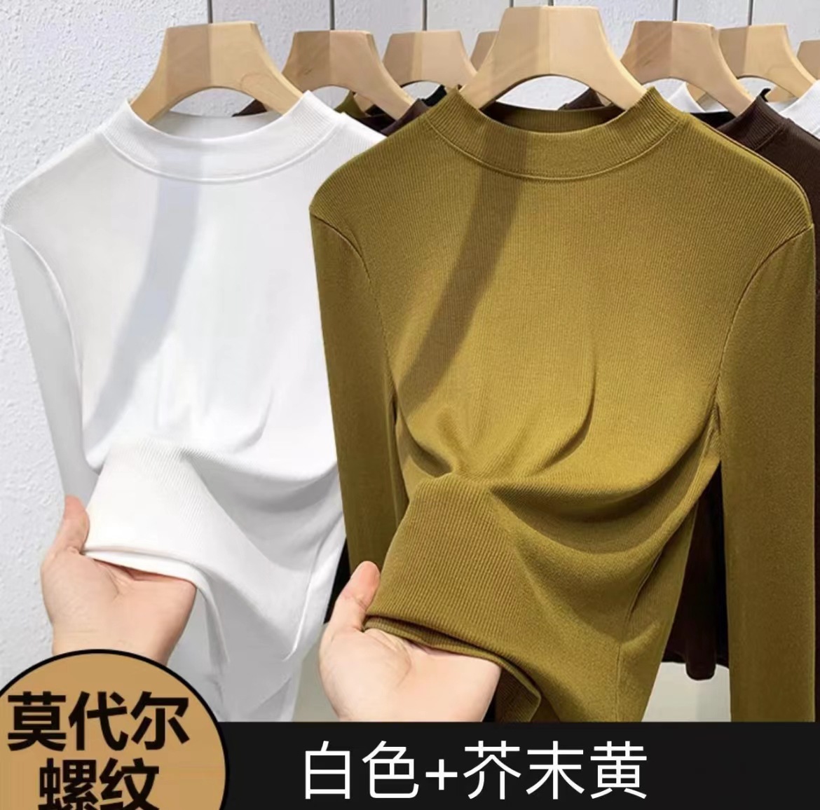 여자 미드 하이 칼라베이스 셔츠 가을 2024 새로운 화이트 하이 엔드 슬림 핏 긴팔 탑