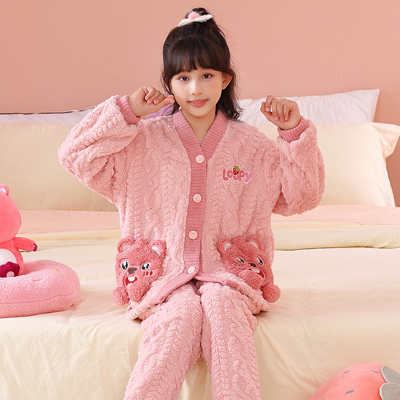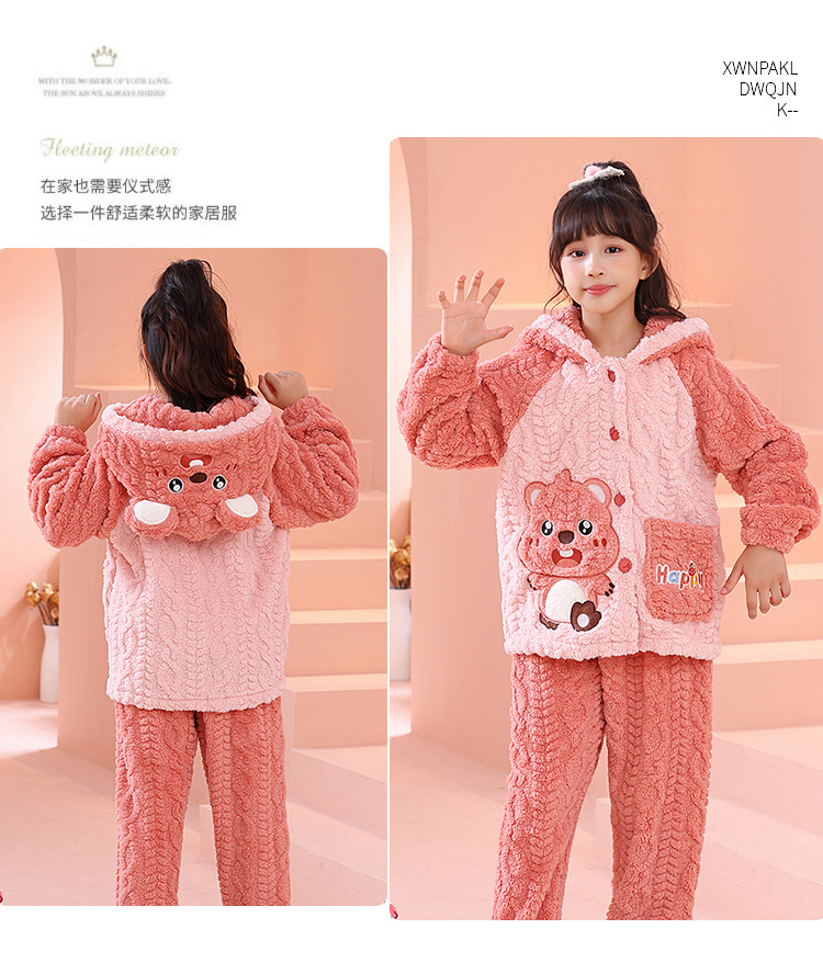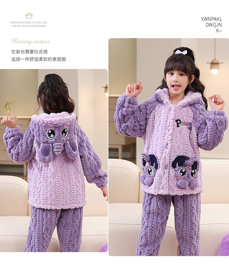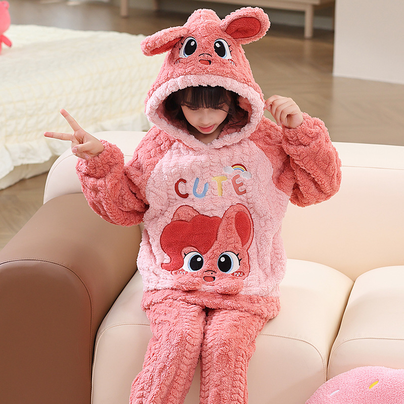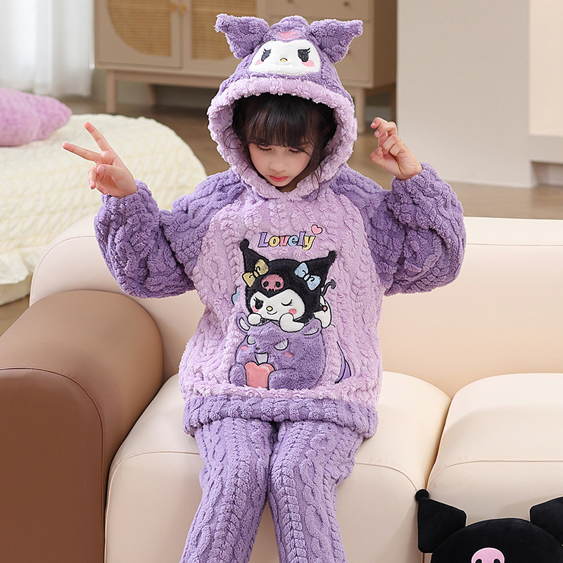 어린이 잠옷 소녀 기모 두꺼운 가을과 겨울 산호 양털 만화 Kulomi 어린 소녀의 플란넬 홈 옷