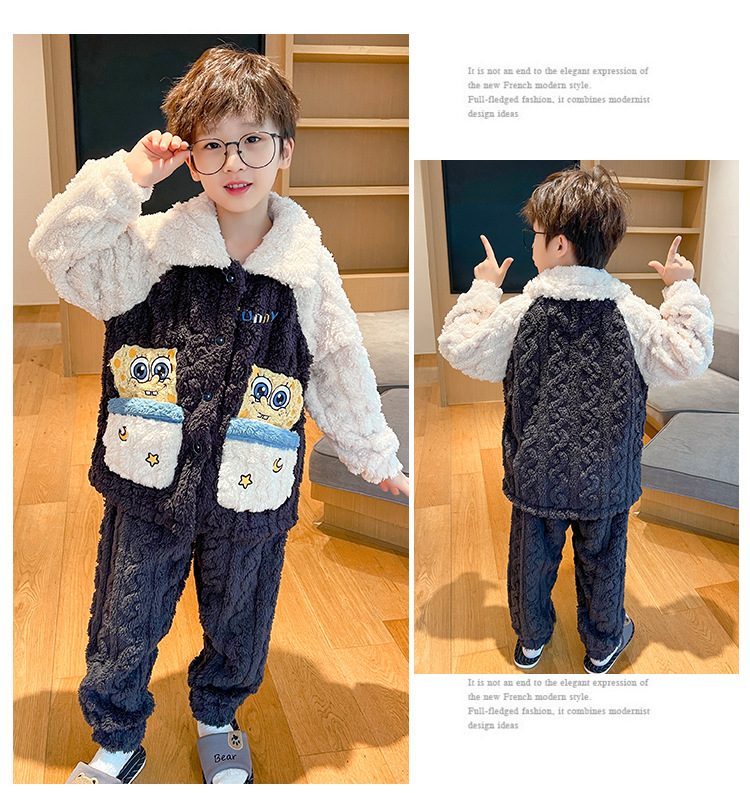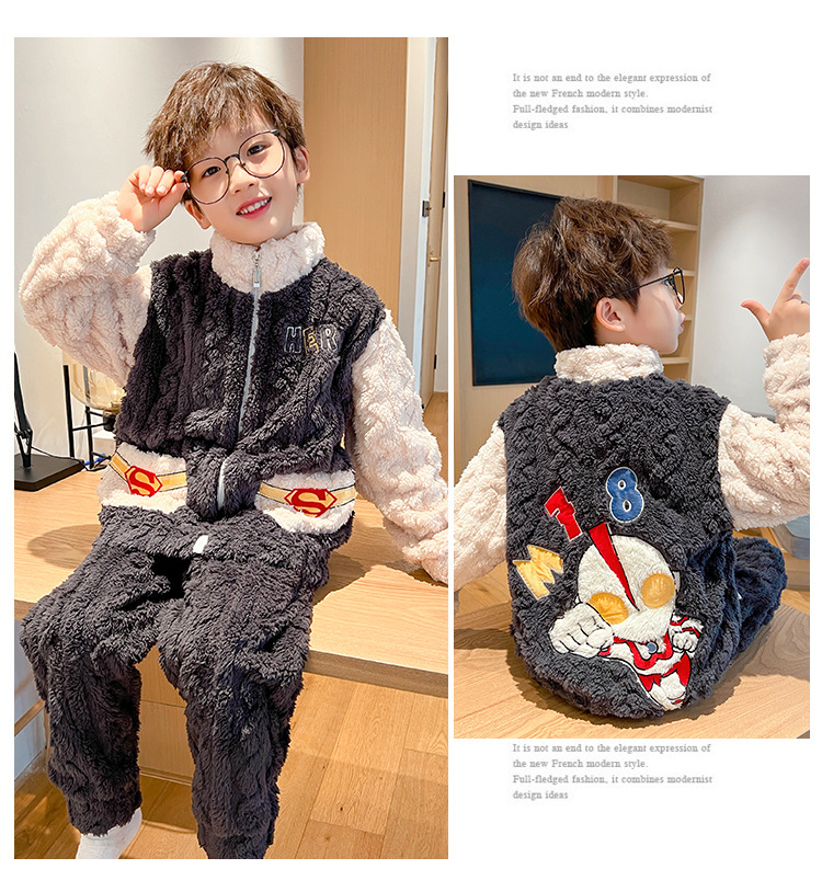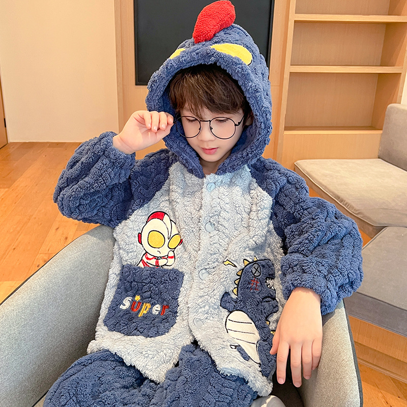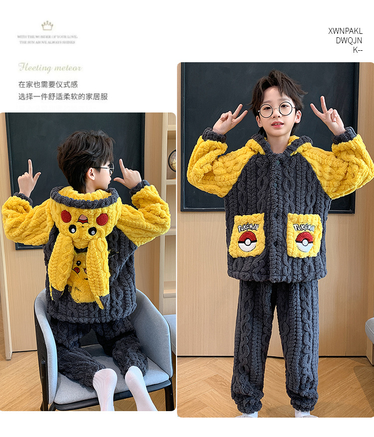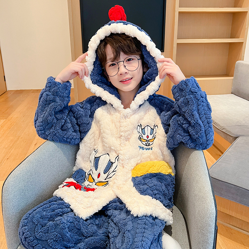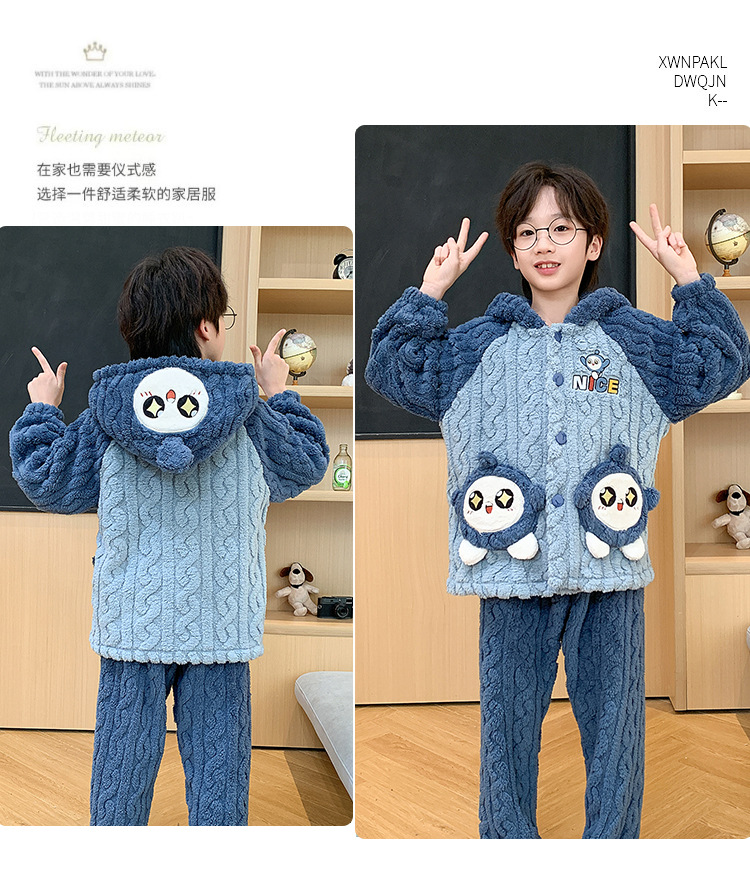 어린이 잠옷 소녀 기모 두꺼운 가을과 겨울 산호 양털 만화 Kulomi 어린 소녀의 플란넬 홈 옷