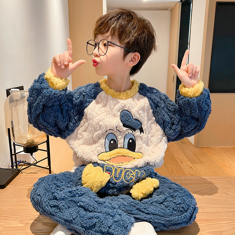 어린이 잠옷 소녀 기모 두꺼운 가을과 겨울 산호 양털 만화 Kulomi 어린 소녀의 플란넬 홈 옷스토어 가기
