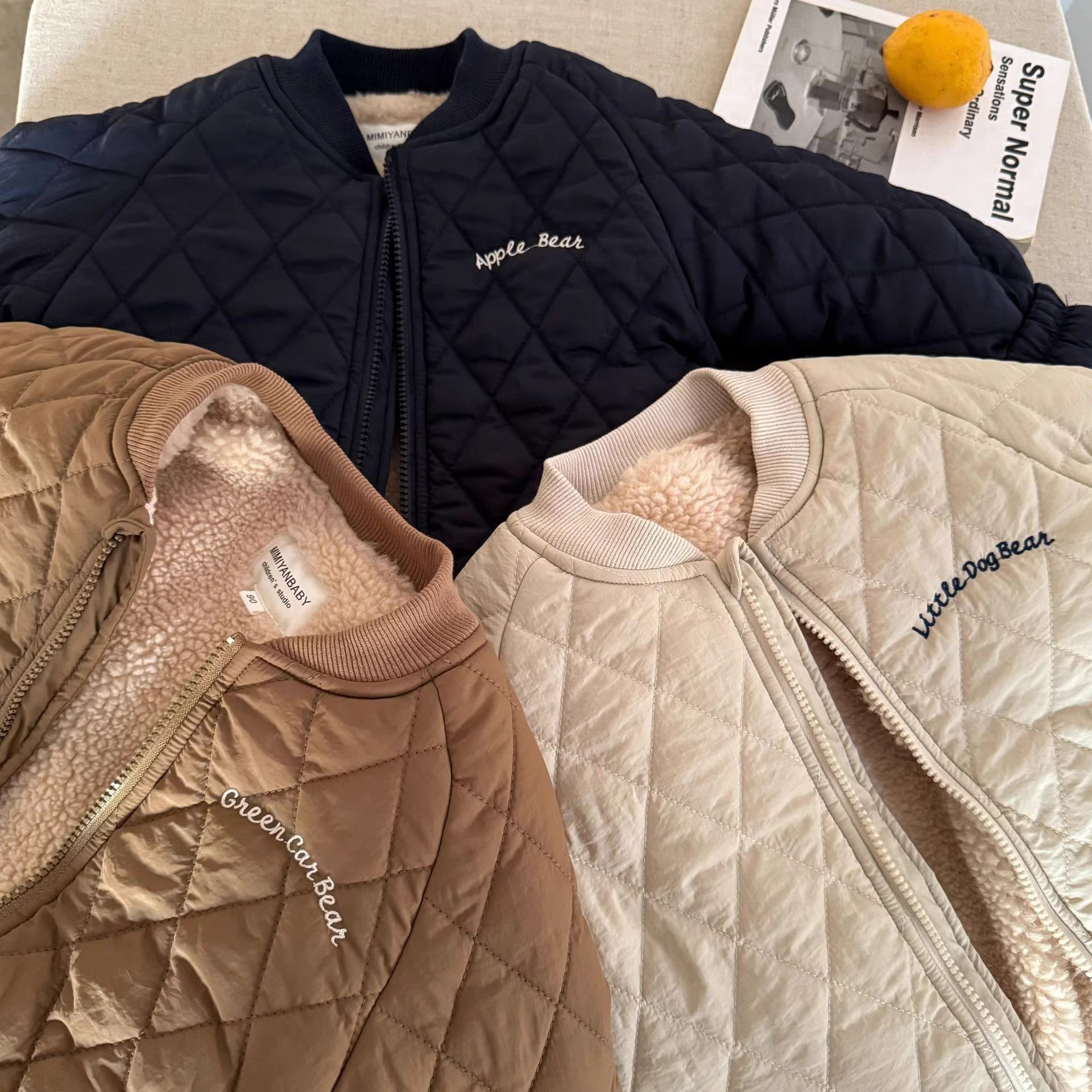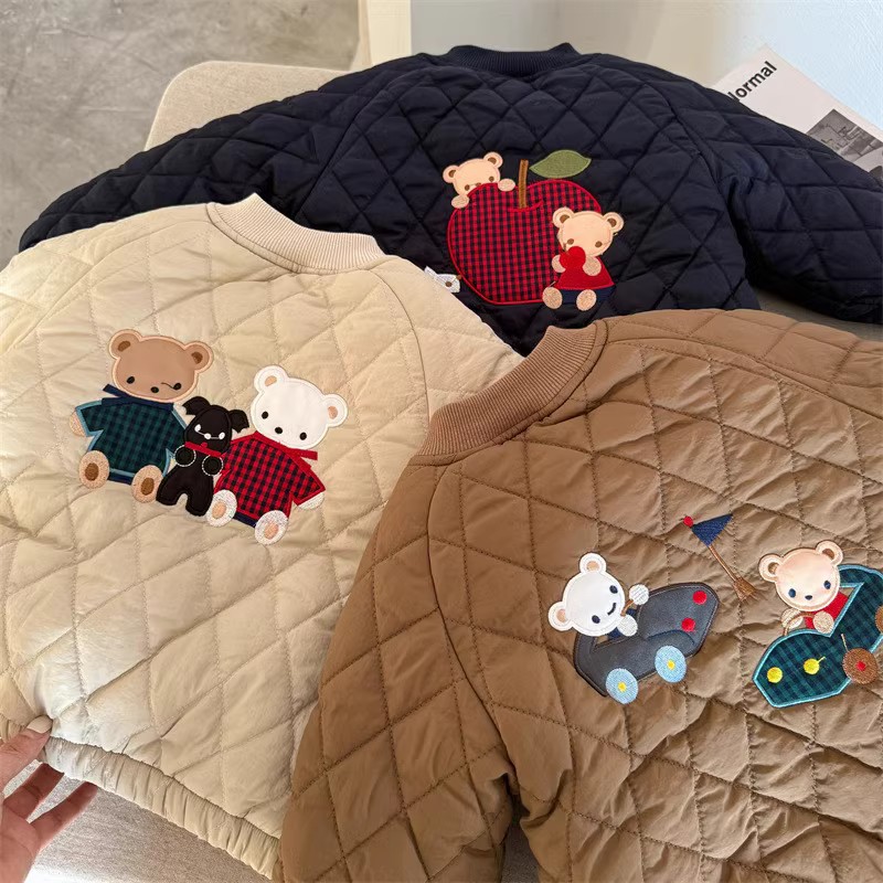 당일 출고 가능! 어린이 2024 가을과 겨울 새로운 남녀 아동복 두꺼운 만화 면화 옷 아기 자수 면화 코트스토어 가기