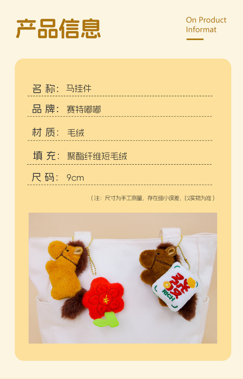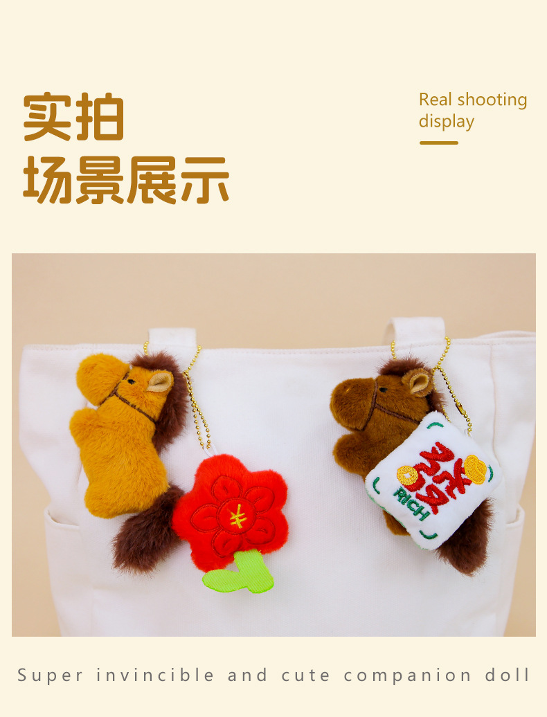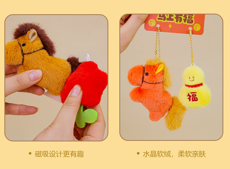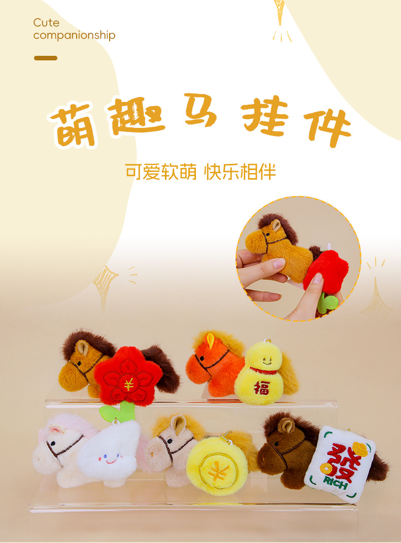 세트두두 말의 해 행운의 마스코트 인형, 바로 부자가 되는 작은 말 봉제인형, 가방 장식품, 열쇠고리스토어 가기