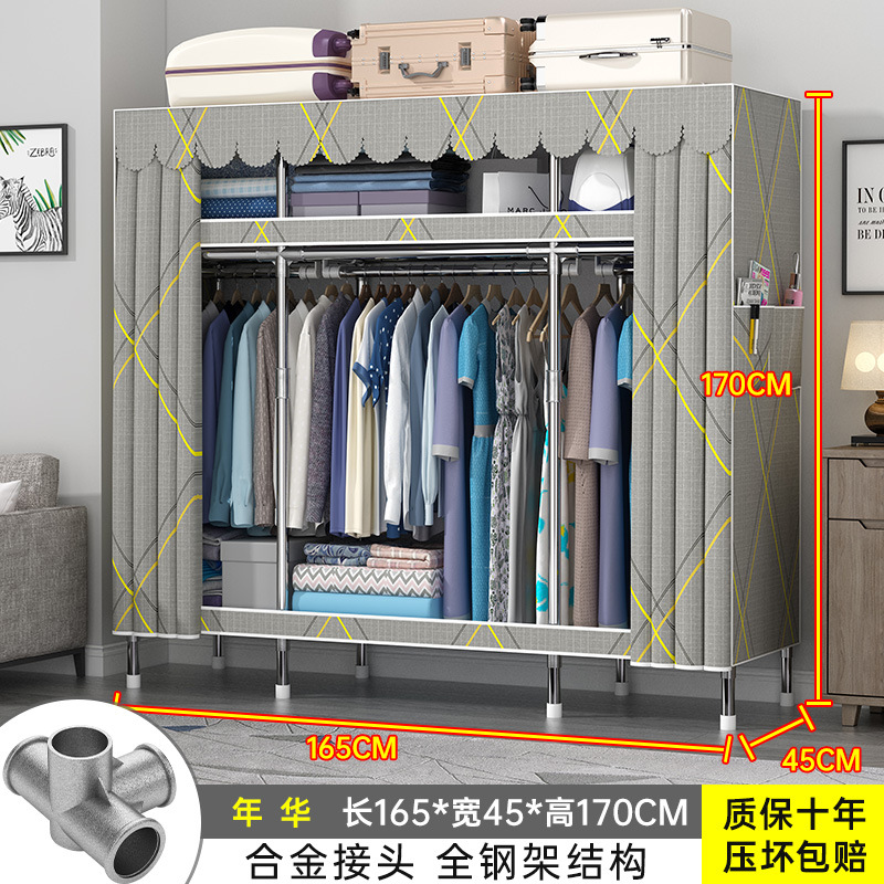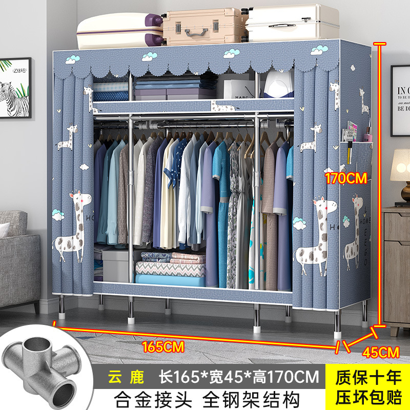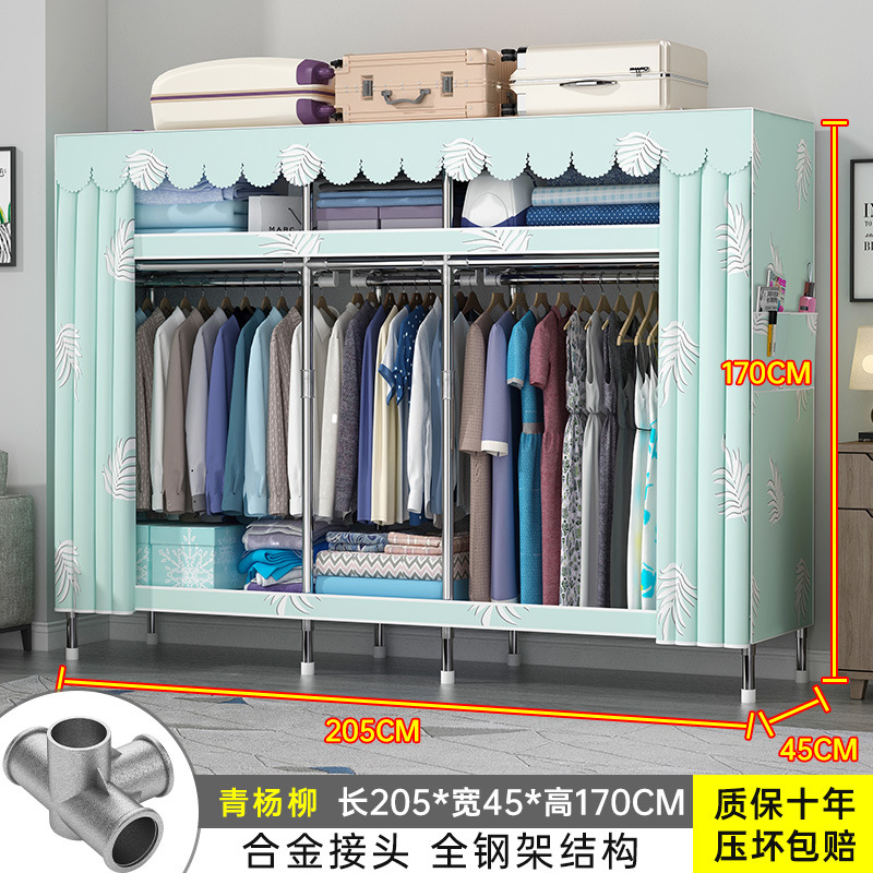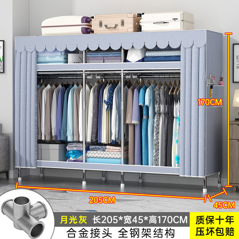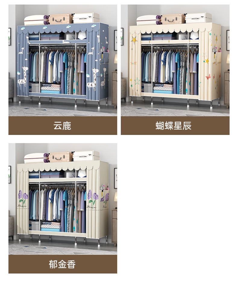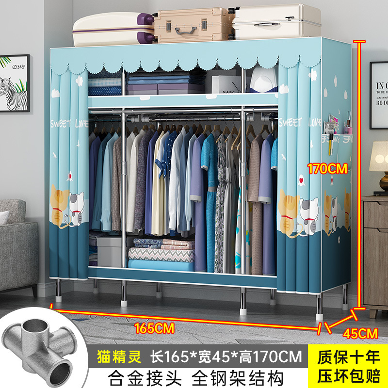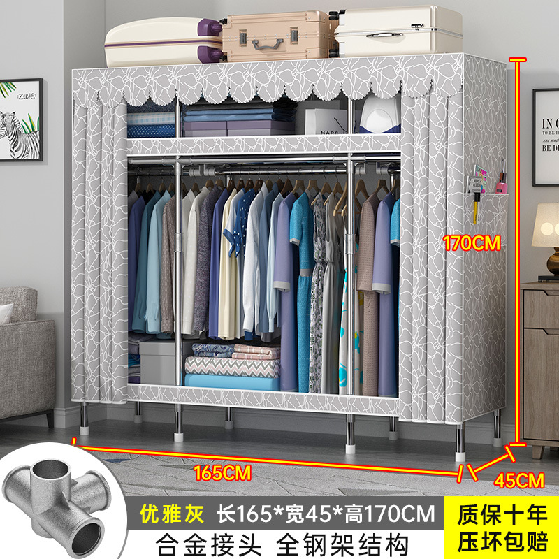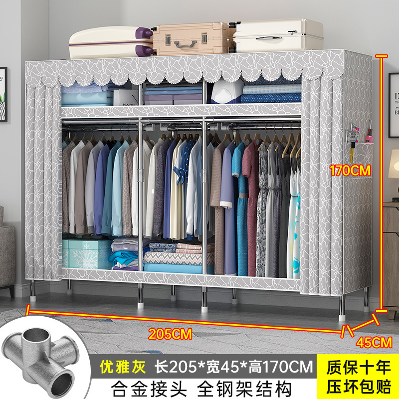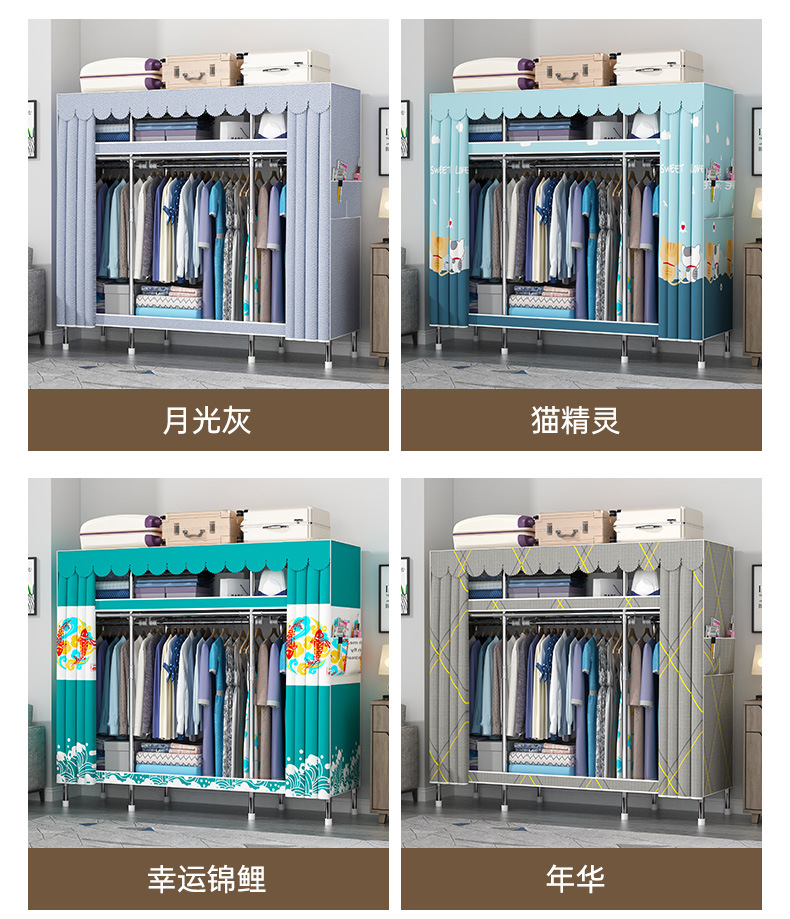 간단한 옷장 홈 조립 된 천 옷장 교수형 영역 멀티 풀 스틸 프레임 스틸 파이프 굵게 강화 된 침실 보관 옷장