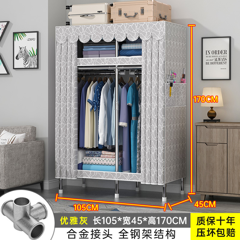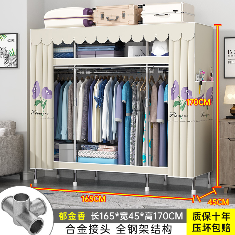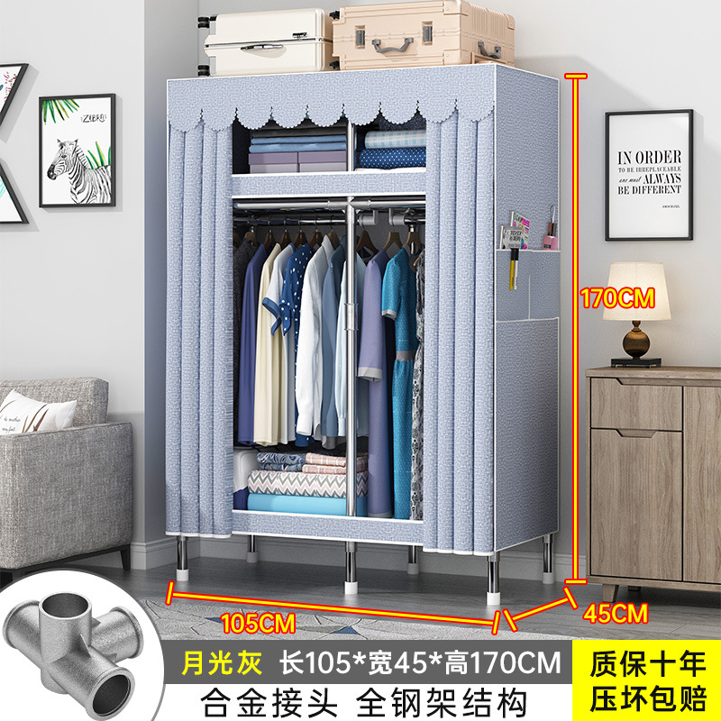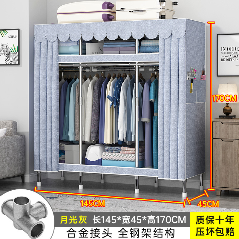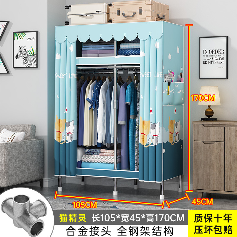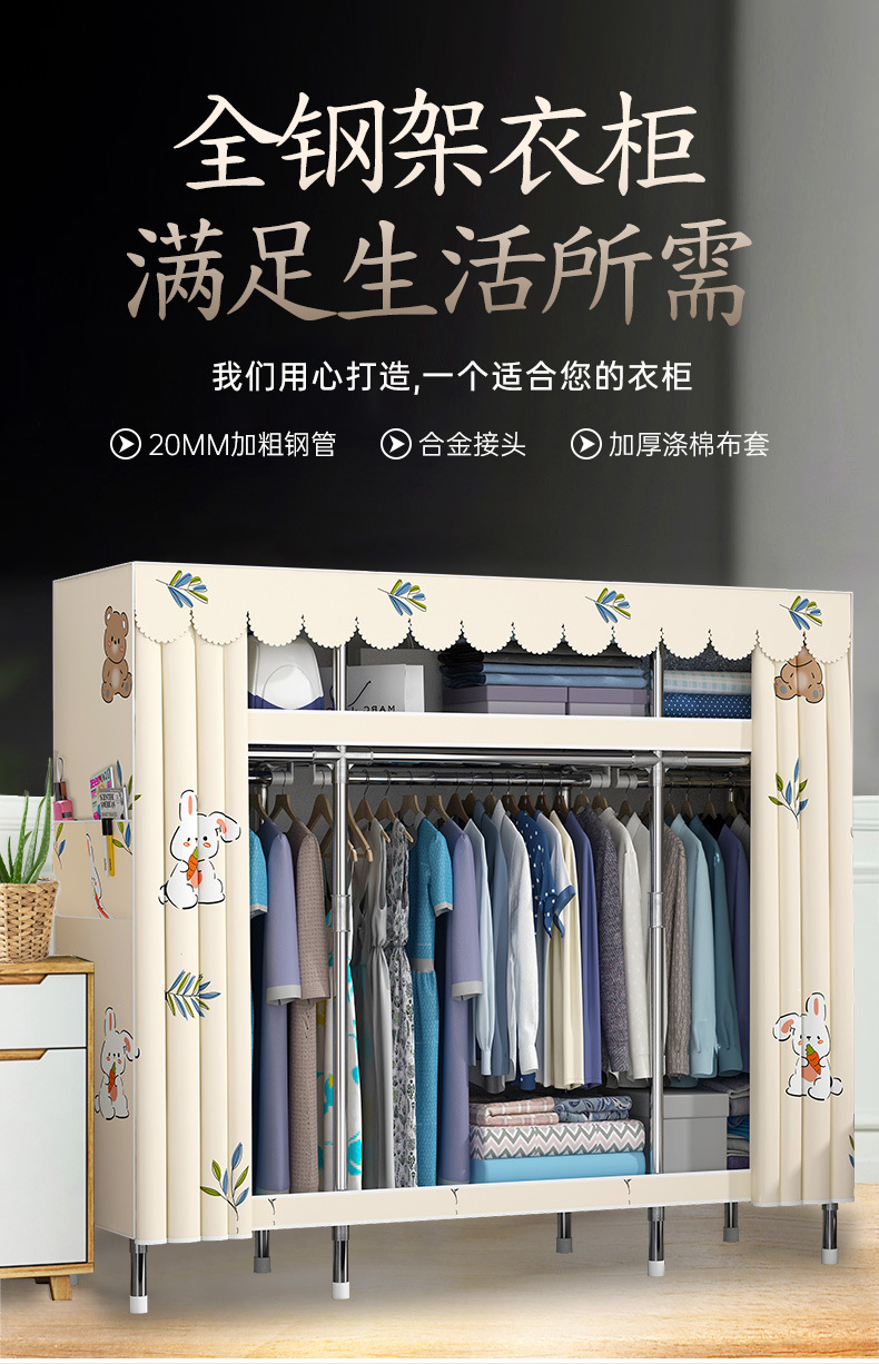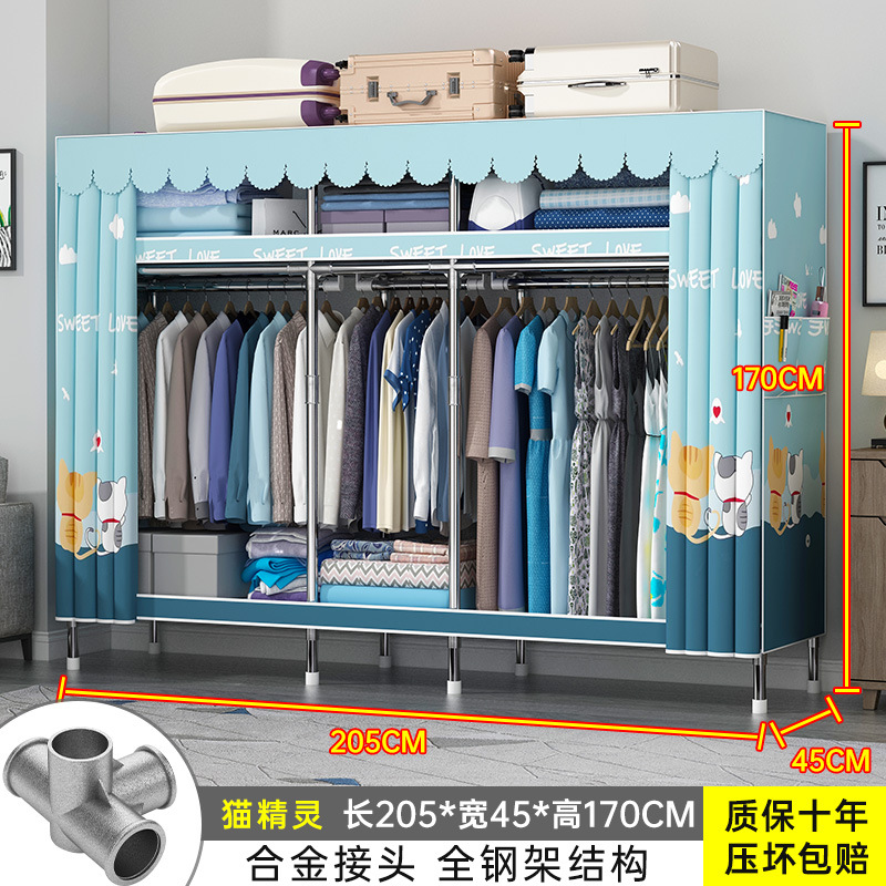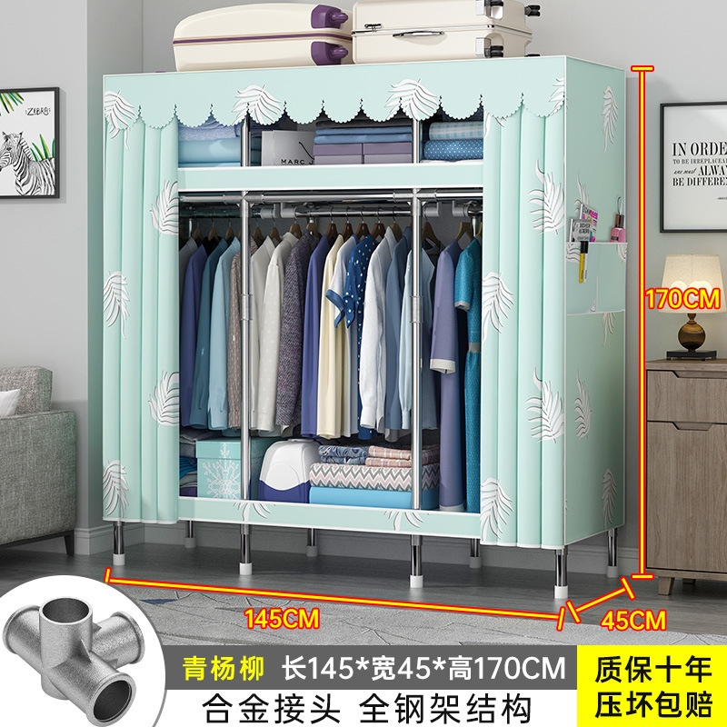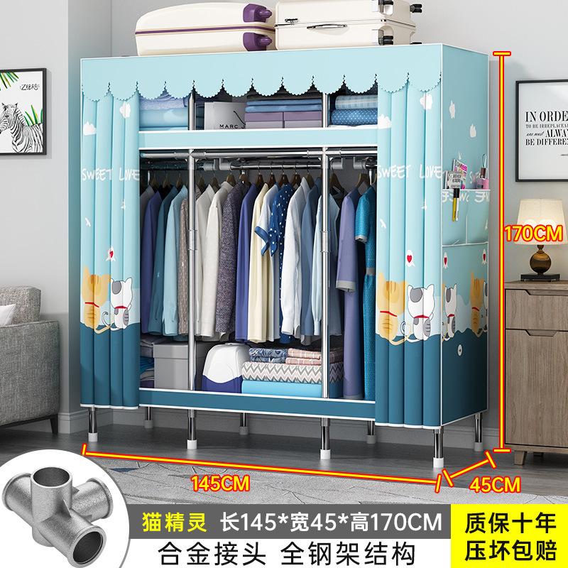 간단한 옷장 홈 조립 된 천 옷장 교수형 영역 멀티 풀 스틸 프레임 스틸 파이프 굵게 강화 된 침실 보관 옷장