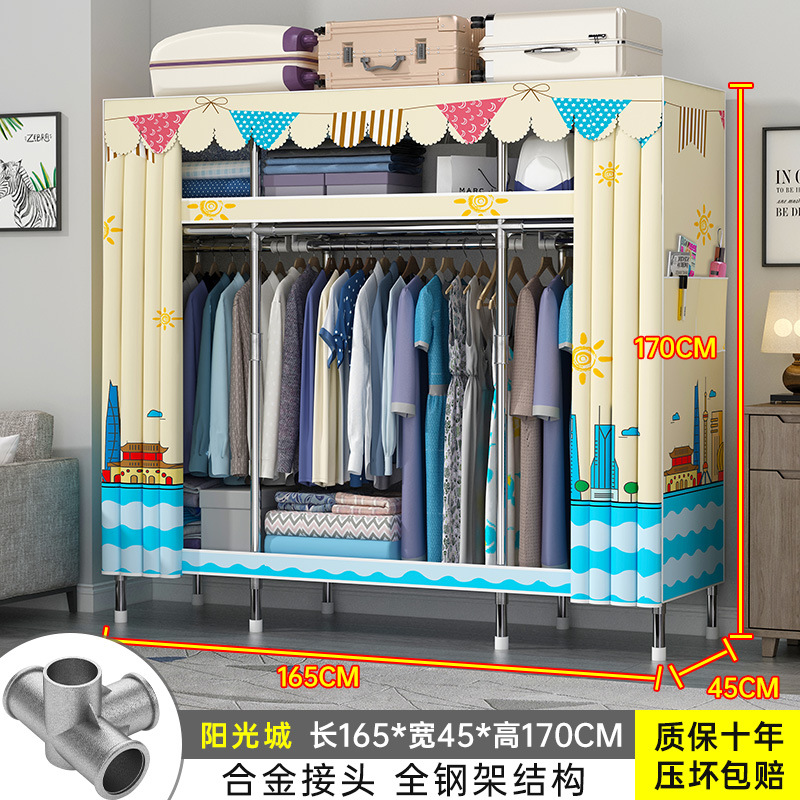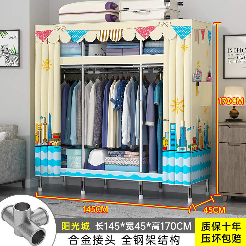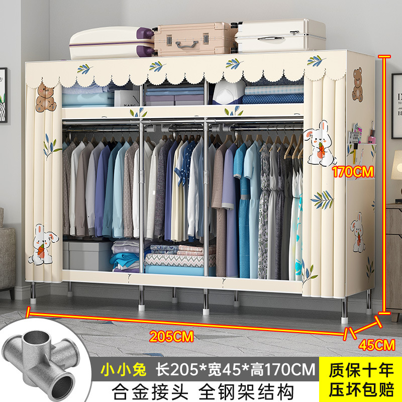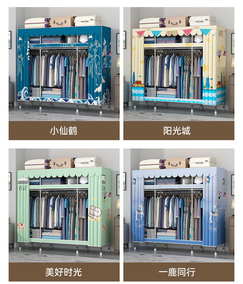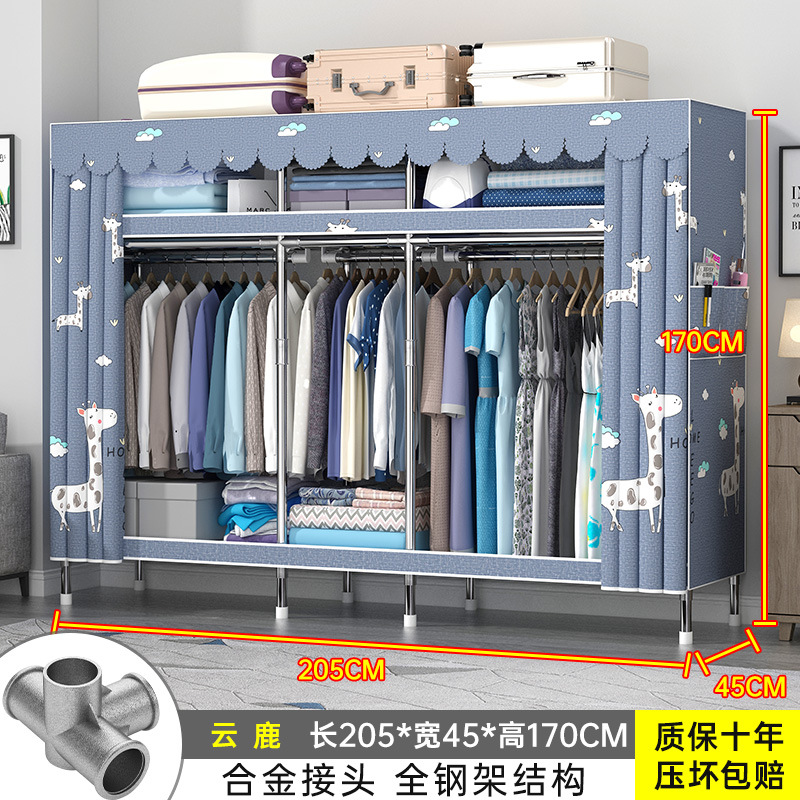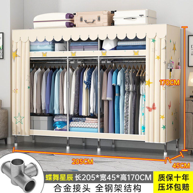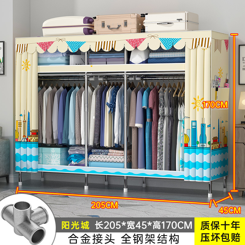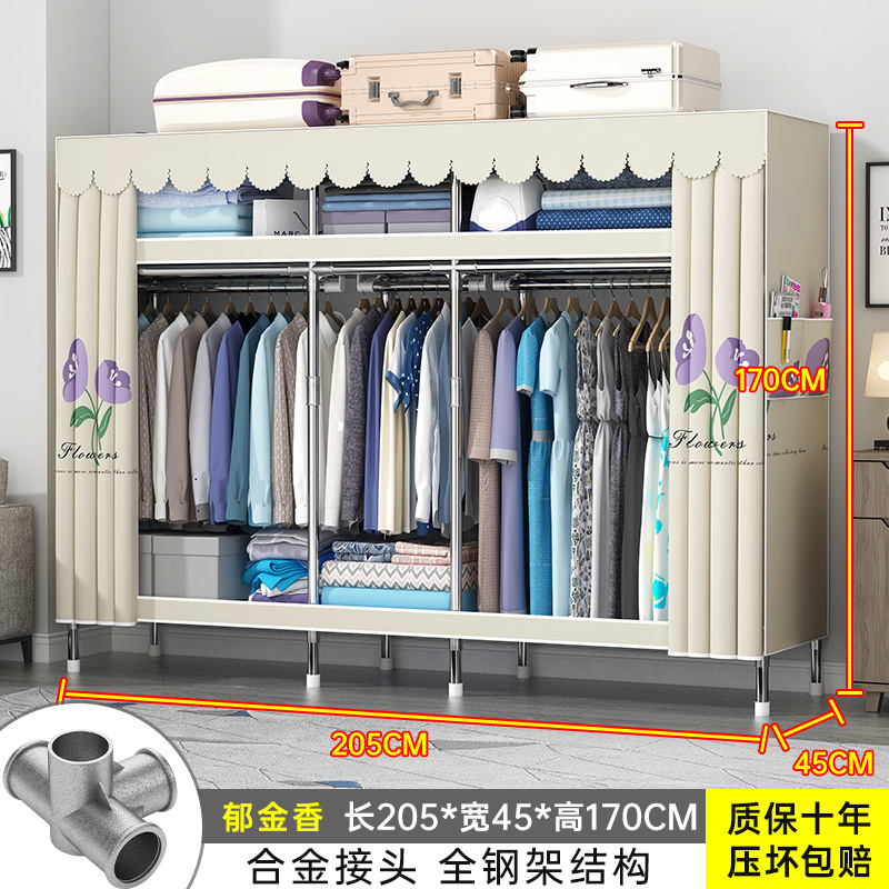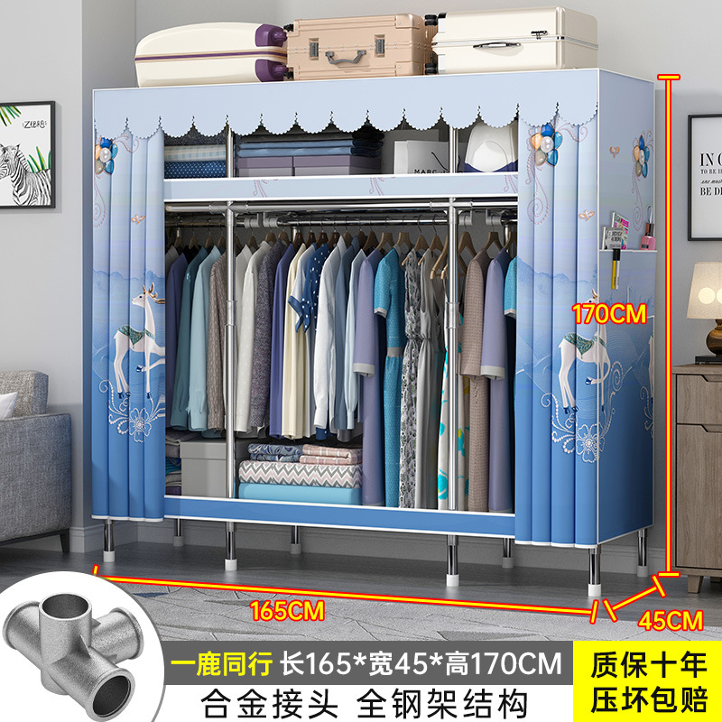 간단한 옷장 홈 조립 된 천 옷장 교수형 영역 멀티 풀 스틸 프레임 스틸 파이프 굵게 강화 된 침실 보관 옷장