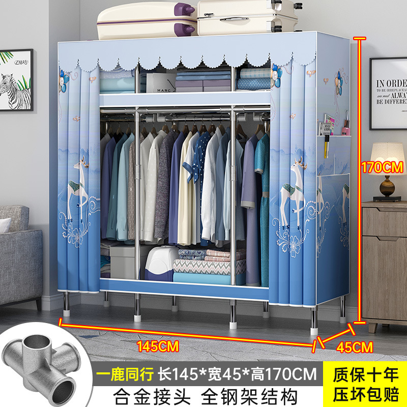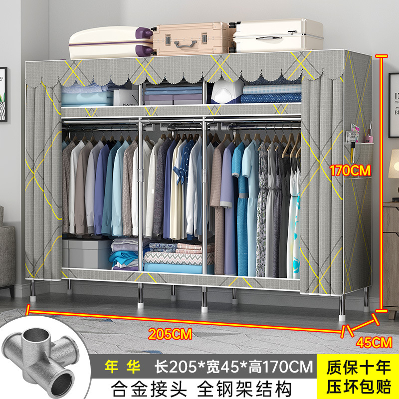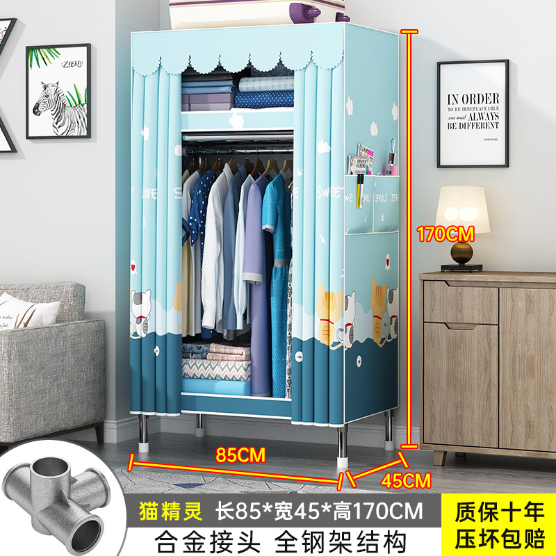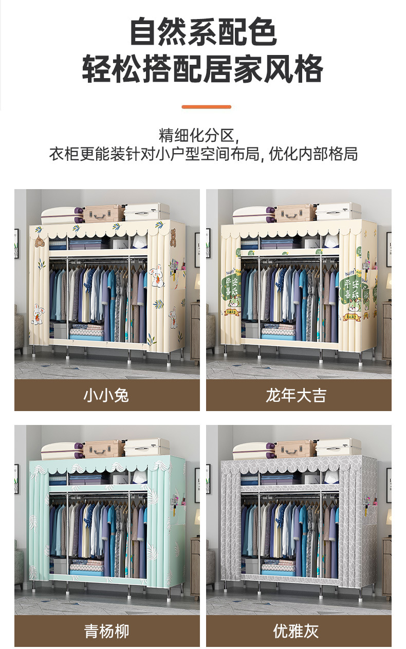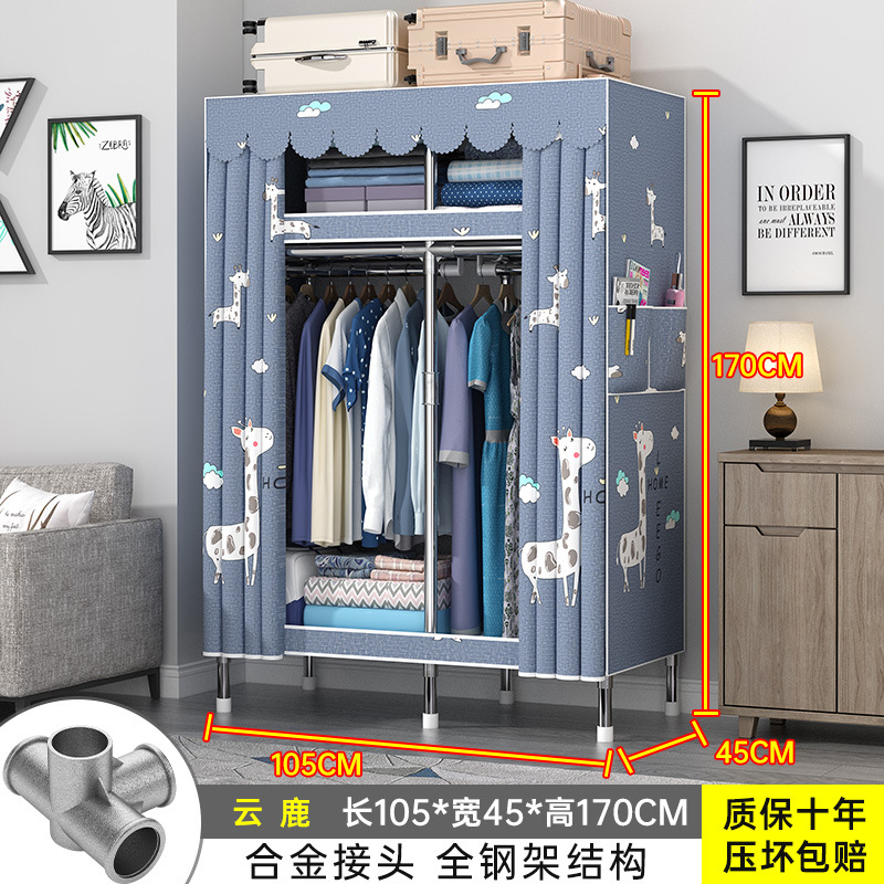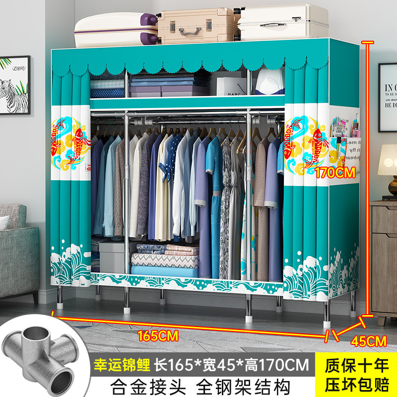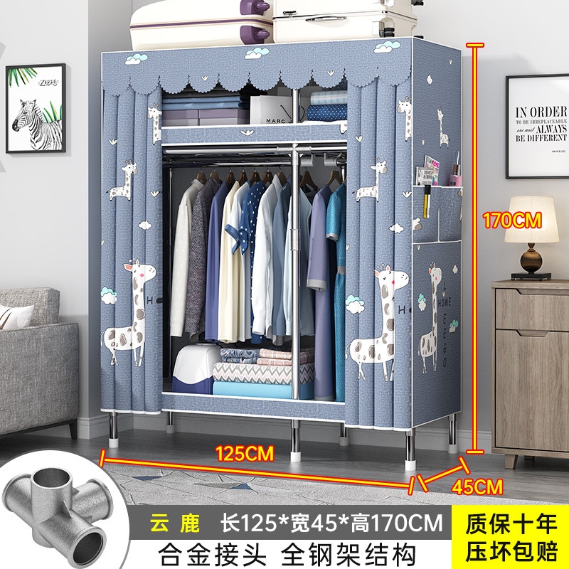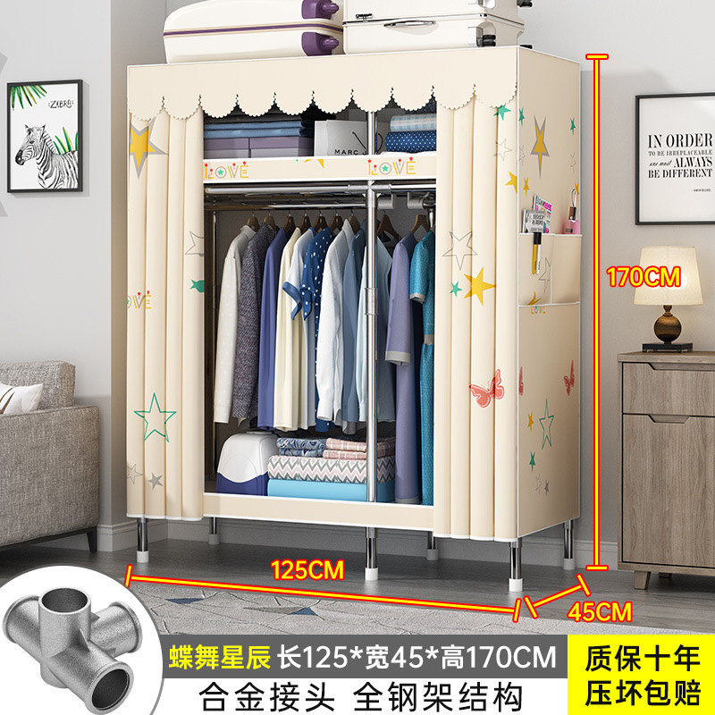 간단한 옷장 홈 조립 된 천 옷장 교수형 영역 멀티 풀 스틸 프레임 스틸 파이프 굵게 강화 된 침실 보관 옷장