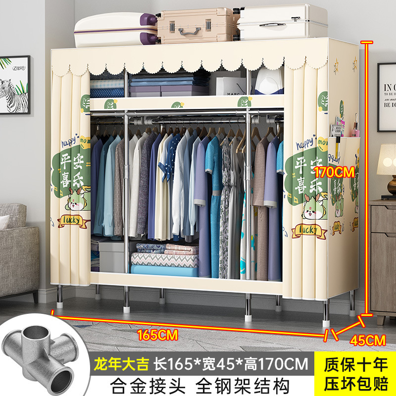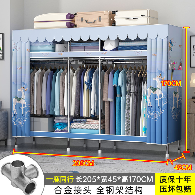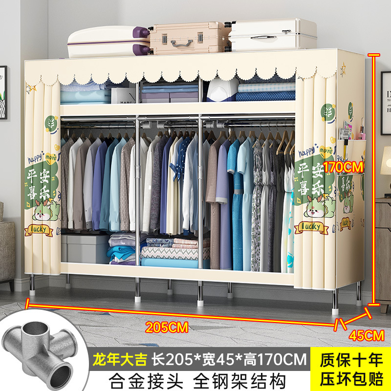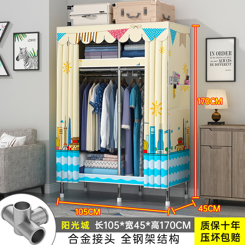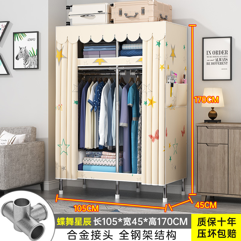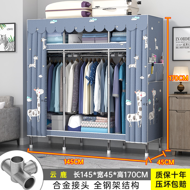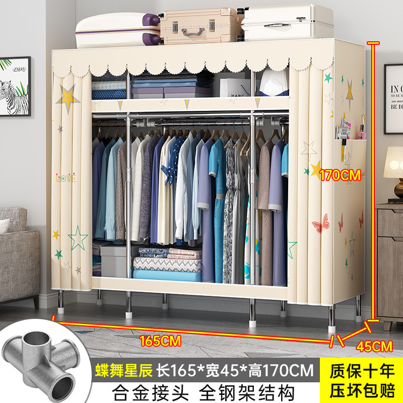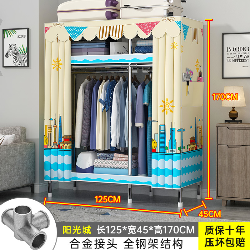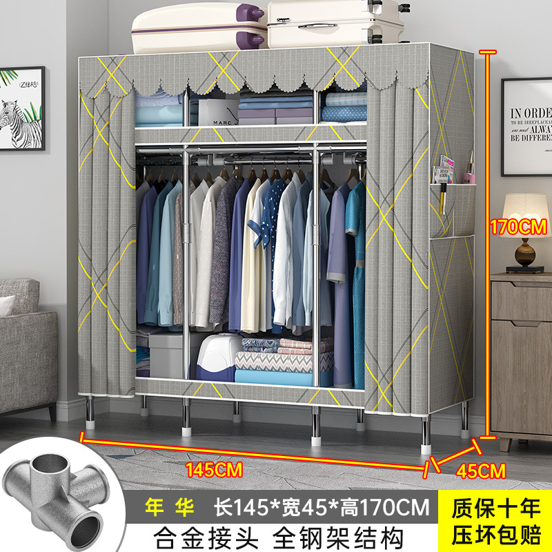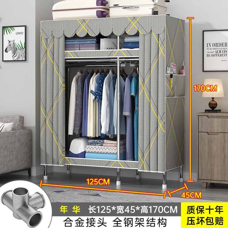 간단한 옷장 홈 조립 된 천 옷장 교수형 영역 멀티 풀 스틸 프레임 스틸 파이프 굵게 강화 된 침실 보관 옷장